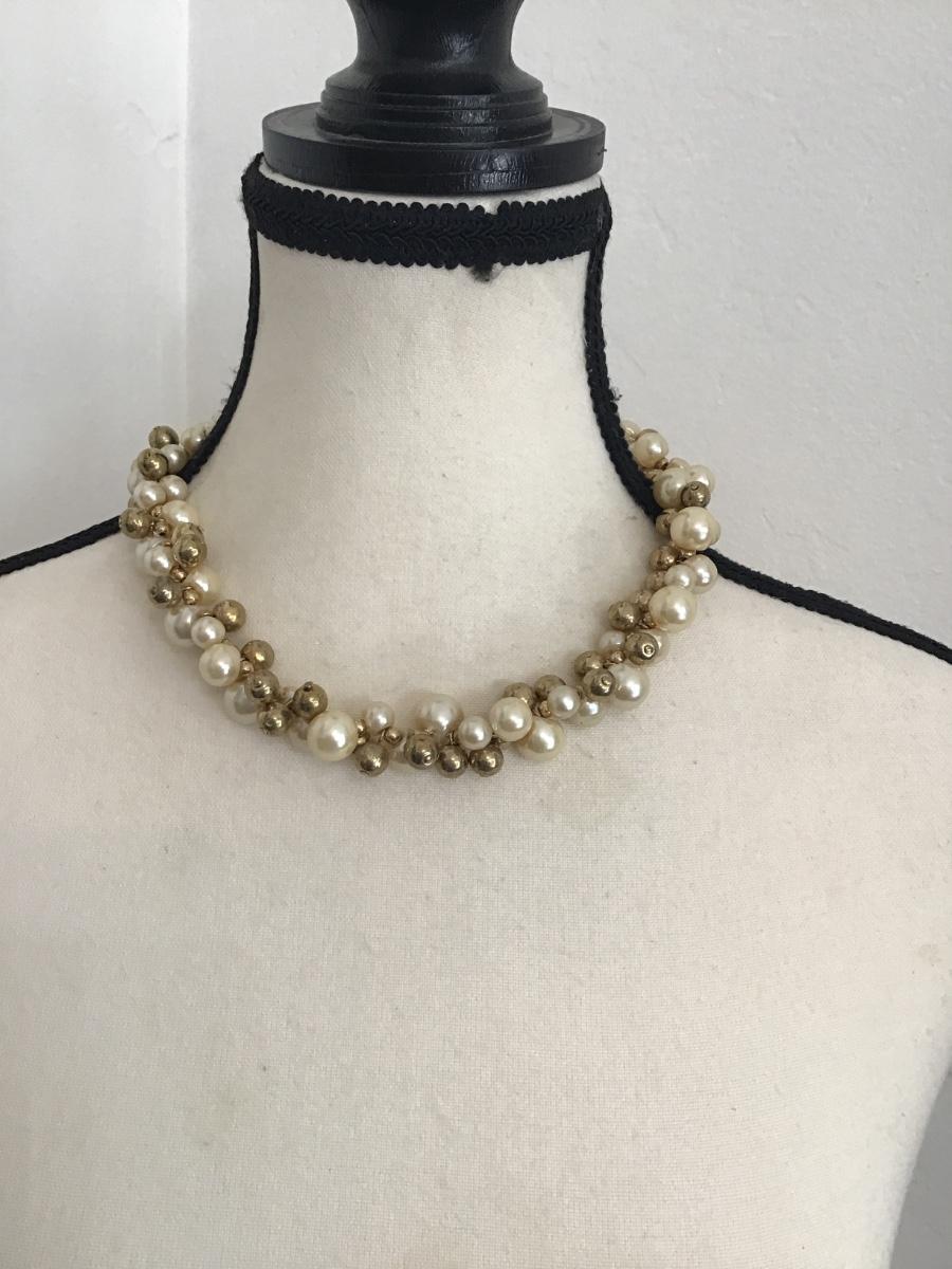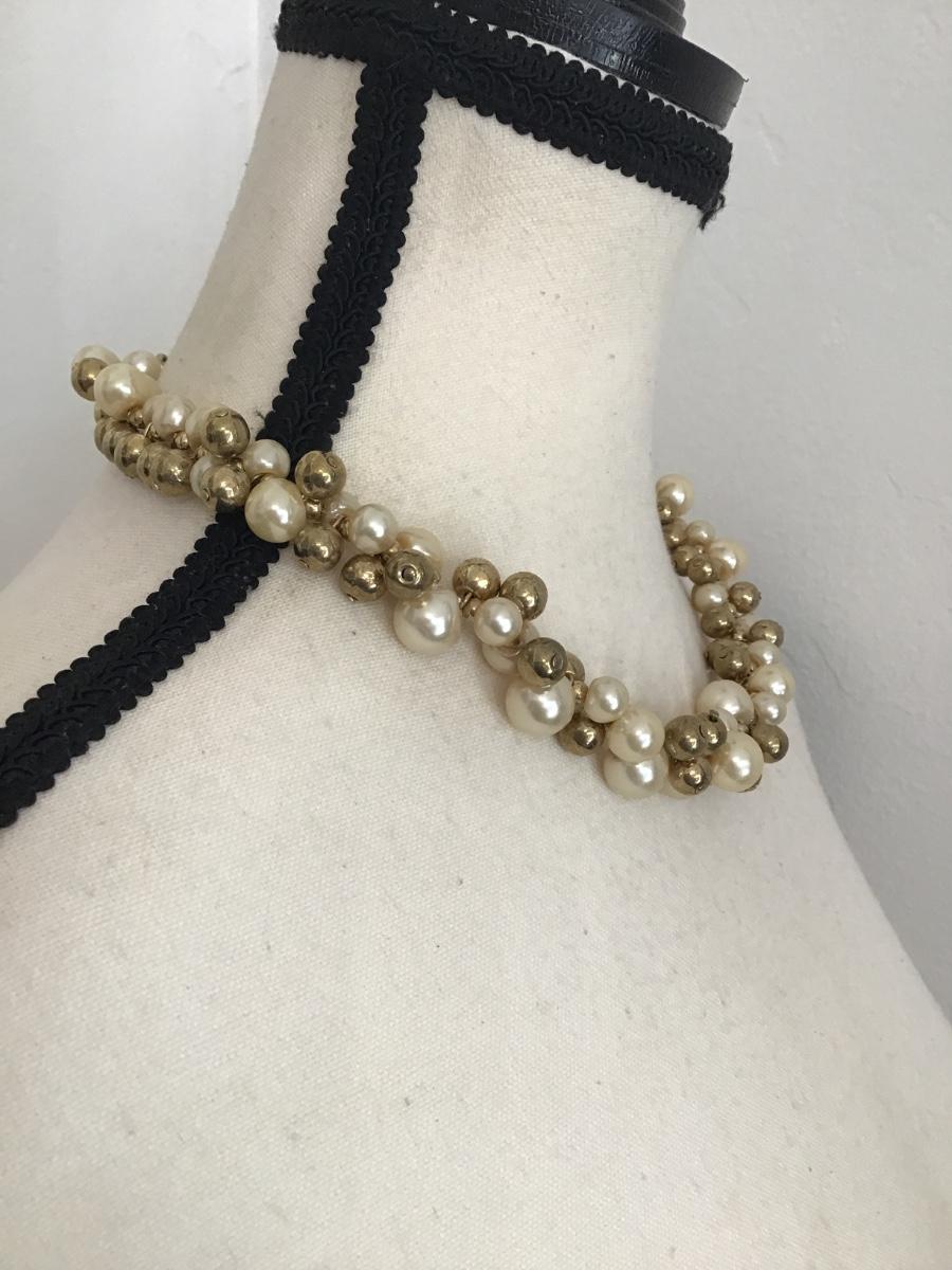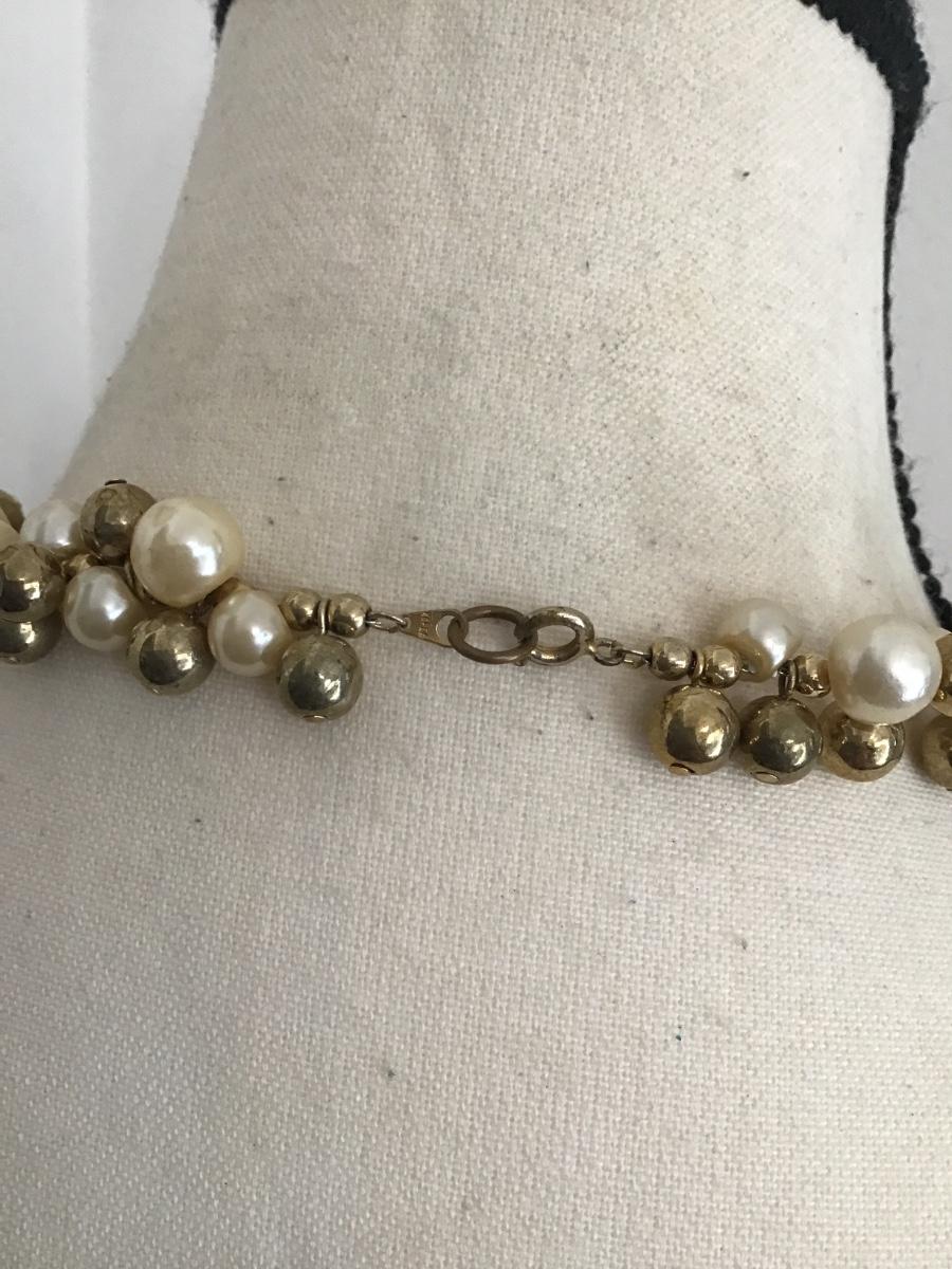 Vintage Faux pearl necklace with gold tone beads. Please see test photos.