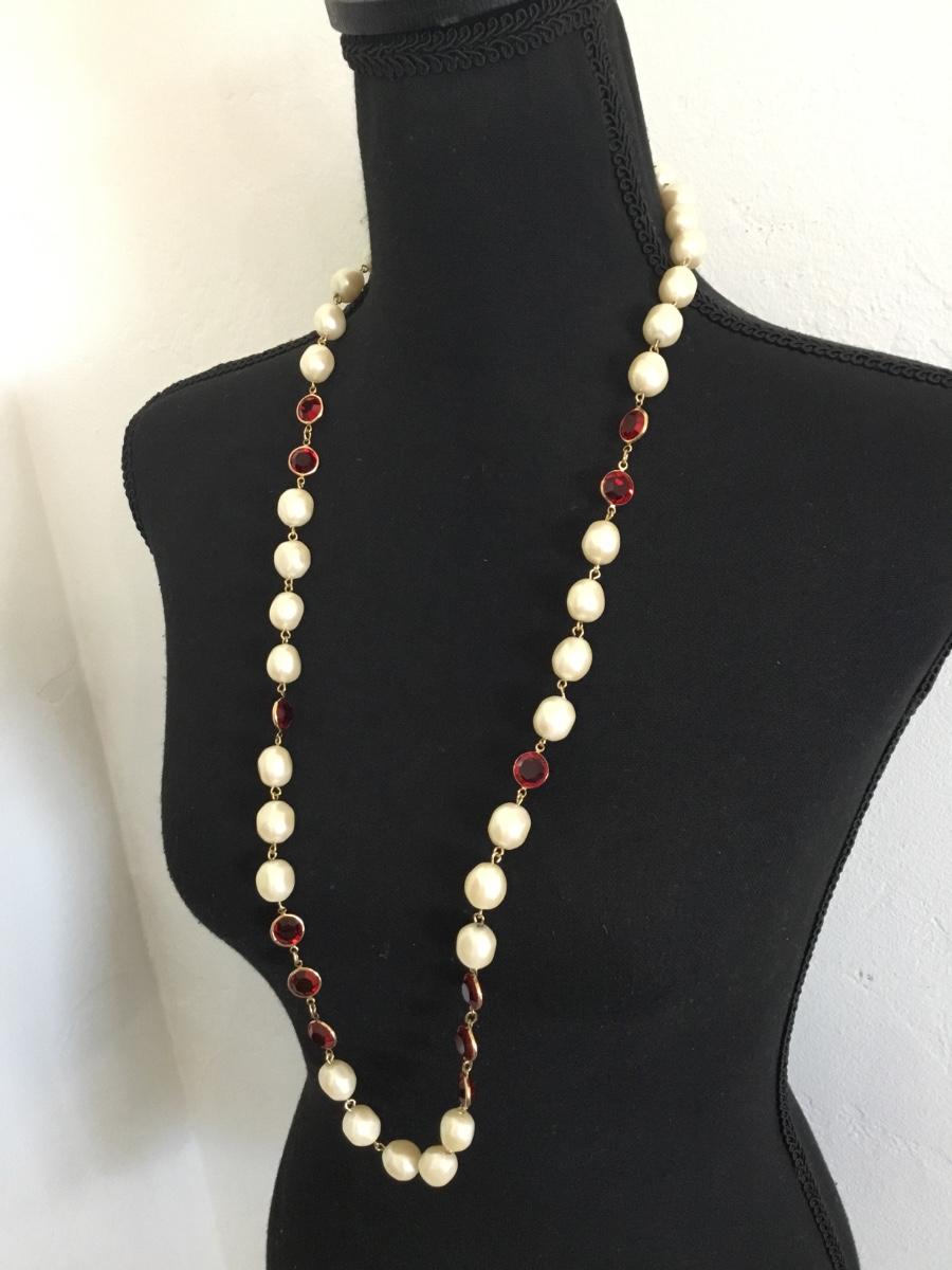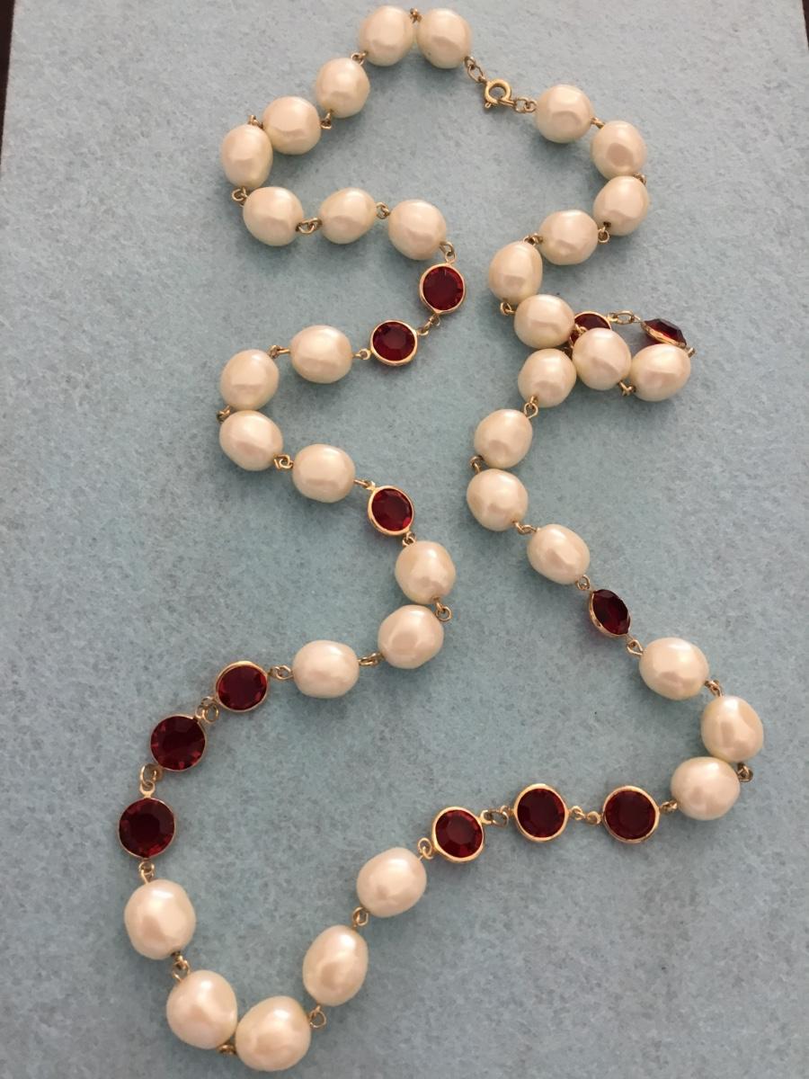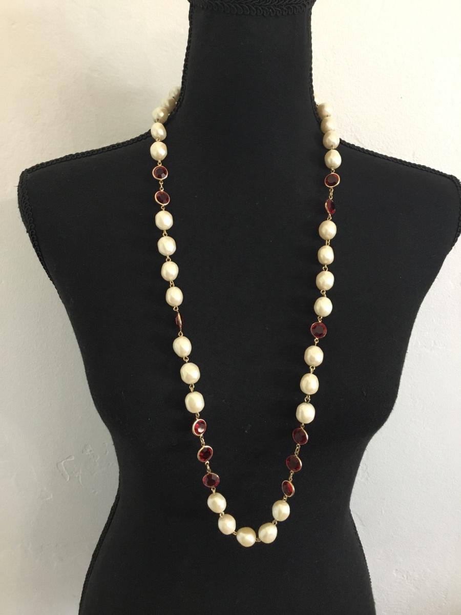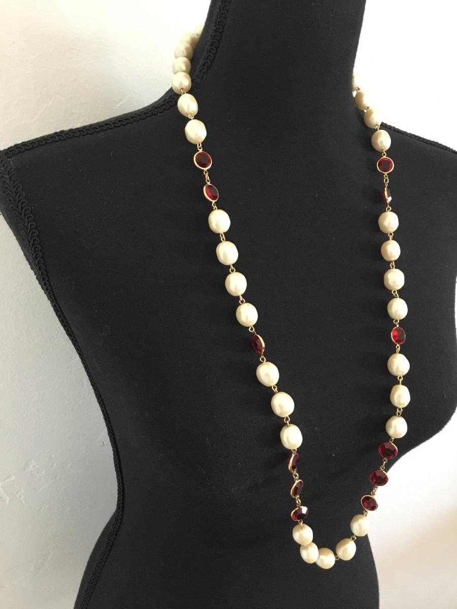 Vintage Faux pearl & red glass beaded necklace