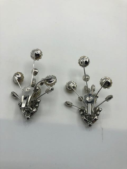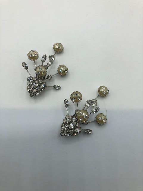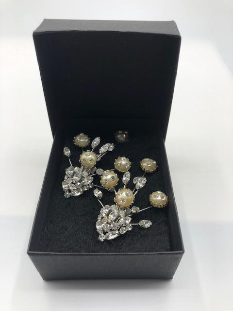 Vintage Clip Style Earrings. Faux pearl & rhinestone. Silvertone setting.