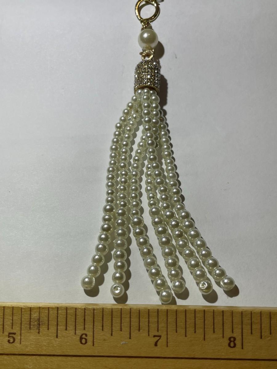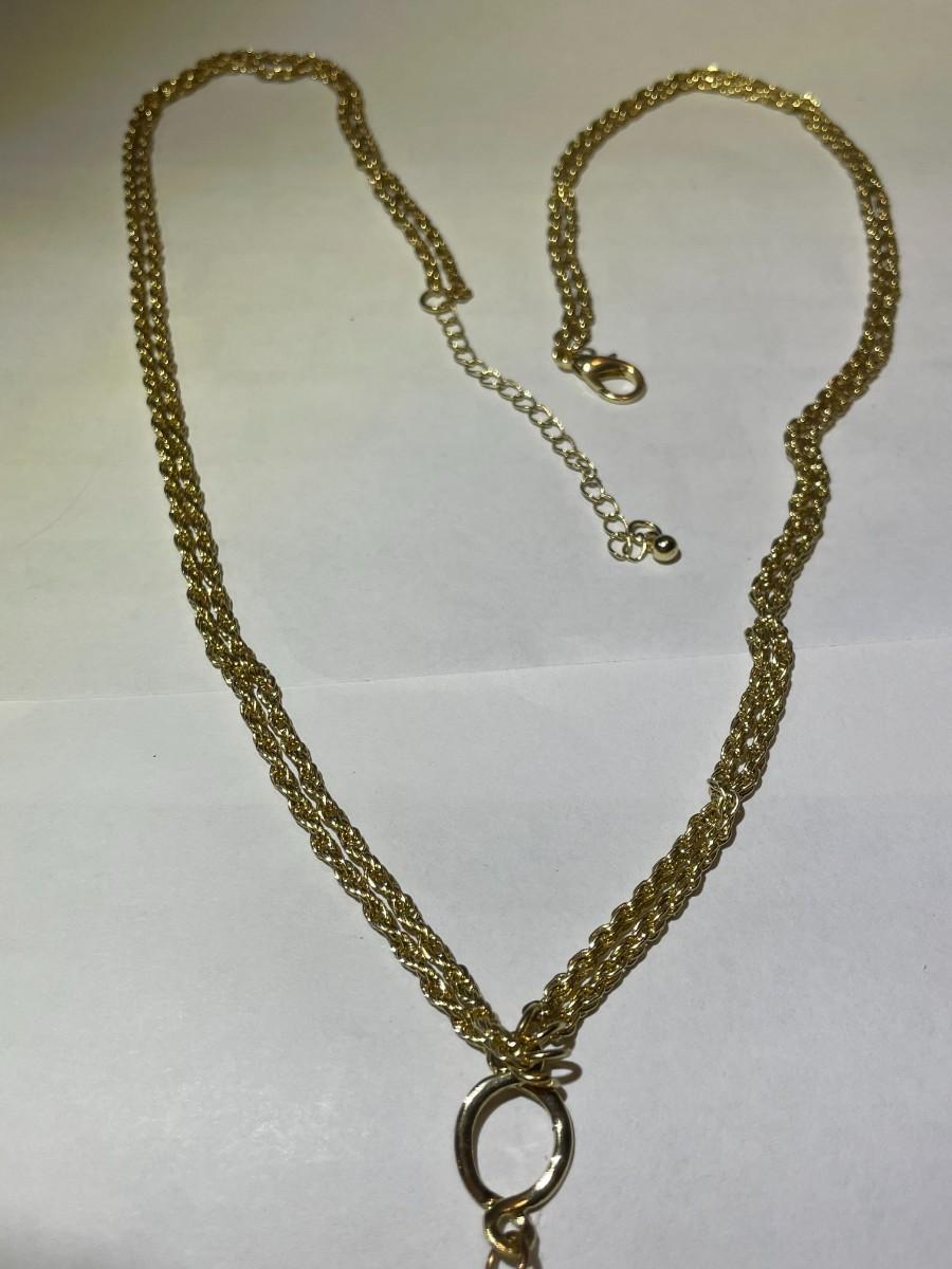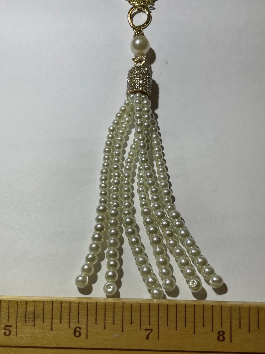 Vintage Faux Pearl & Rhinestone Pendant on a Gold-tone Double Strand Necklace 30-33" Adjustable in Very Good Preowned Condition as Pictured. $5 Domestic Shipping.