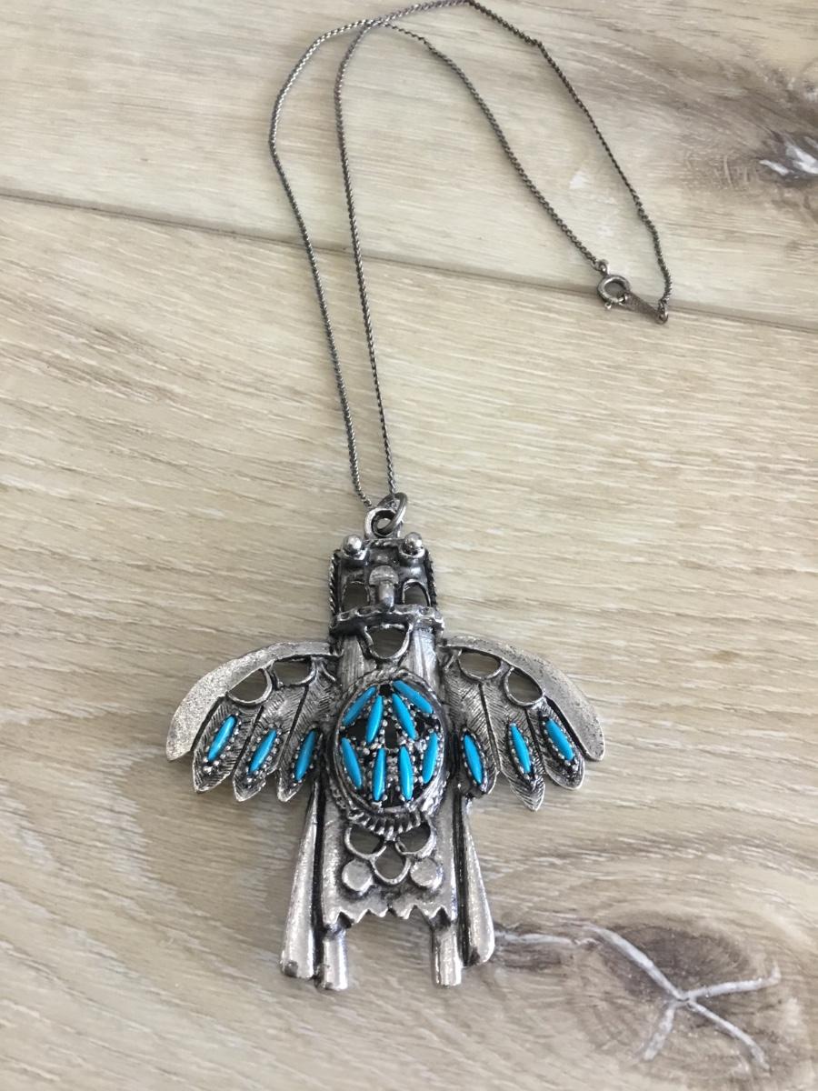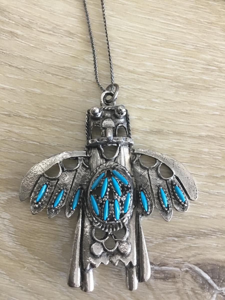 Vintage Faux turquoise American Indian style, Thunderbird, silver toned