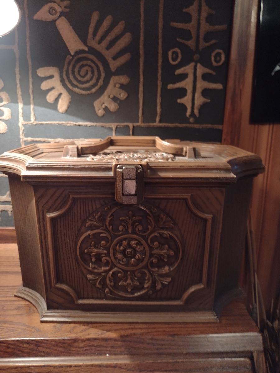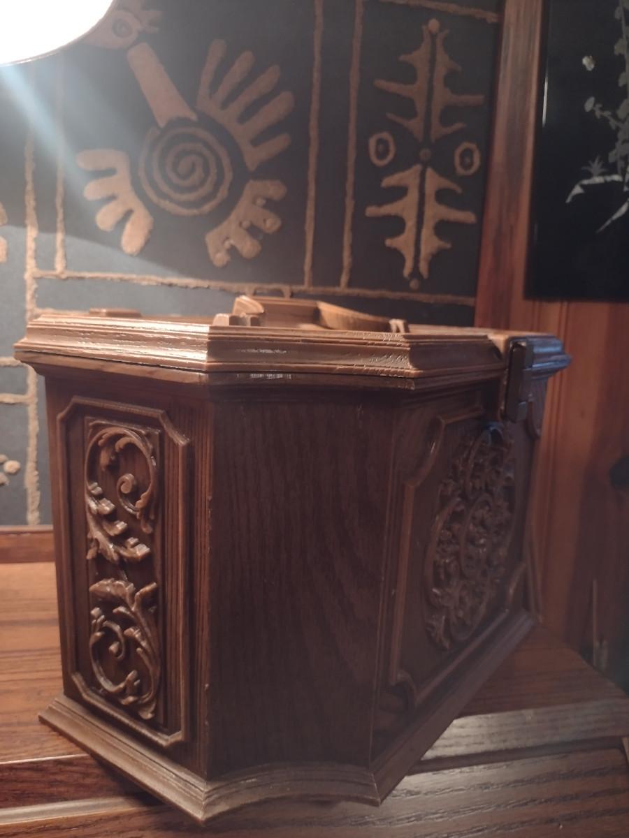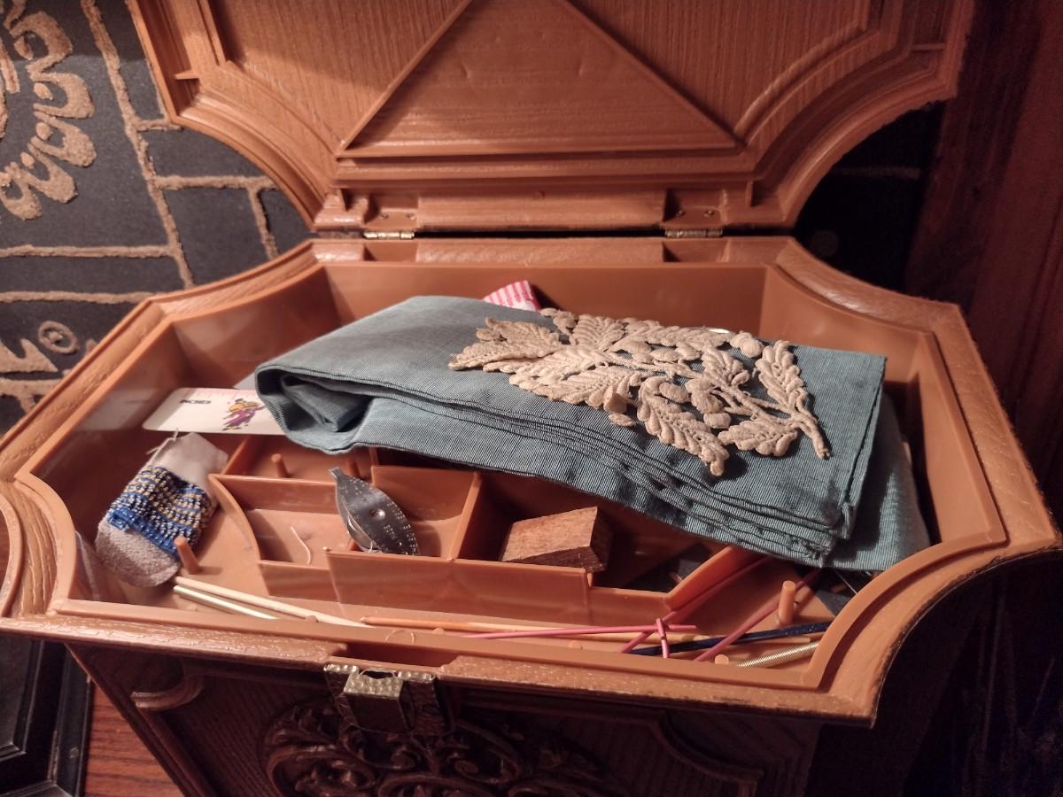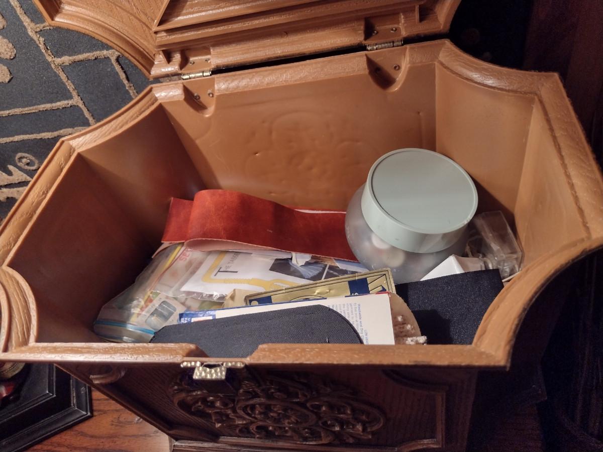 Vintage Faux Wood Plastic Sewing Box with Tray Including Supplies and Accessories