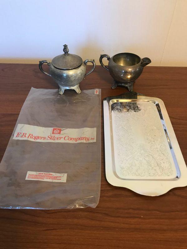 Vintage FB Rogers Silver Company Tray Sugar and Creamer Set (54)