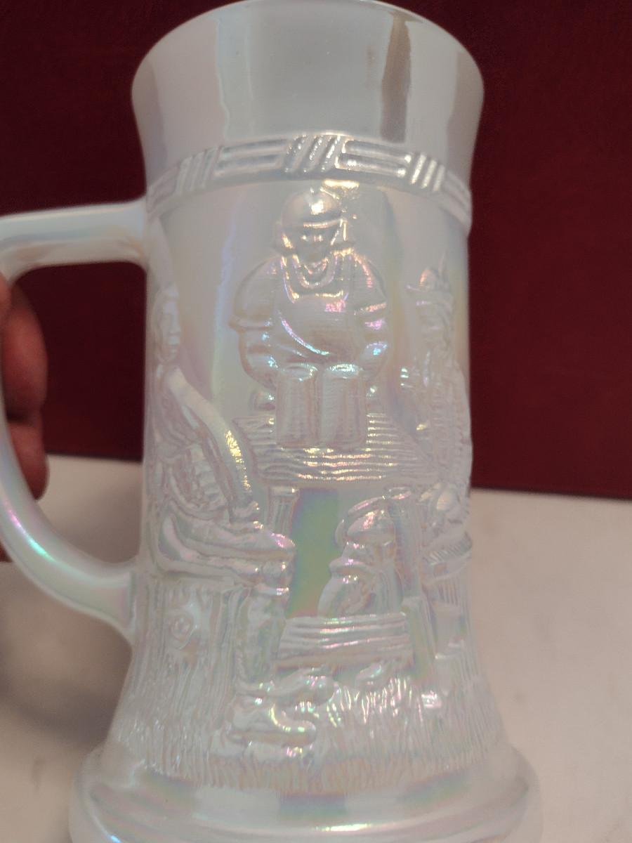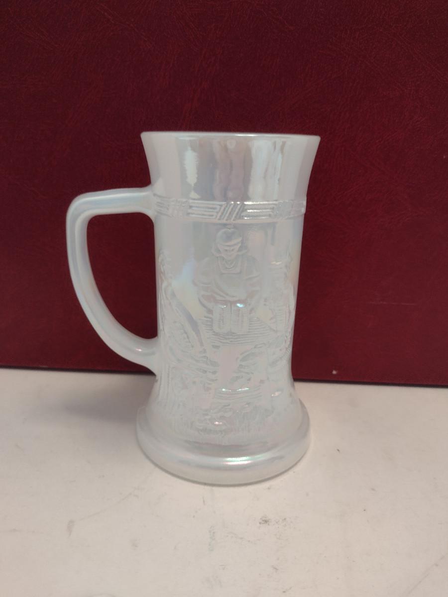 Vintage Federal Glass Company Iridescent Milk Glass Stein.