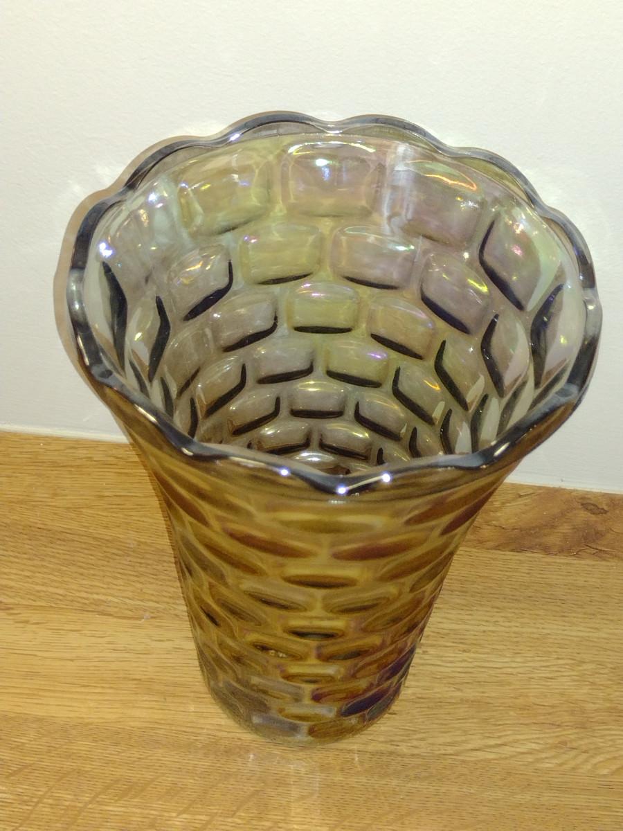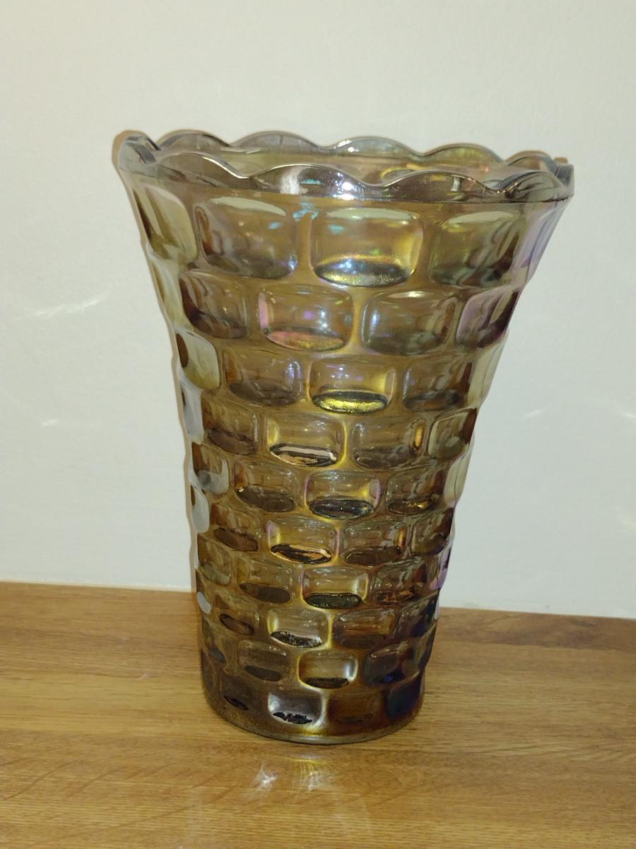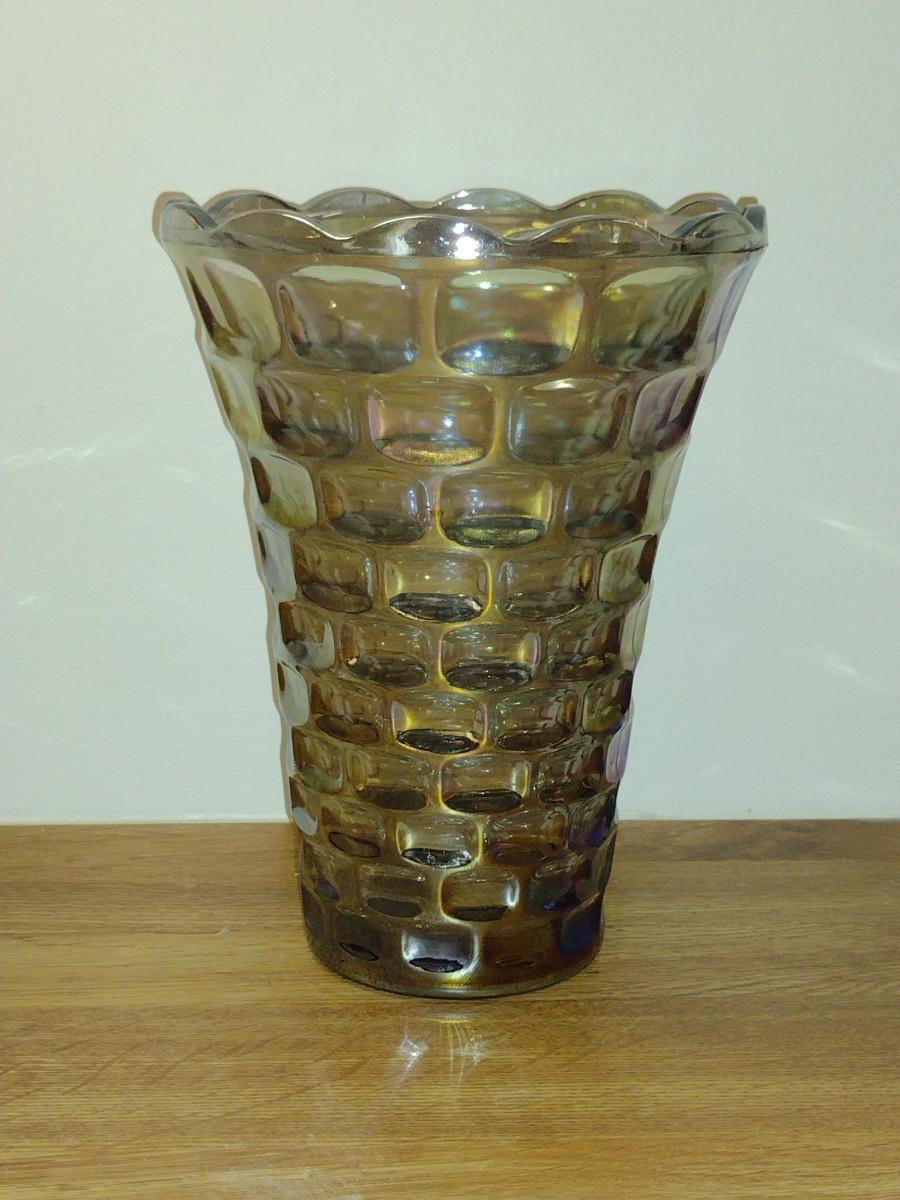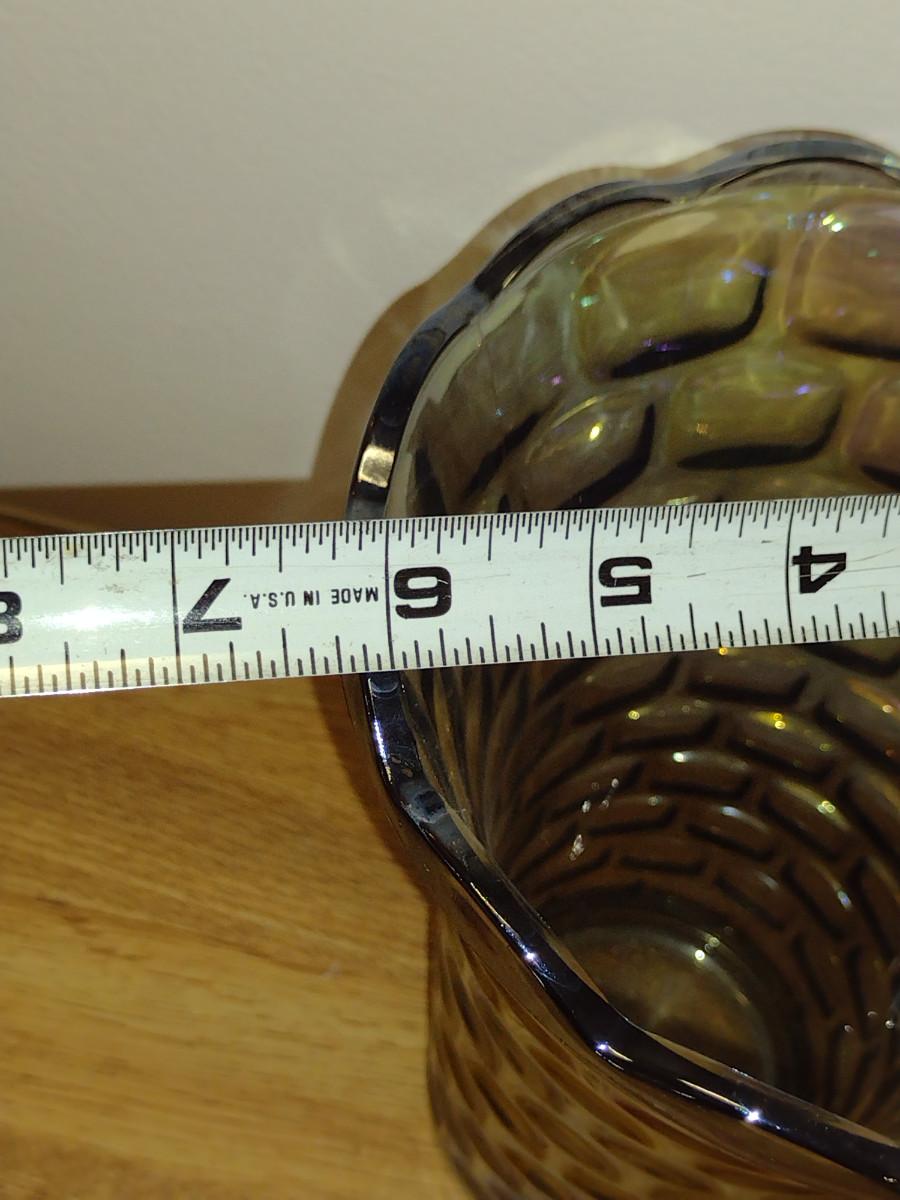 Vintage Federal Glass Yorktown Smokey Gray Iridescent Vase- Approx 8" Tall
