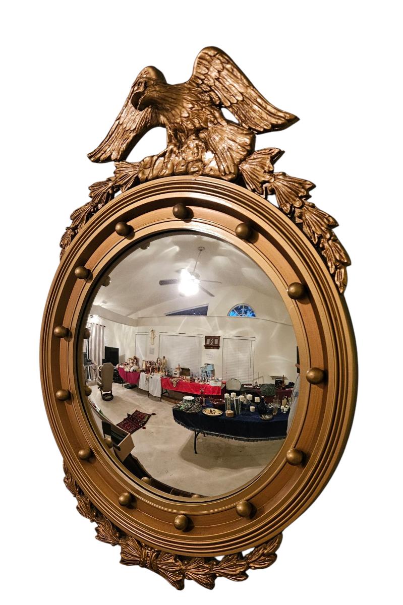 Vintage Federal Style Convex Mirror with Eagle Crest