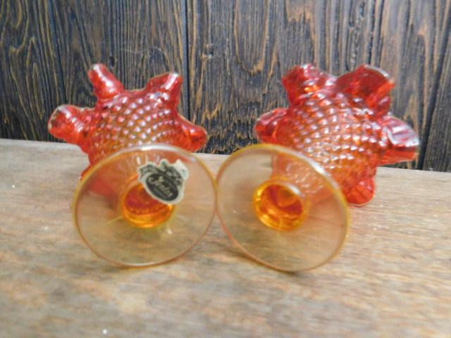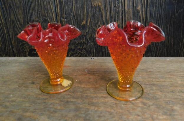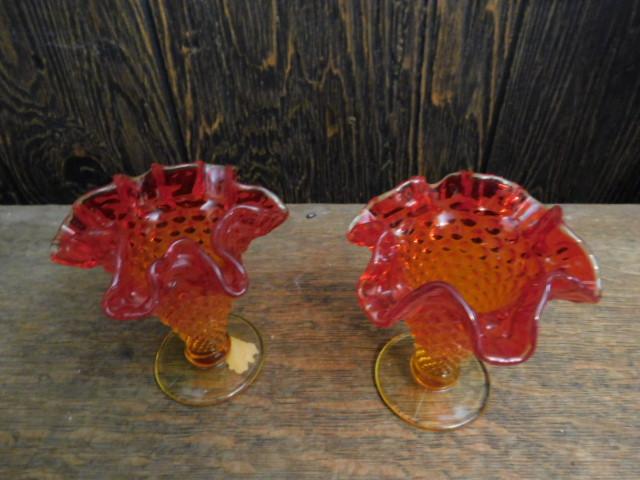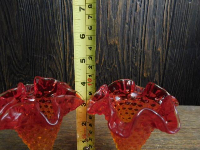 Vintage Fenton Amberiana Hobnail Ruffled Edge Dessert Dishes 4"