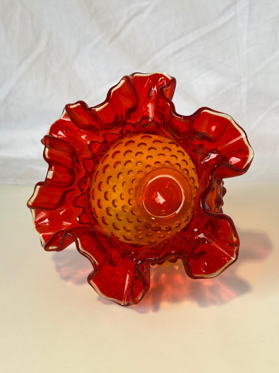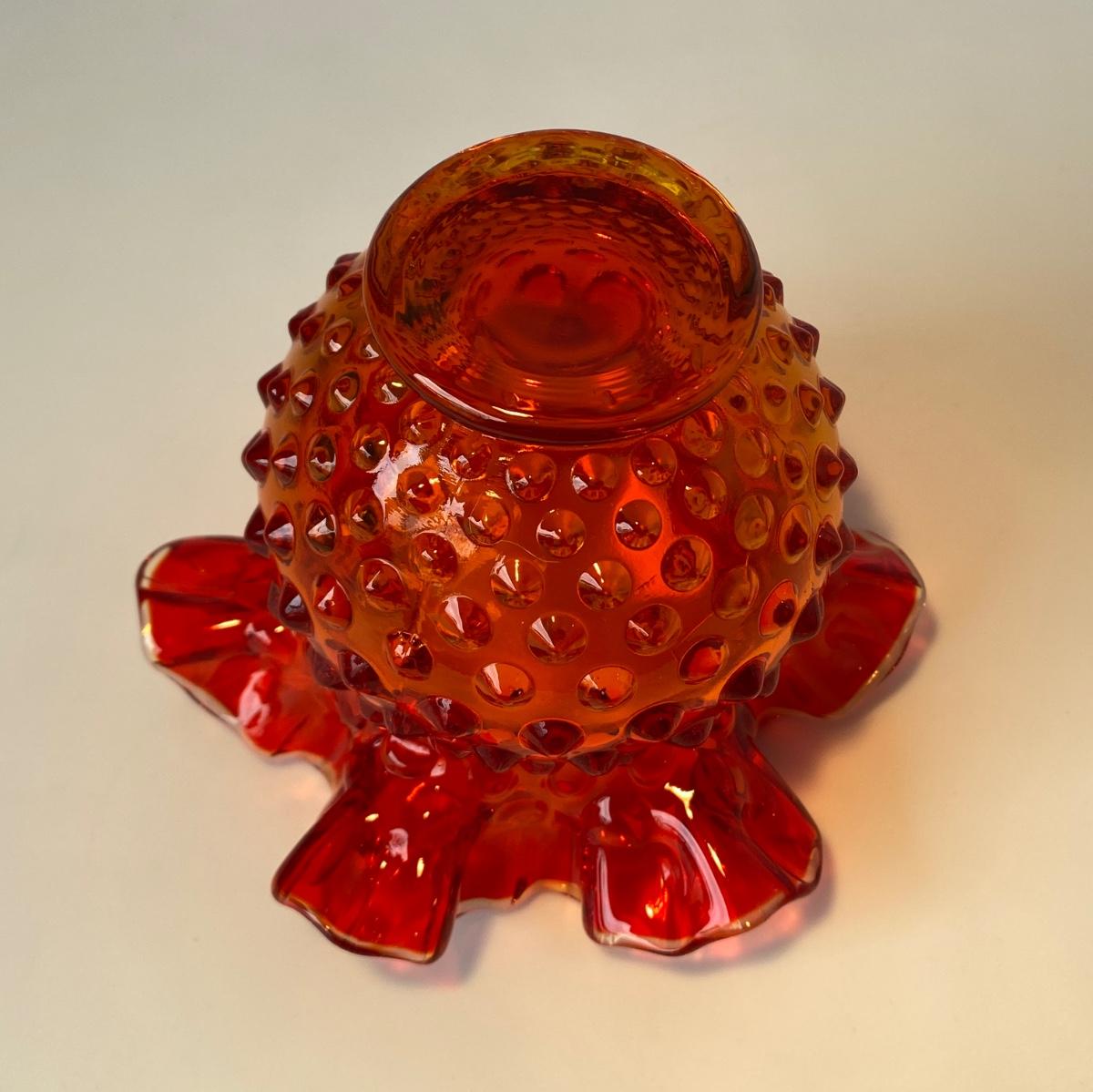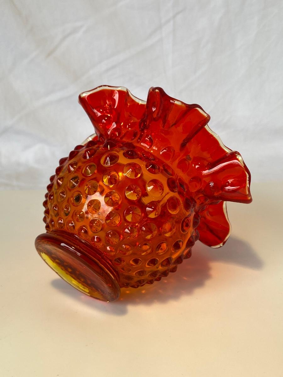 Vintage Fenton Amberina Hobnail Rose Bowl/Vase