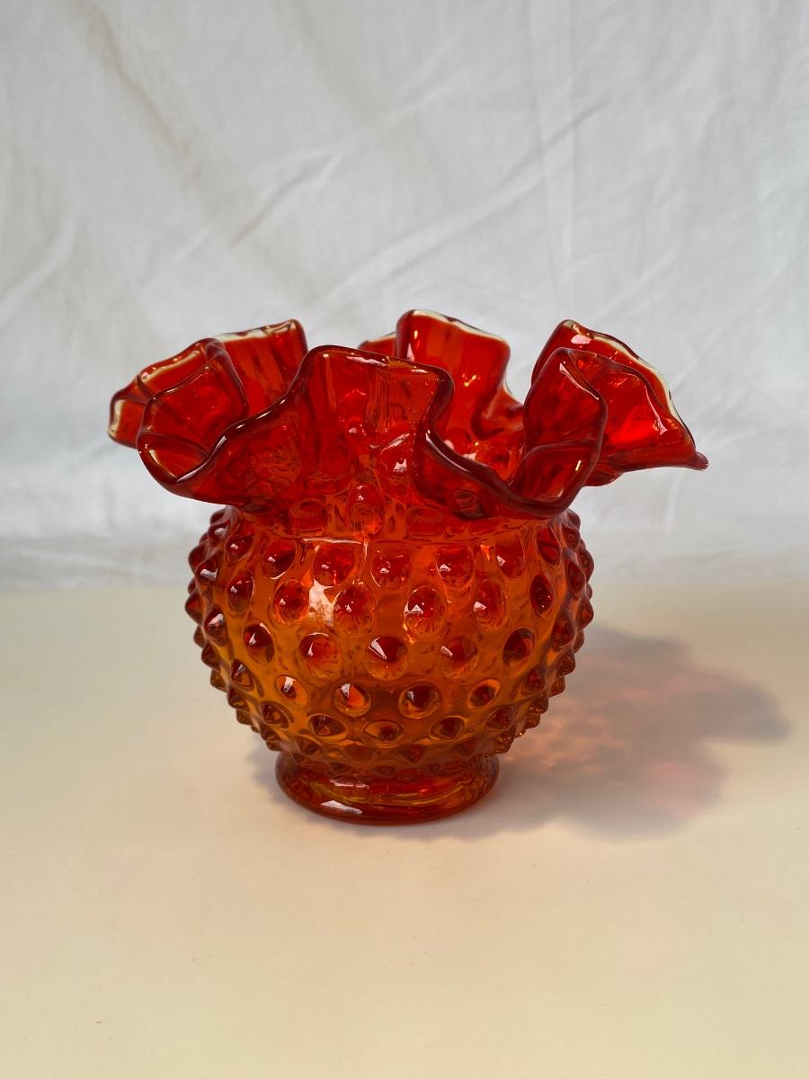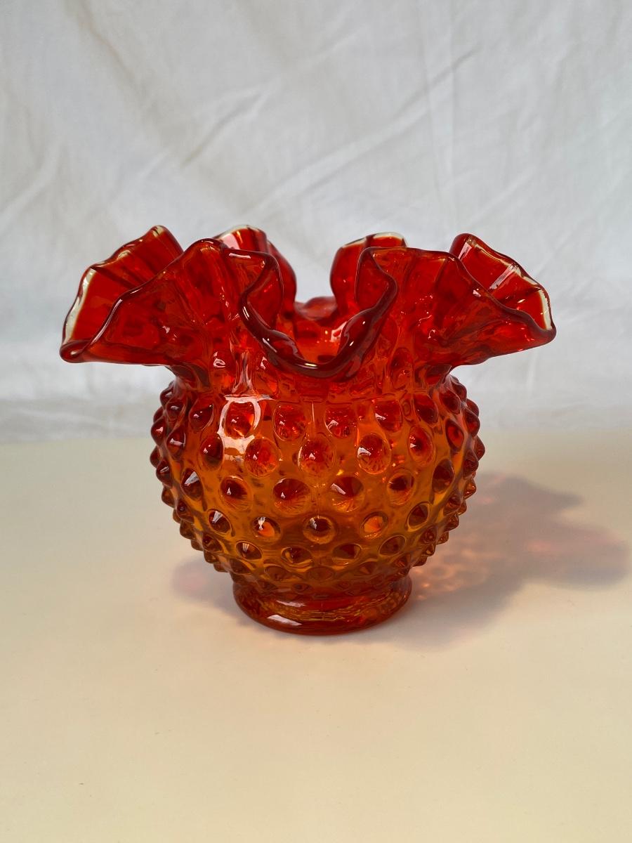 Vintage Fenton Amberina Hobnail Rose Bowl/Vase. Preowned and sold as is