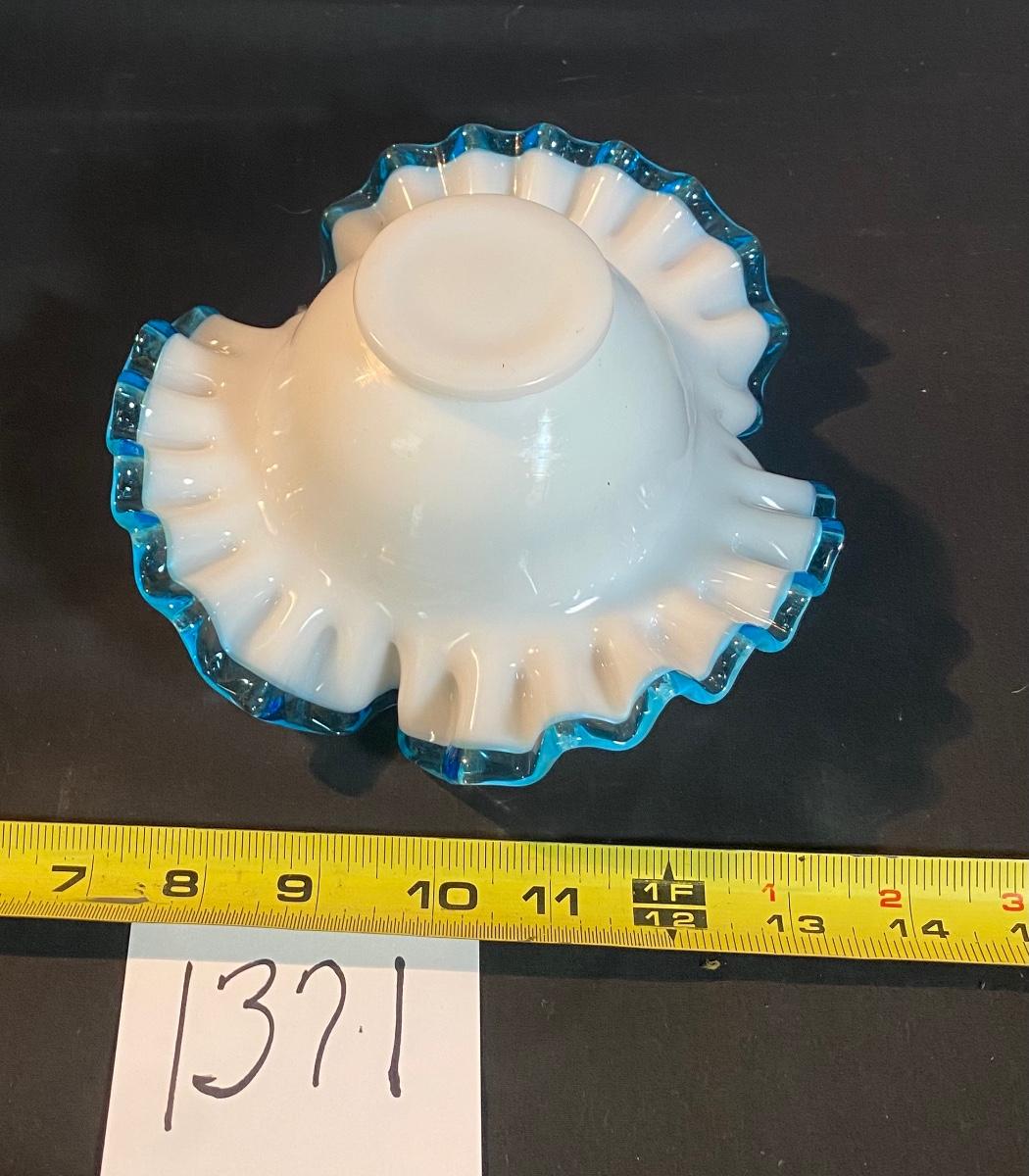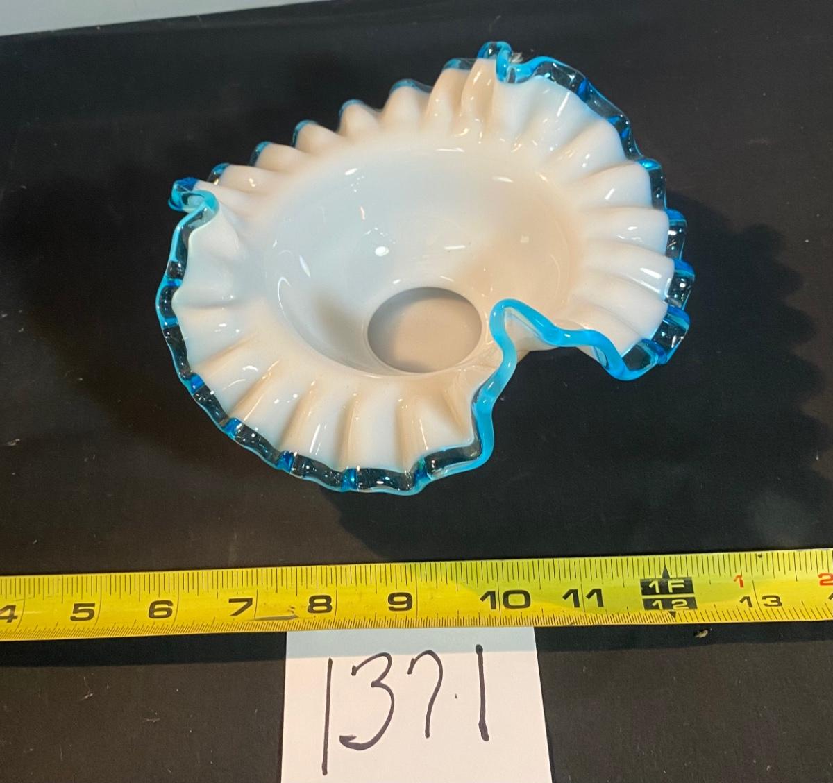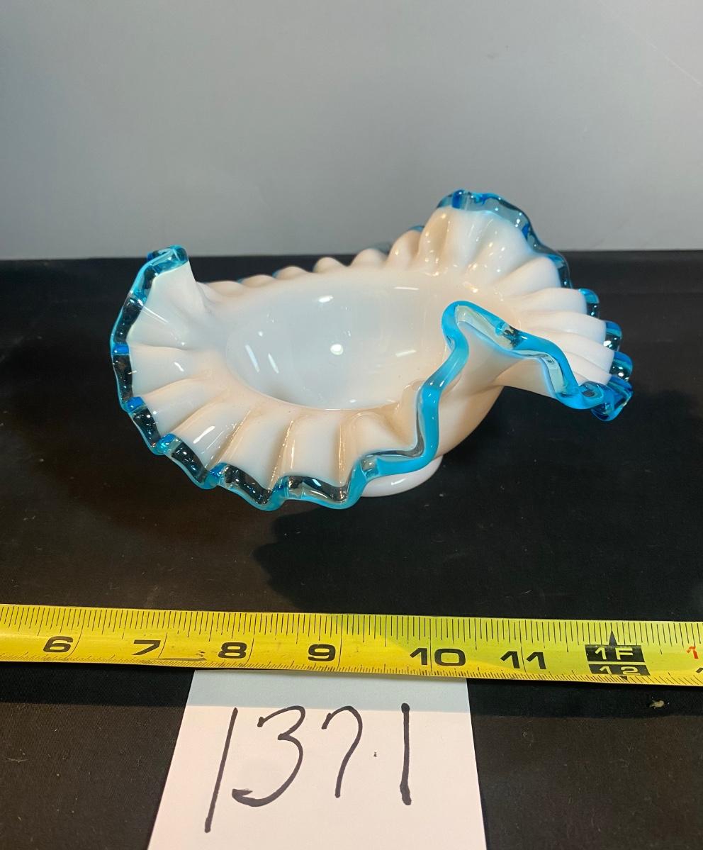 Vintage Fenton Aqua Crest Ruffled Bon Bon Dish