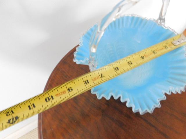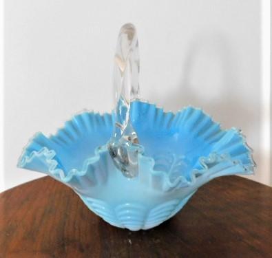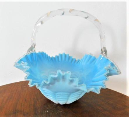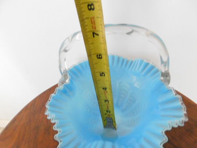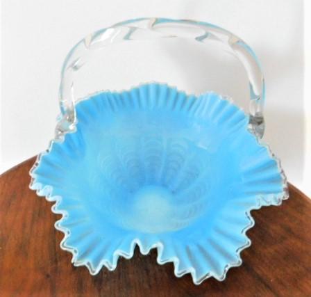 Vintage Fenton Blue and Clear Glass Ruffled Edge Basket