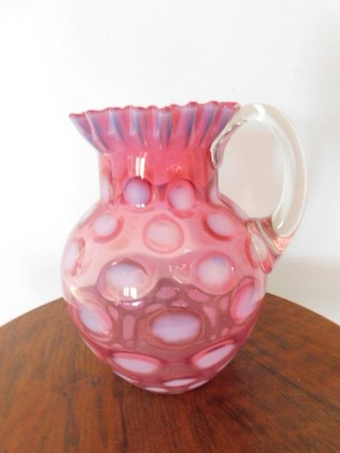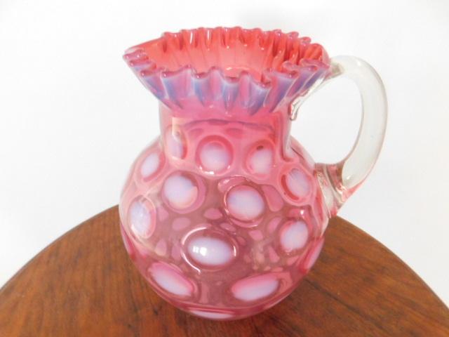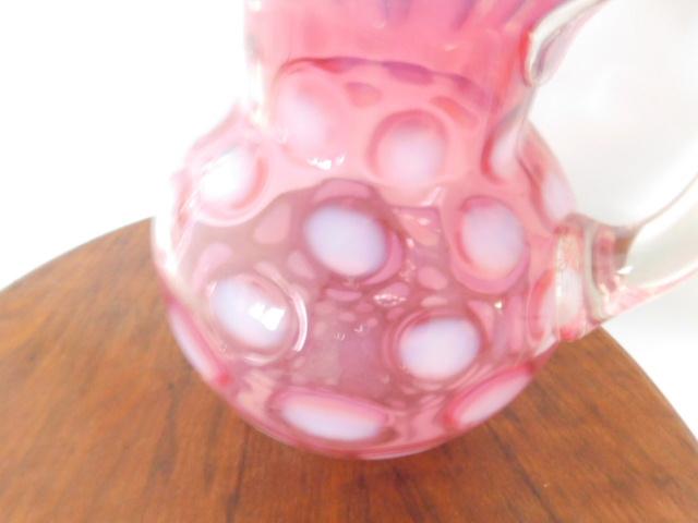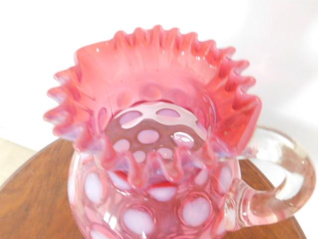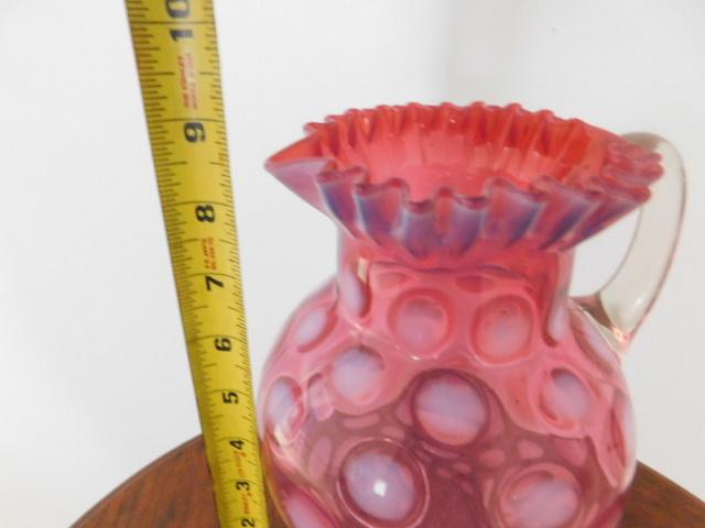 Vintage Fenton Coin Dot Ruffle Edge Cranberry Glass Pitcher