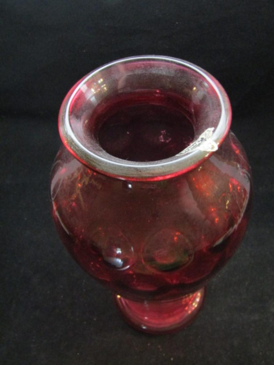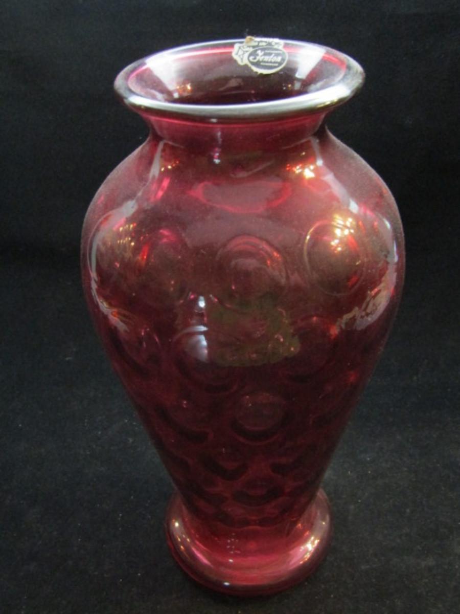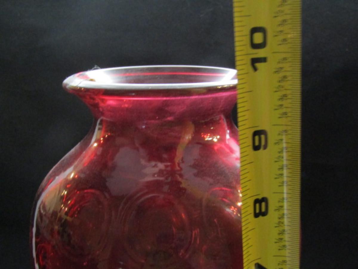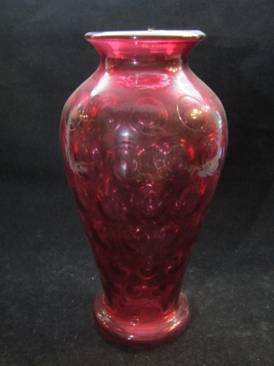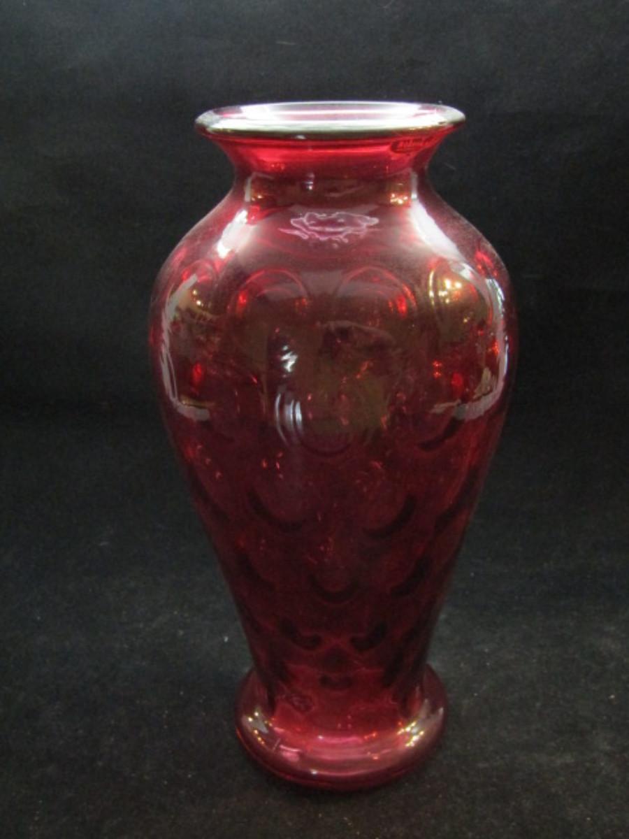 Vintage Fenton Cranberry Glass Coin Dot Vase (#189)