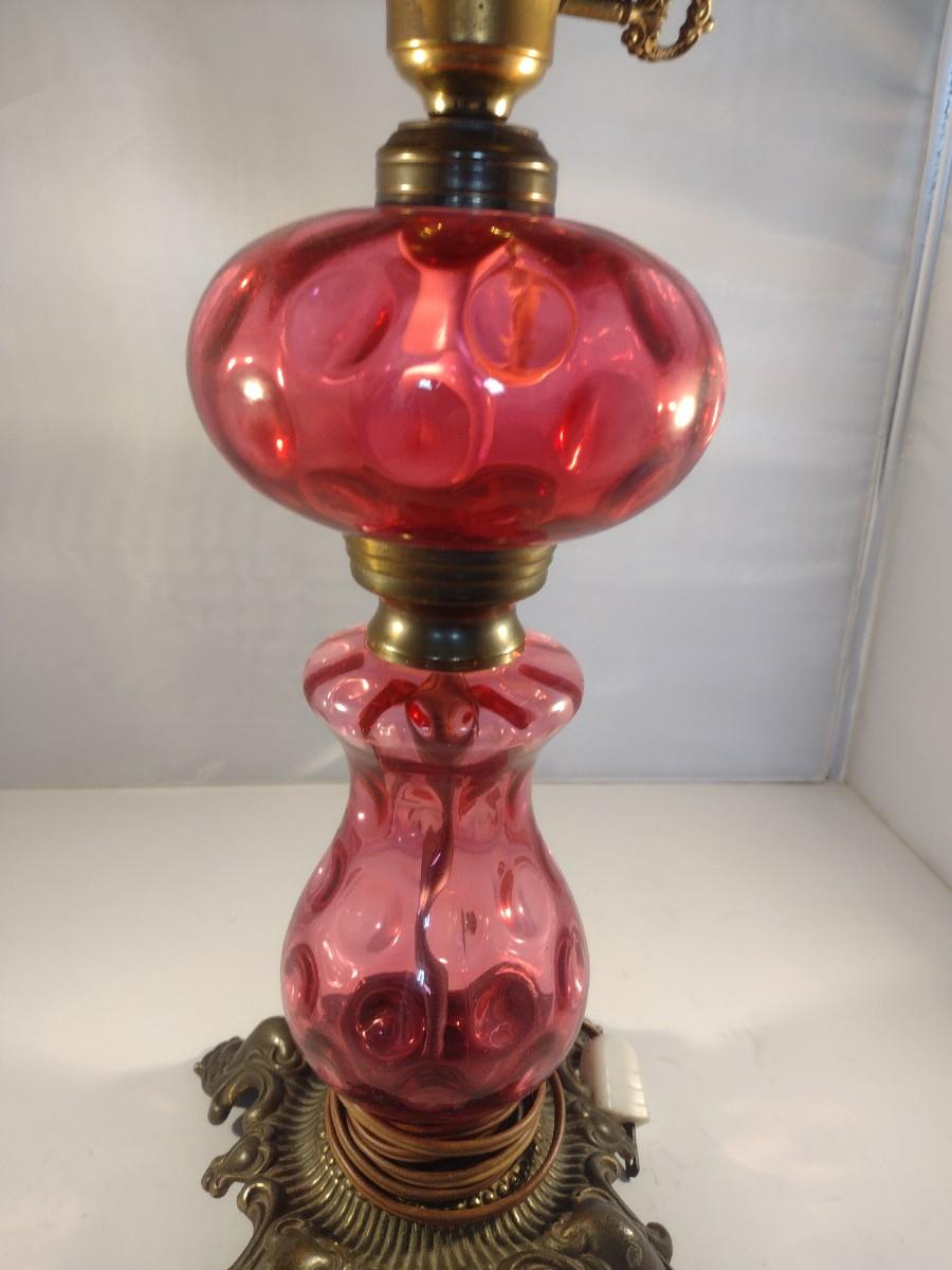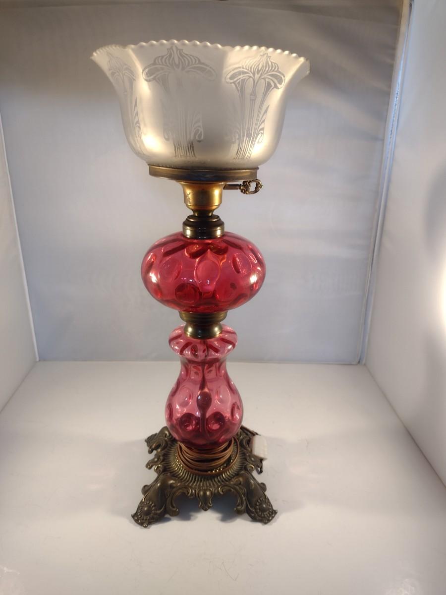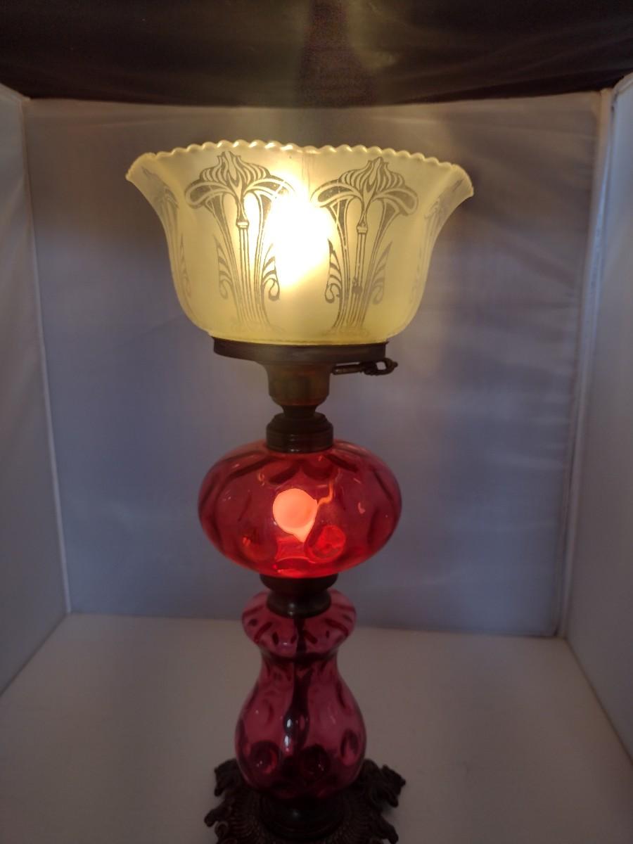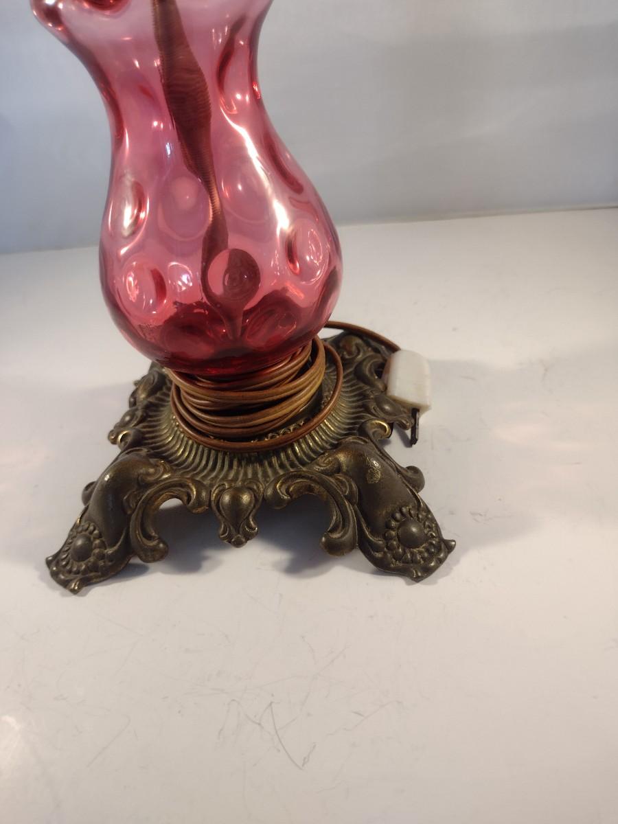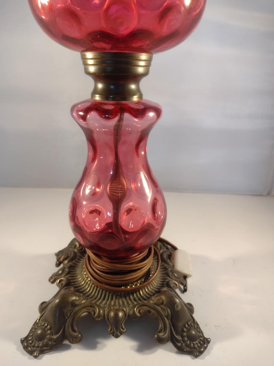 Vintage Fenton Cranberry Glass Three Globe Electric Table Lamp