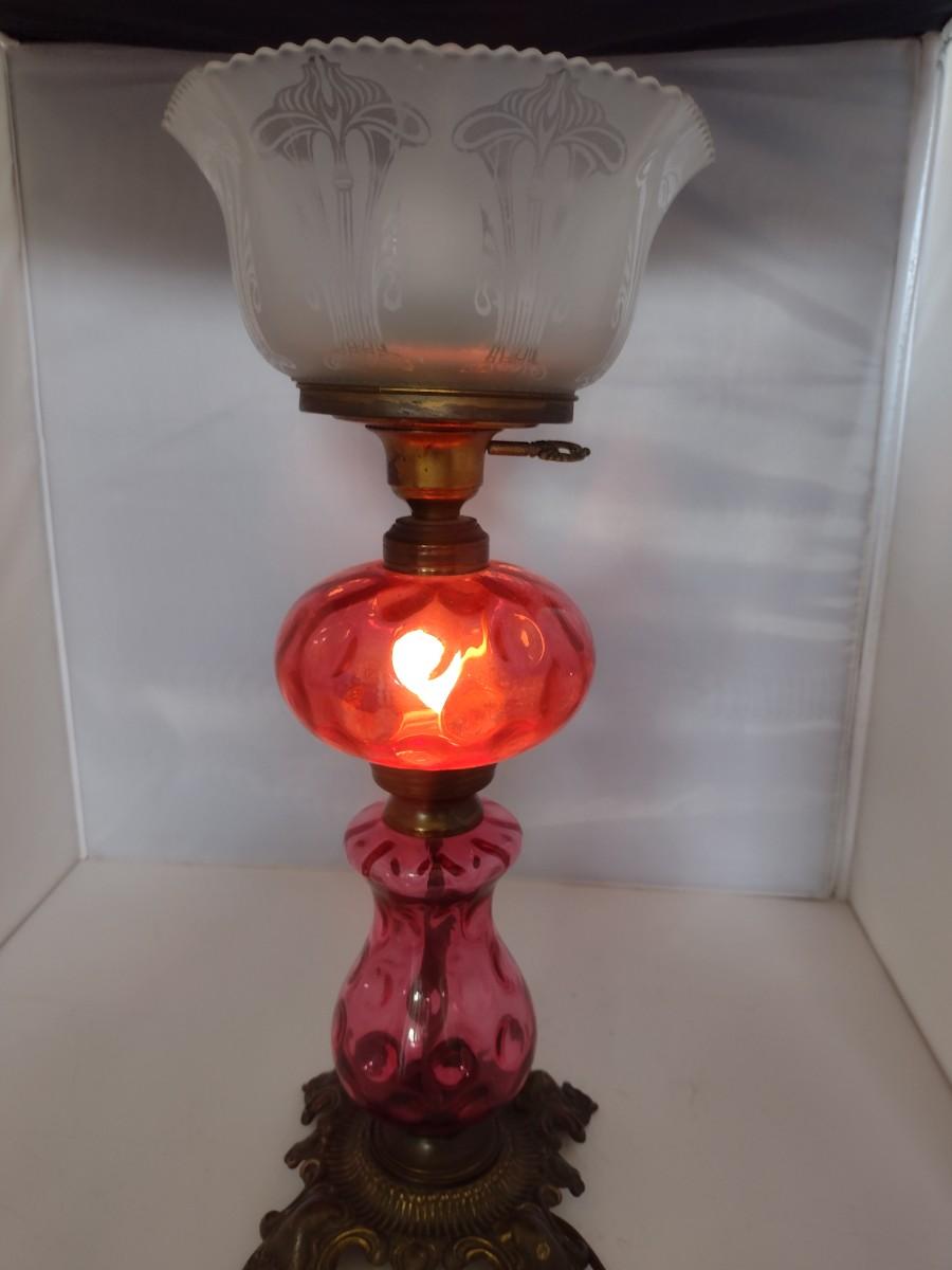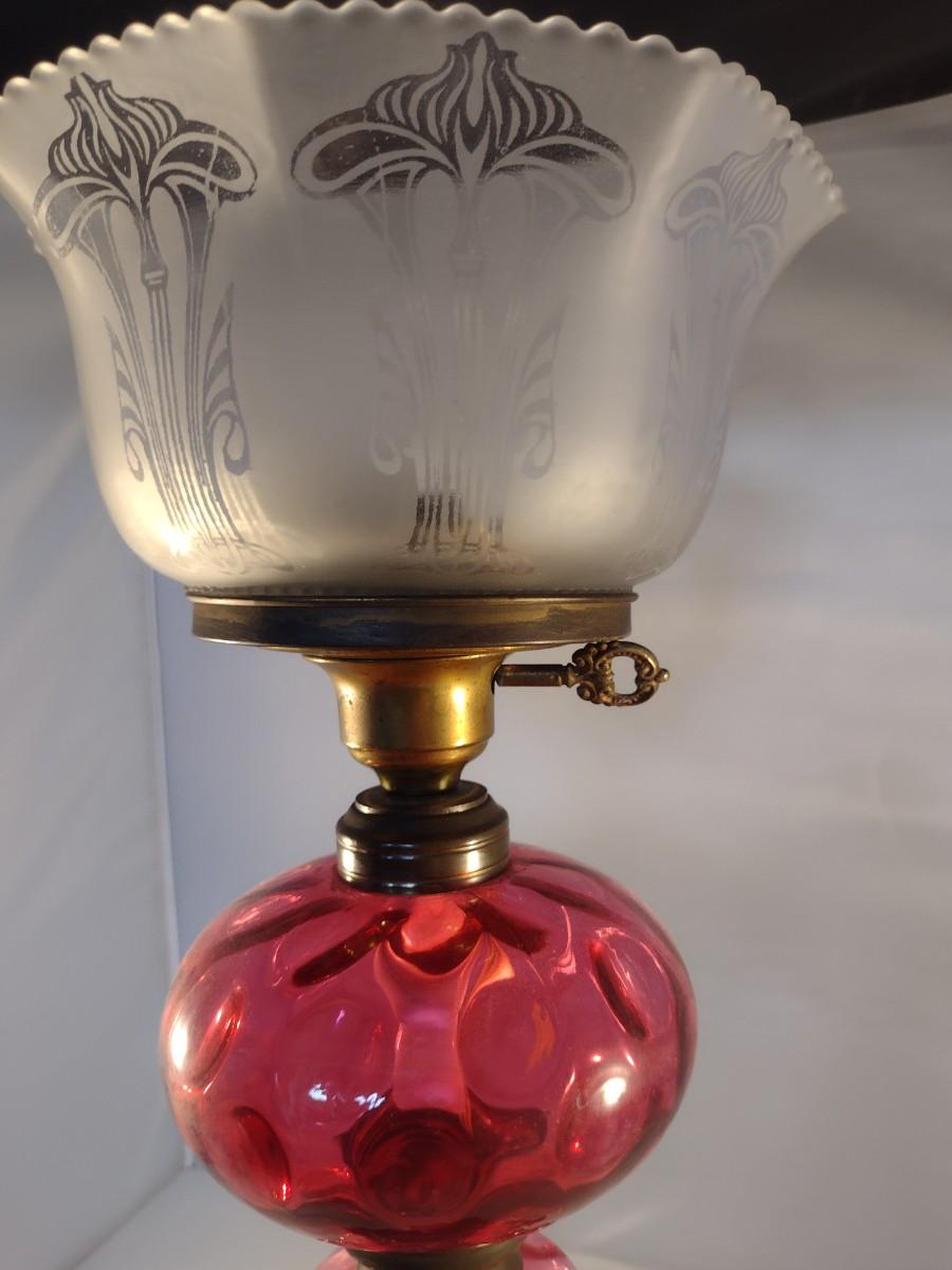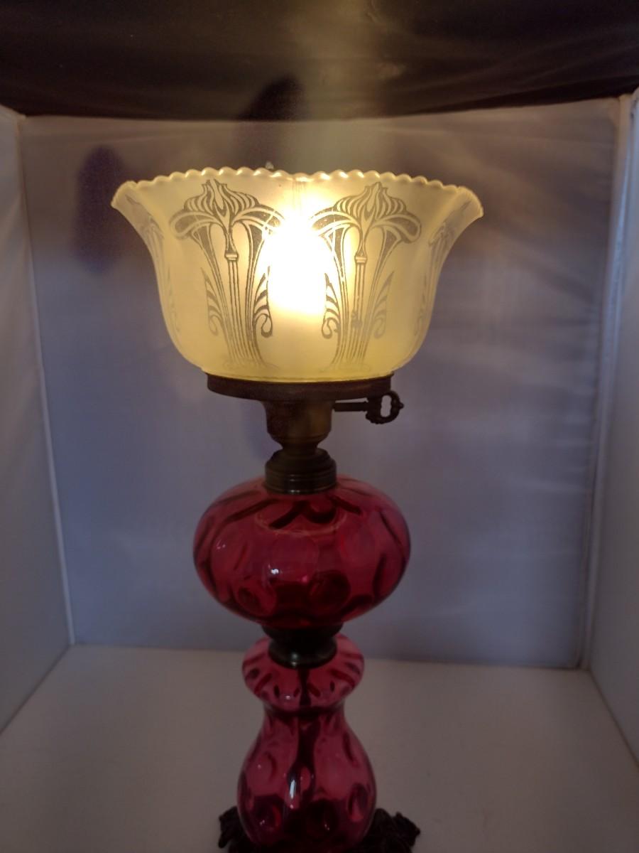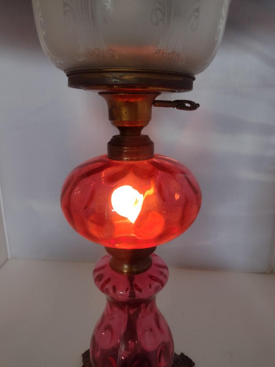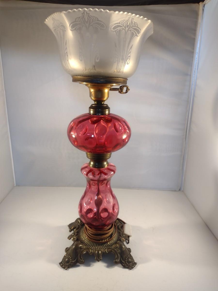 Vintage Fenton Cranberry Glass Three Globe Electric Table Lamp