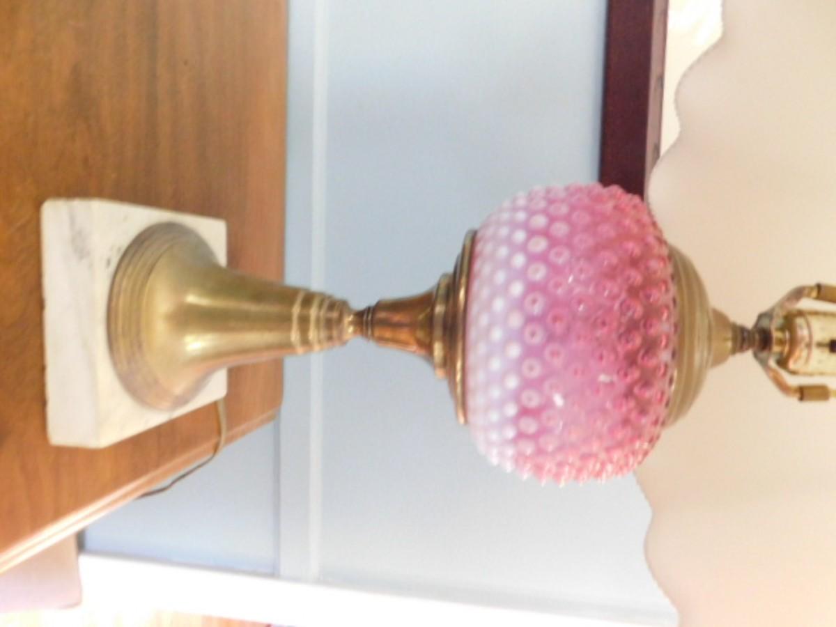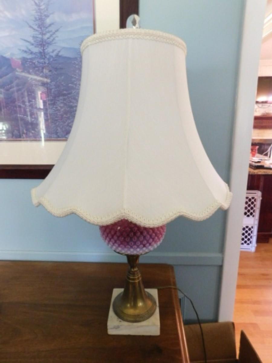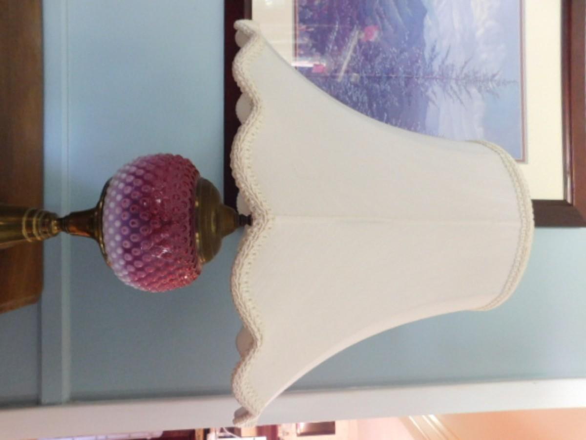 Vintage Fenton Cranberry Hobnail Table Lamp with Scalloped Edge Fabric Shade  (L14)