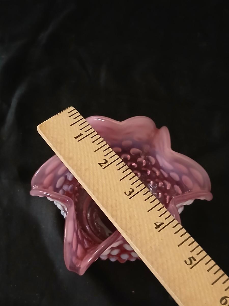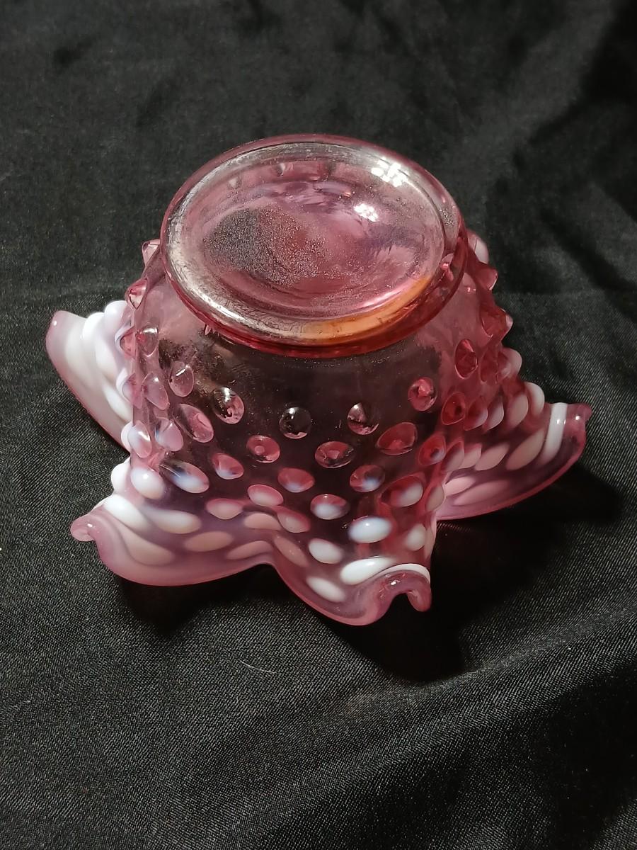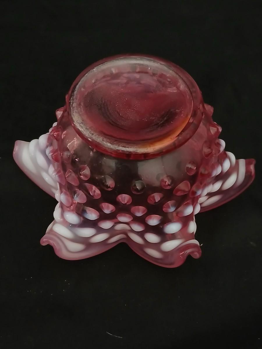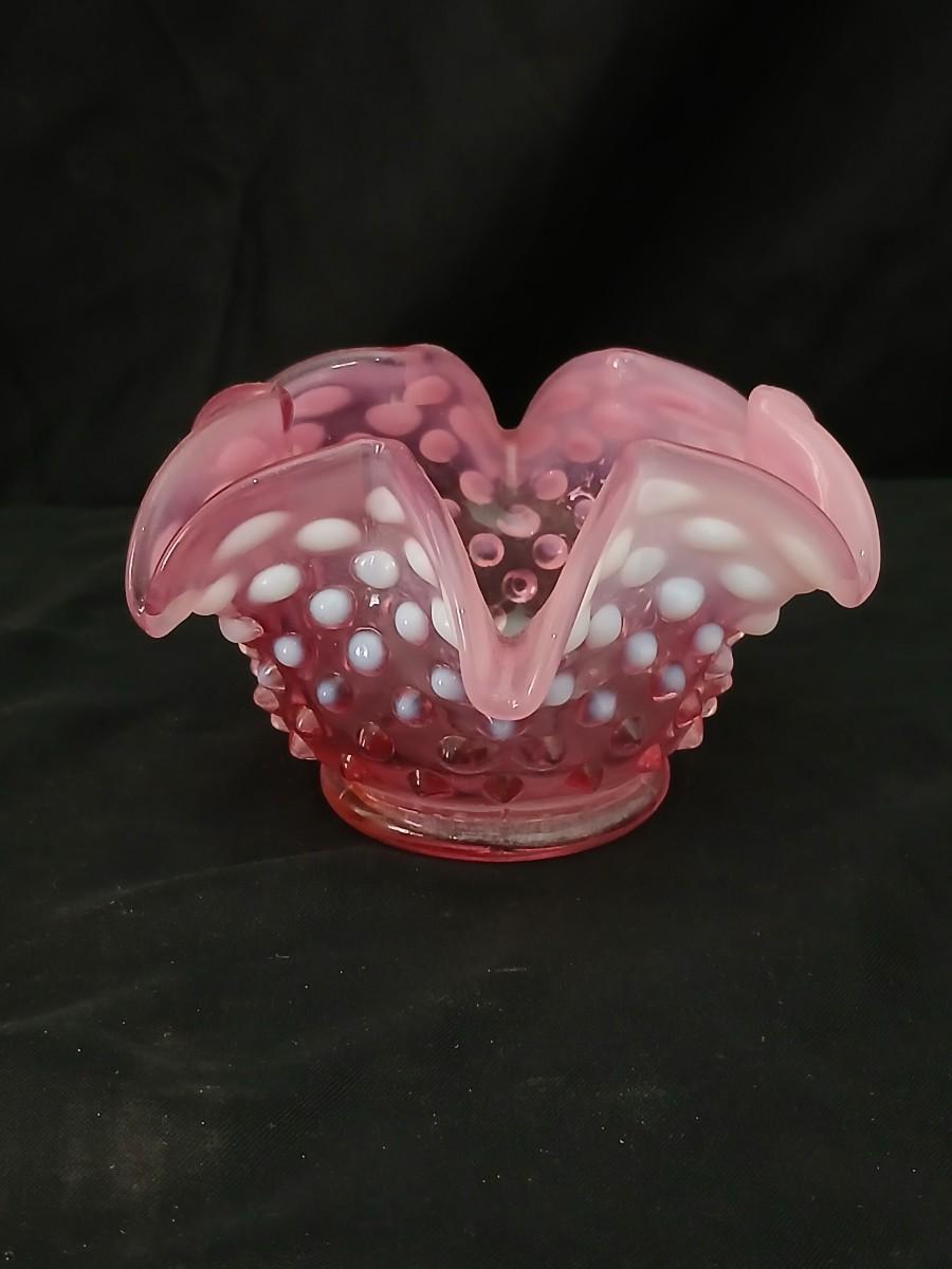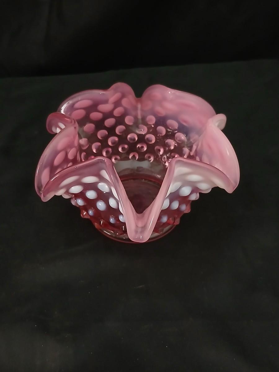 Vintage Fenton Cranberry Opalescent Hobnail Ruffled Bowl