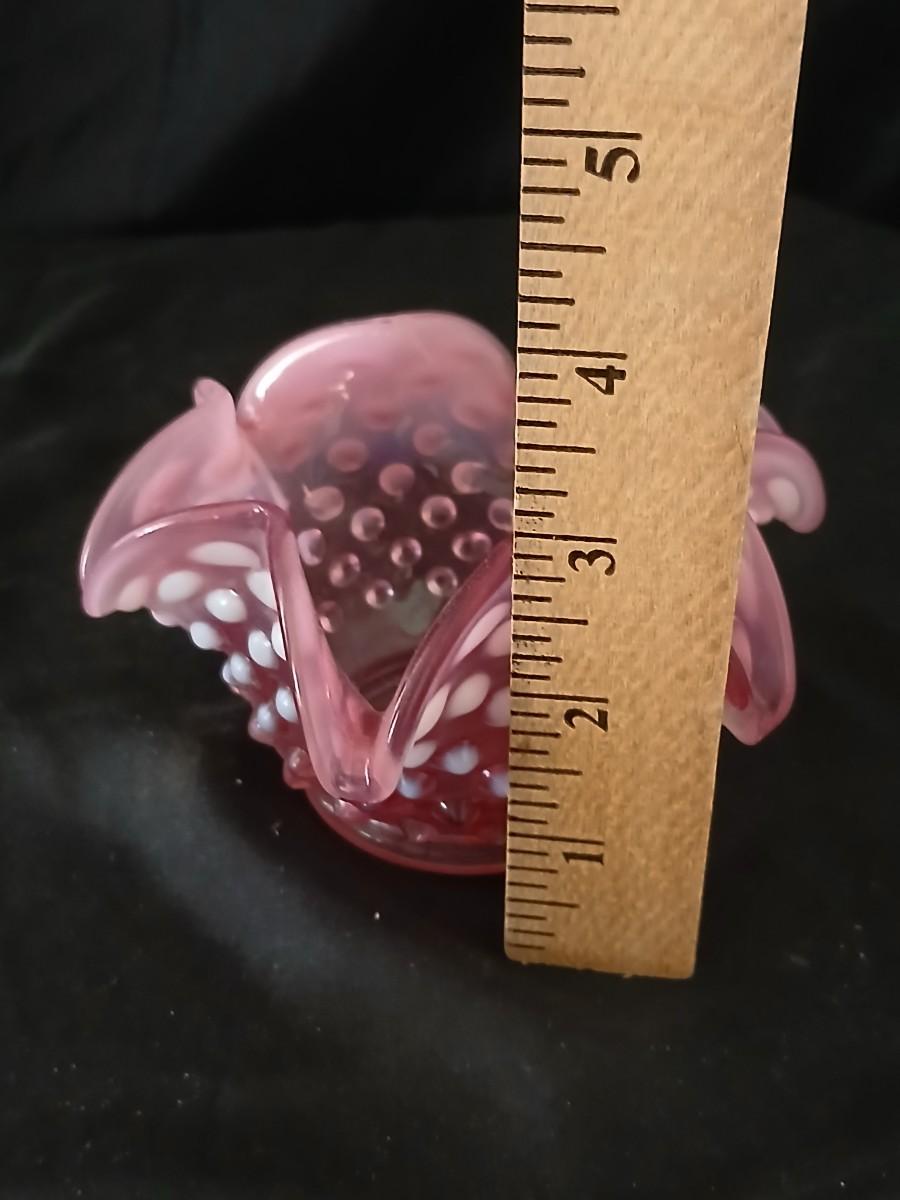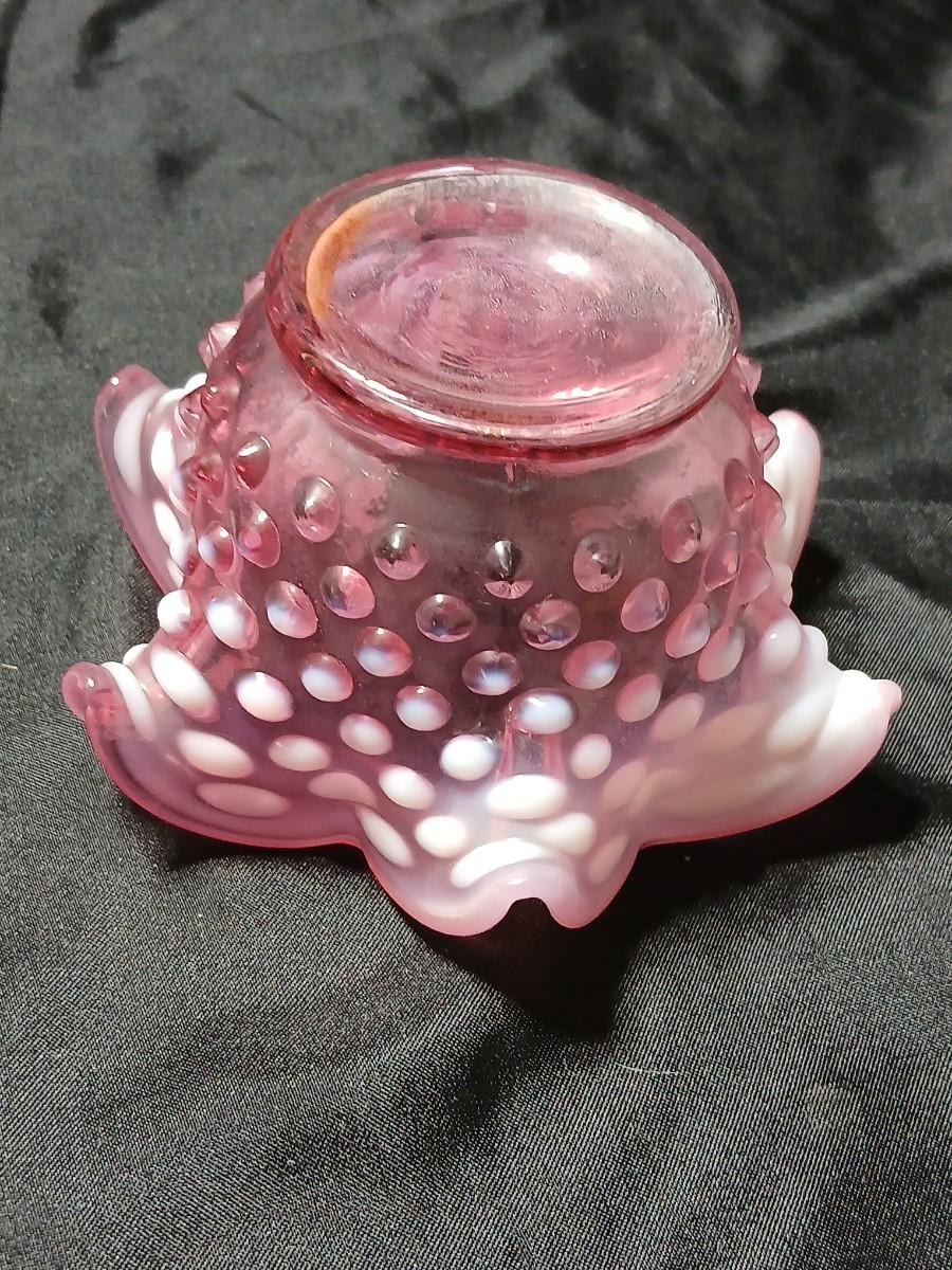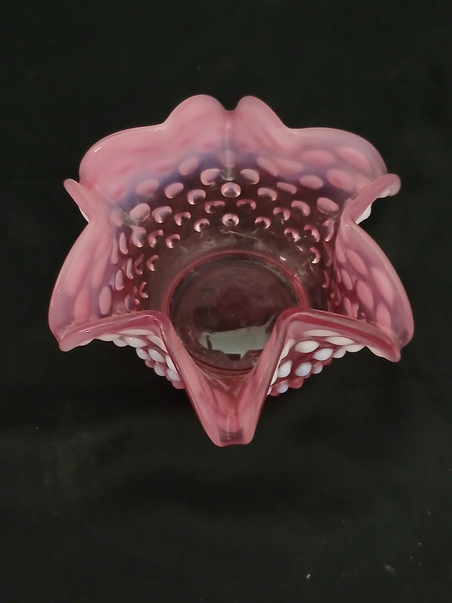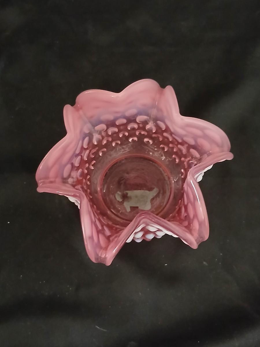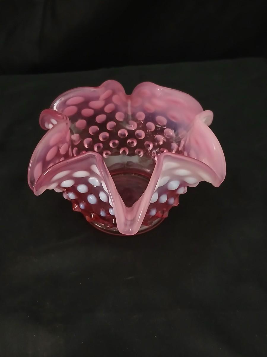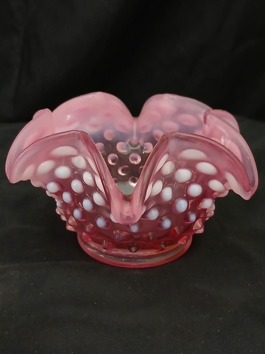 Vintage Fenton Cranberry Opalescent Hobnail Ruffled Bowl