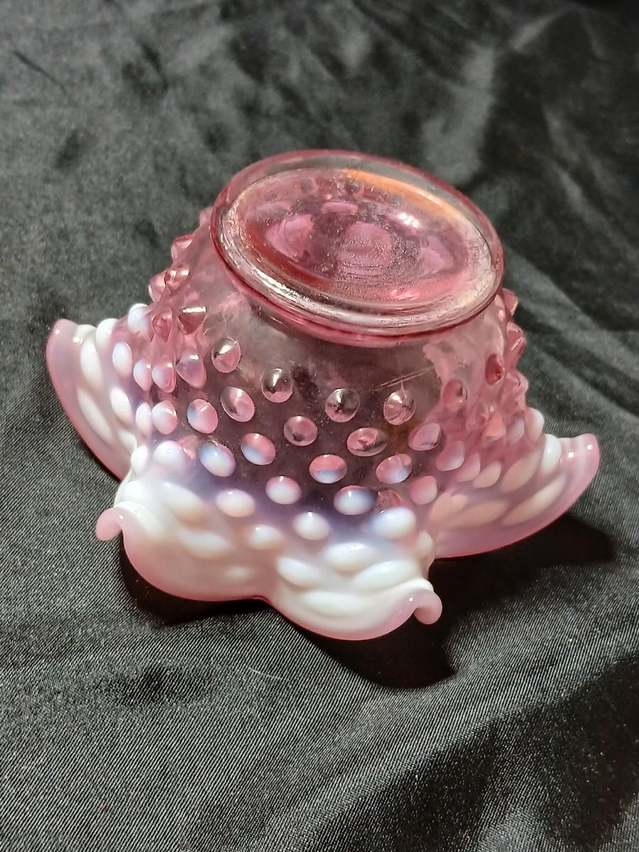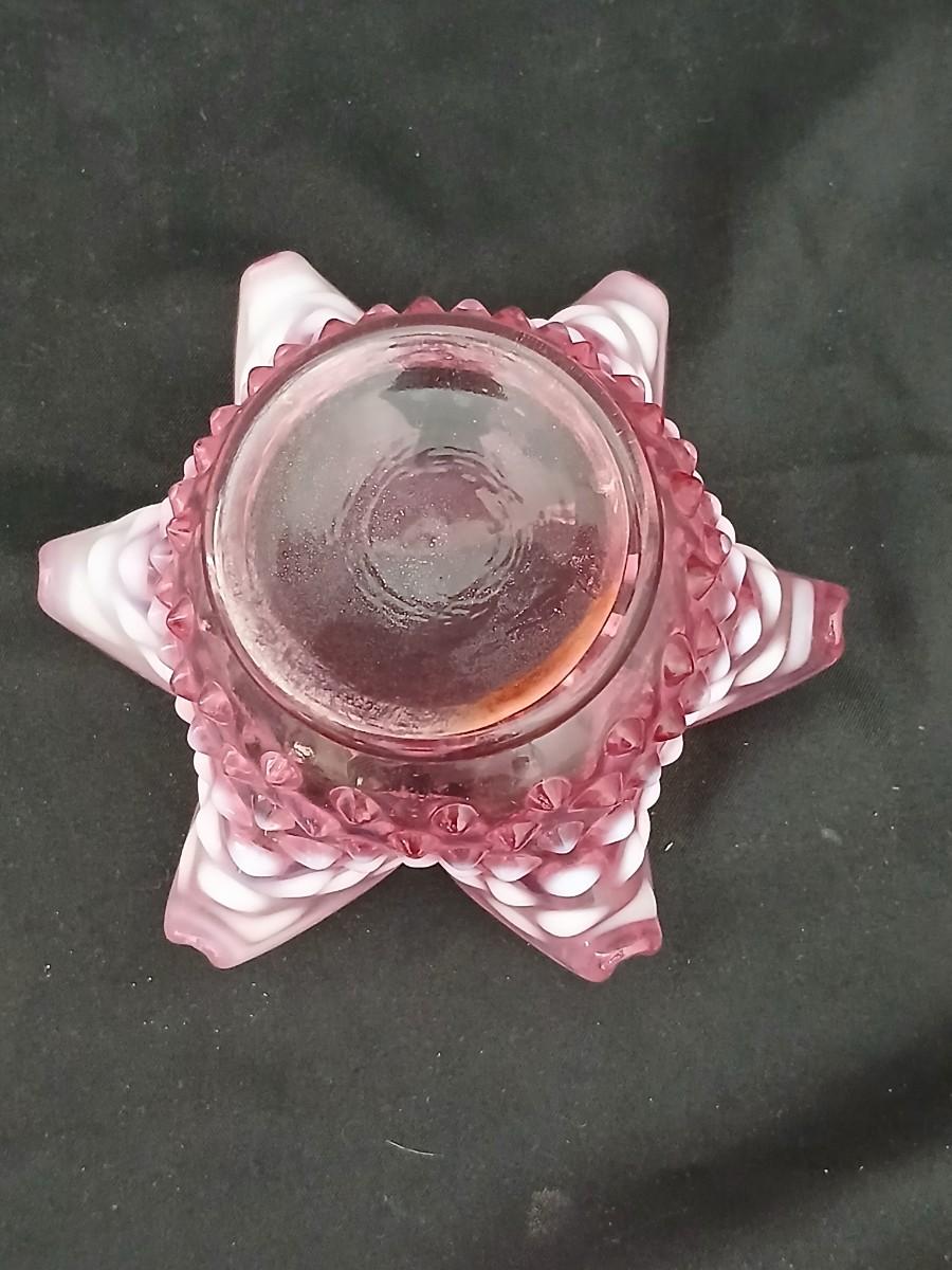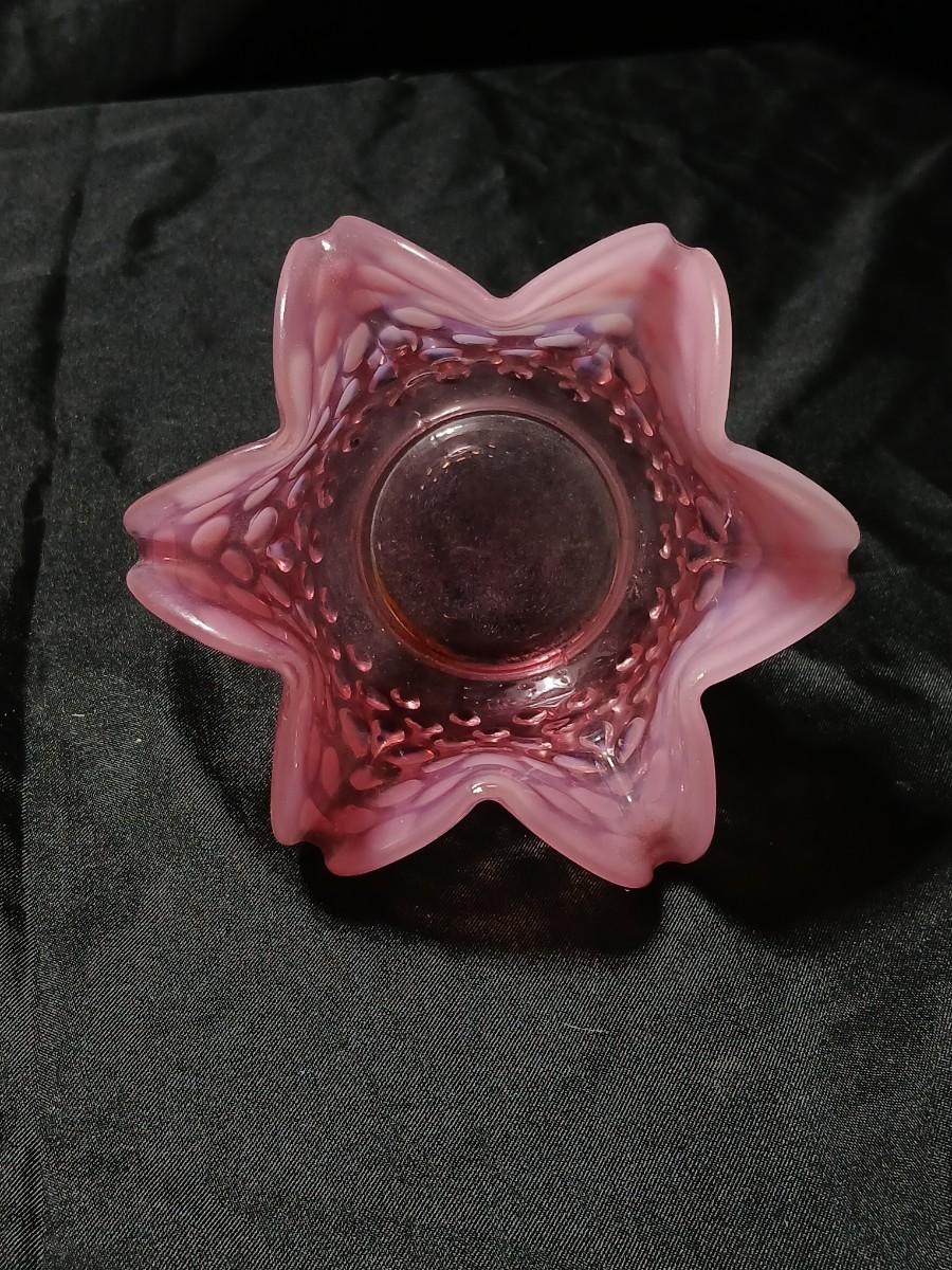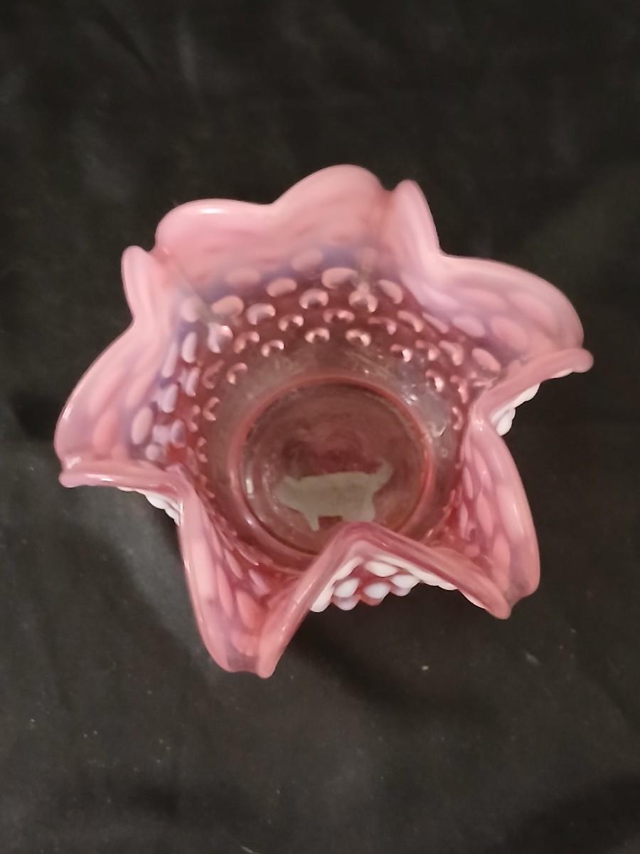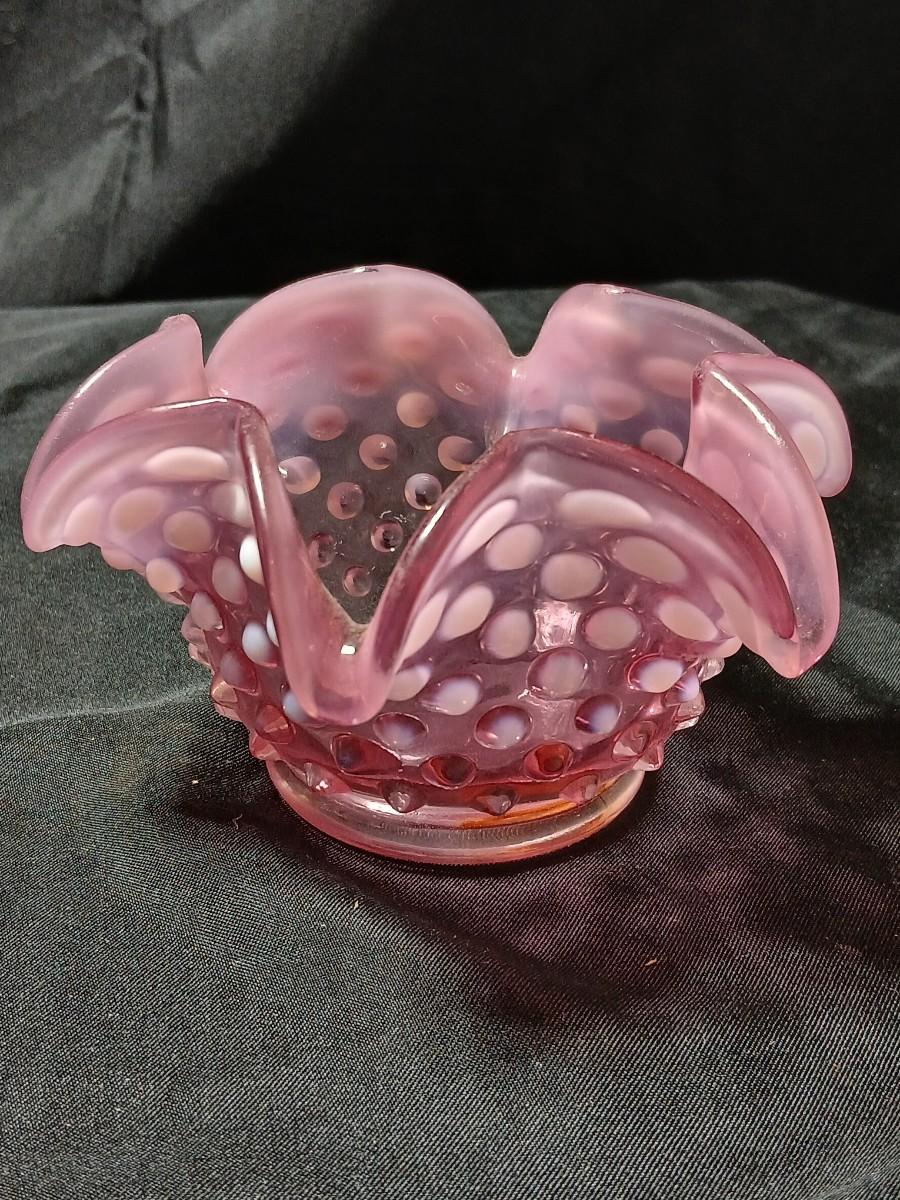 Vintage Fenton Cranberry Opalescent Hobnail Ruffled Bowl