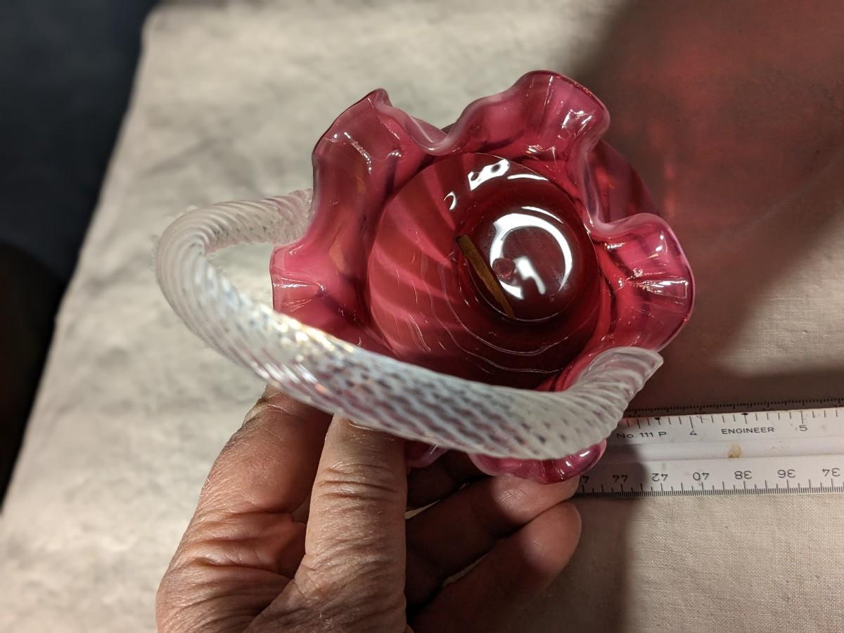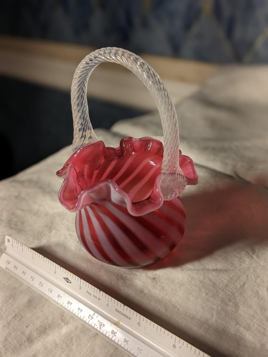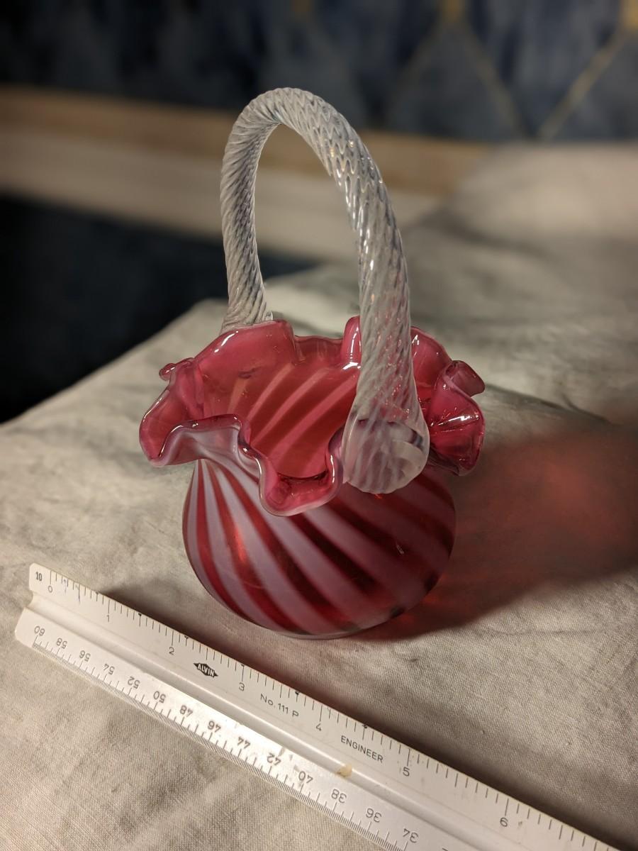 Vintage Fenton Cranberry Opalescent Spiral Optic Basket