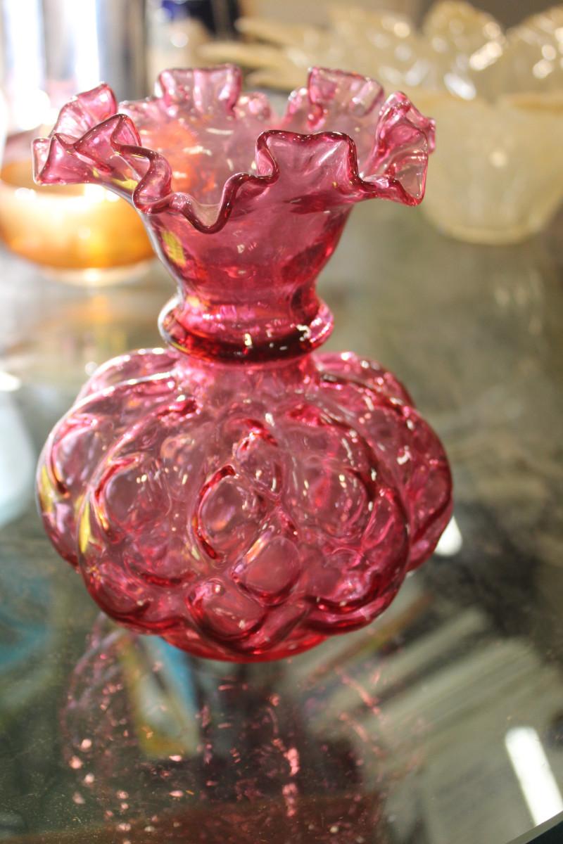 Vintage Fenton Cranberry Ruffle Vase