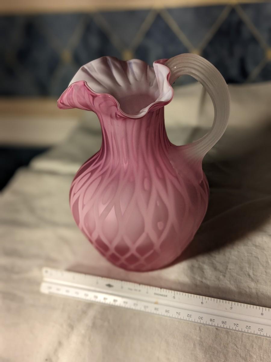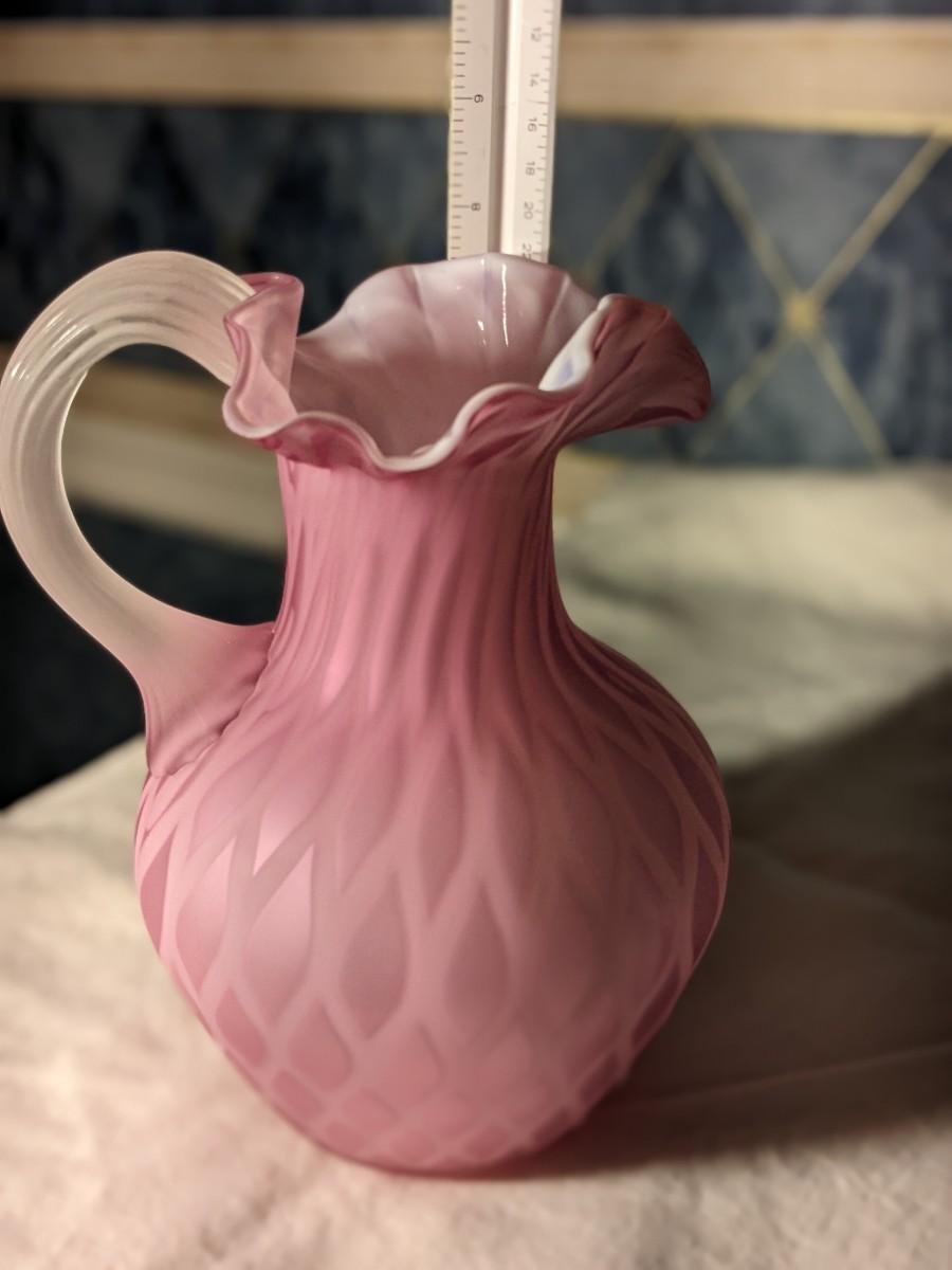 Vintage Fenton Diamond Optic Pink Satin Cruet Pitcher