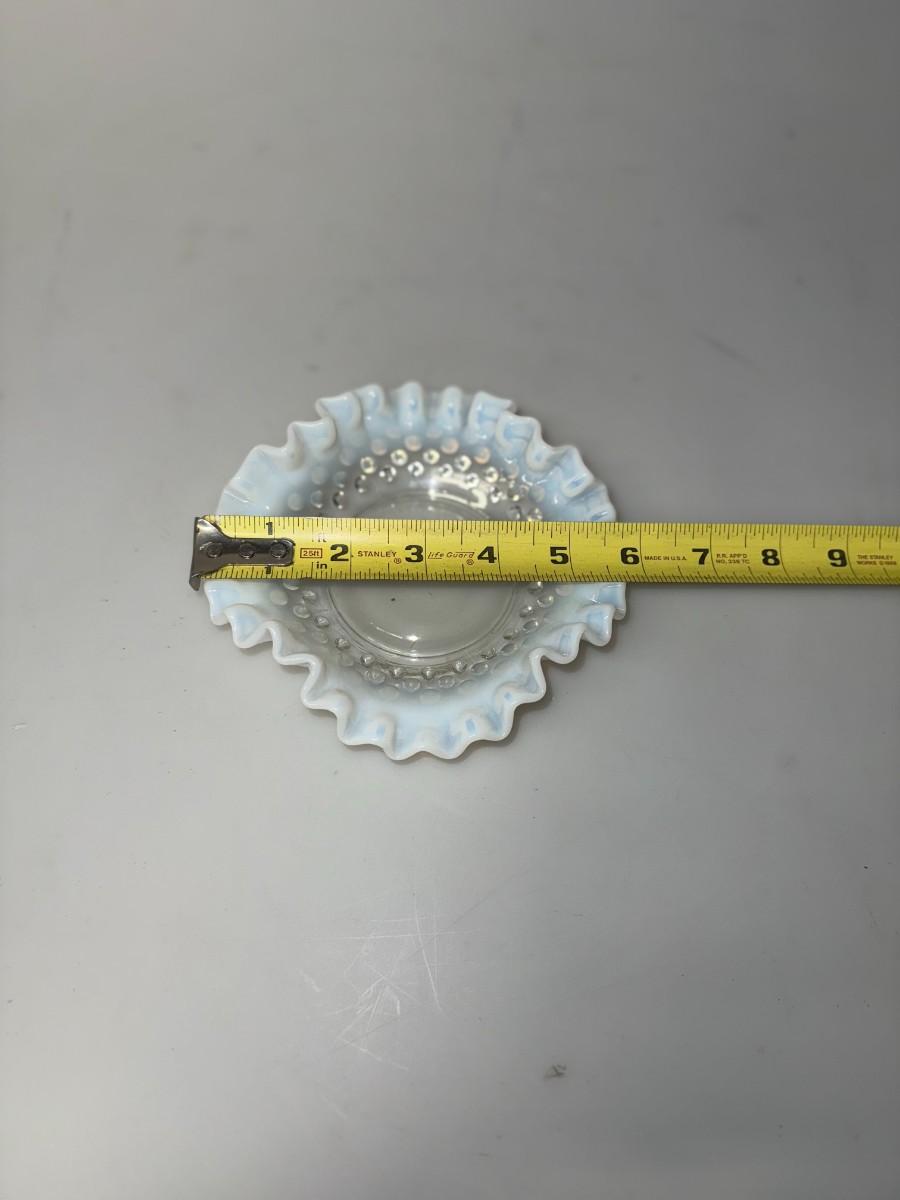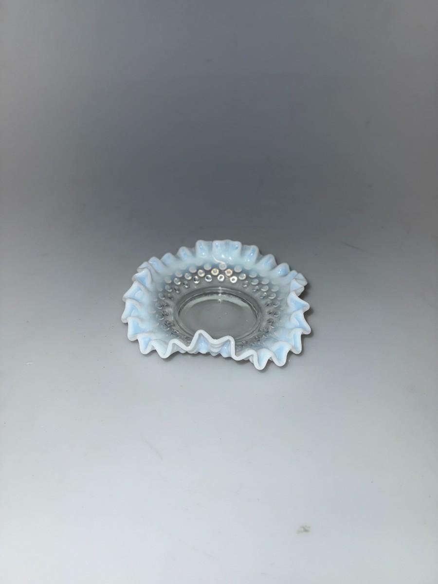 Vintage Fenton French Opalescent Bon Bon Glass Dish Hobnail and Ruffled