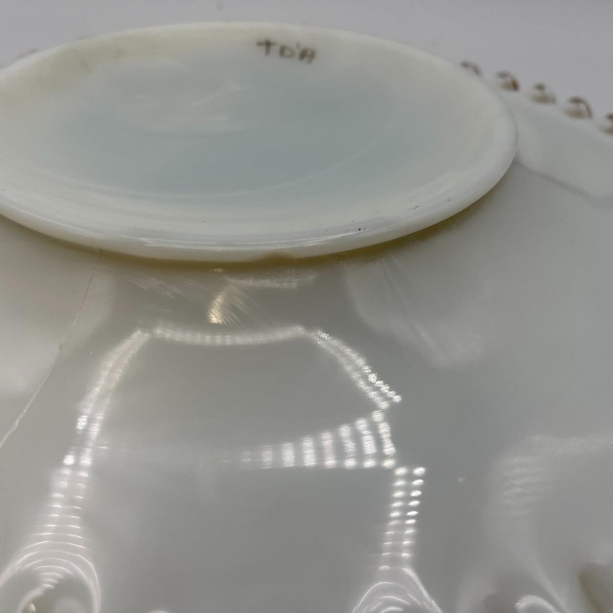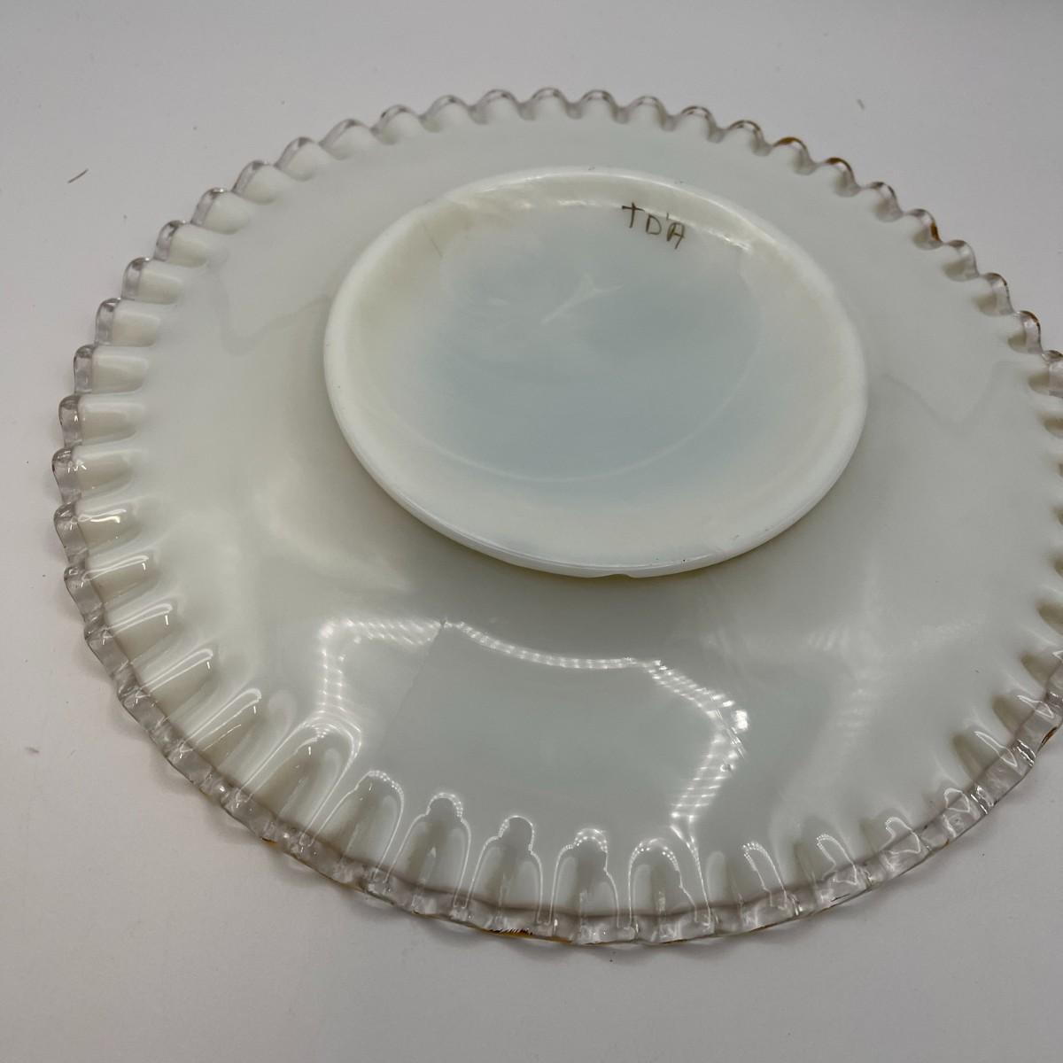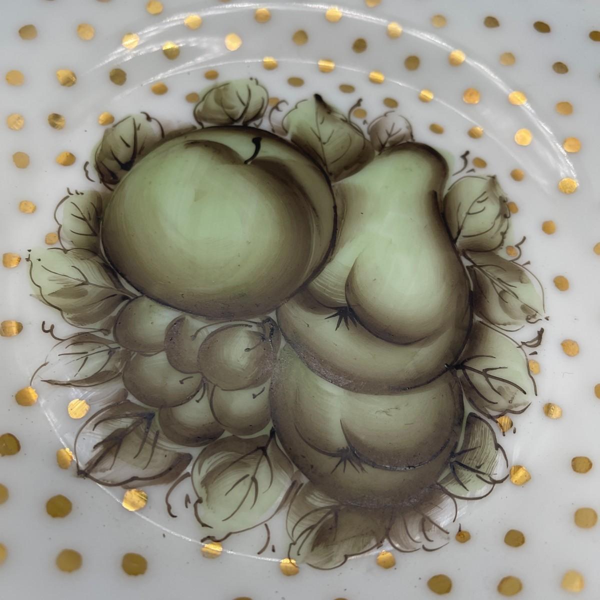 Vintage Fenton Glass Platter with Ribbon Edge, Gold Dots, & Hand Painted Pears