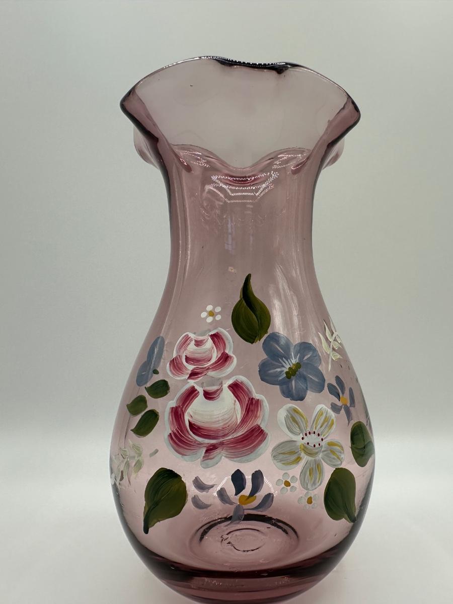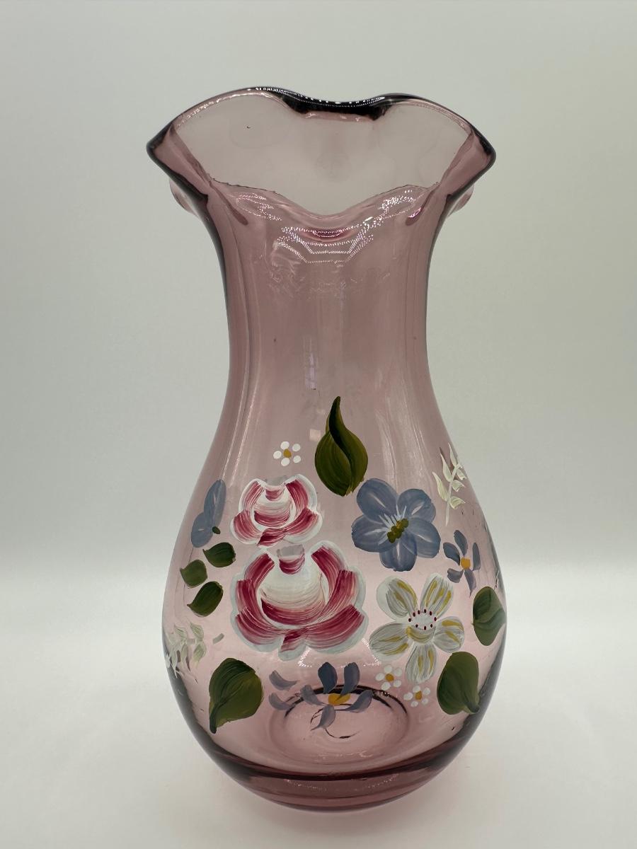 Vintage FENTON Hand Blown & Painted Glass Vase