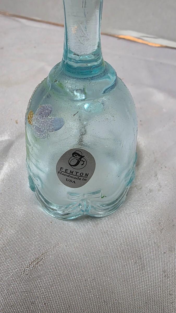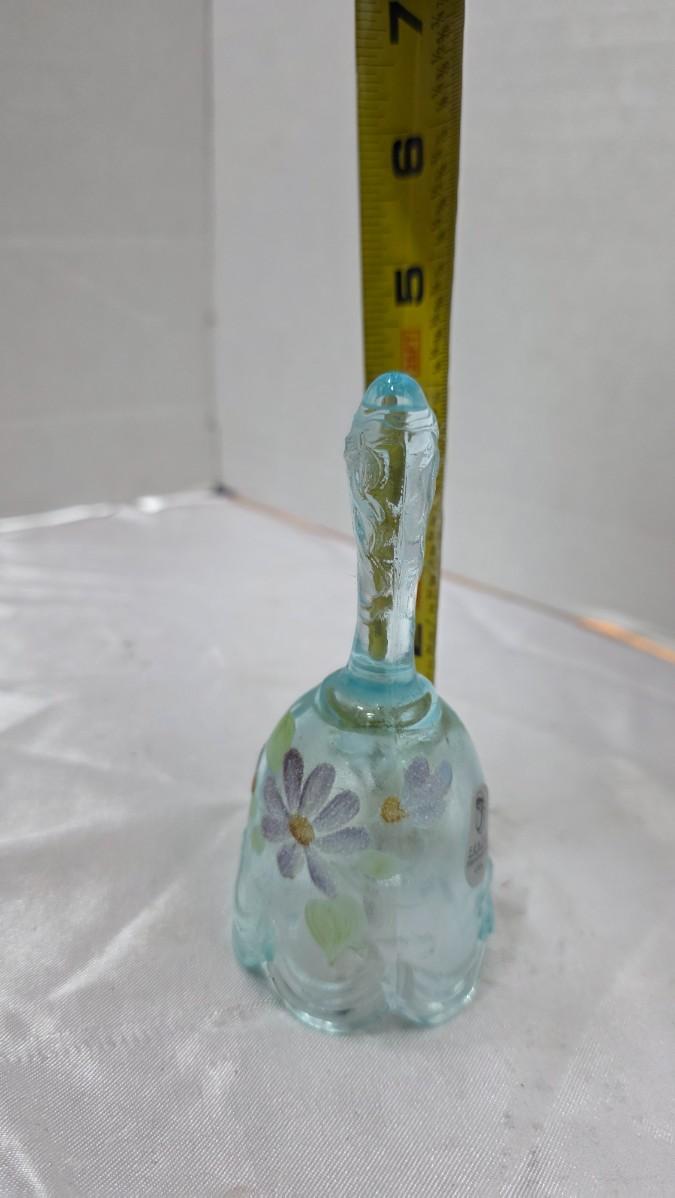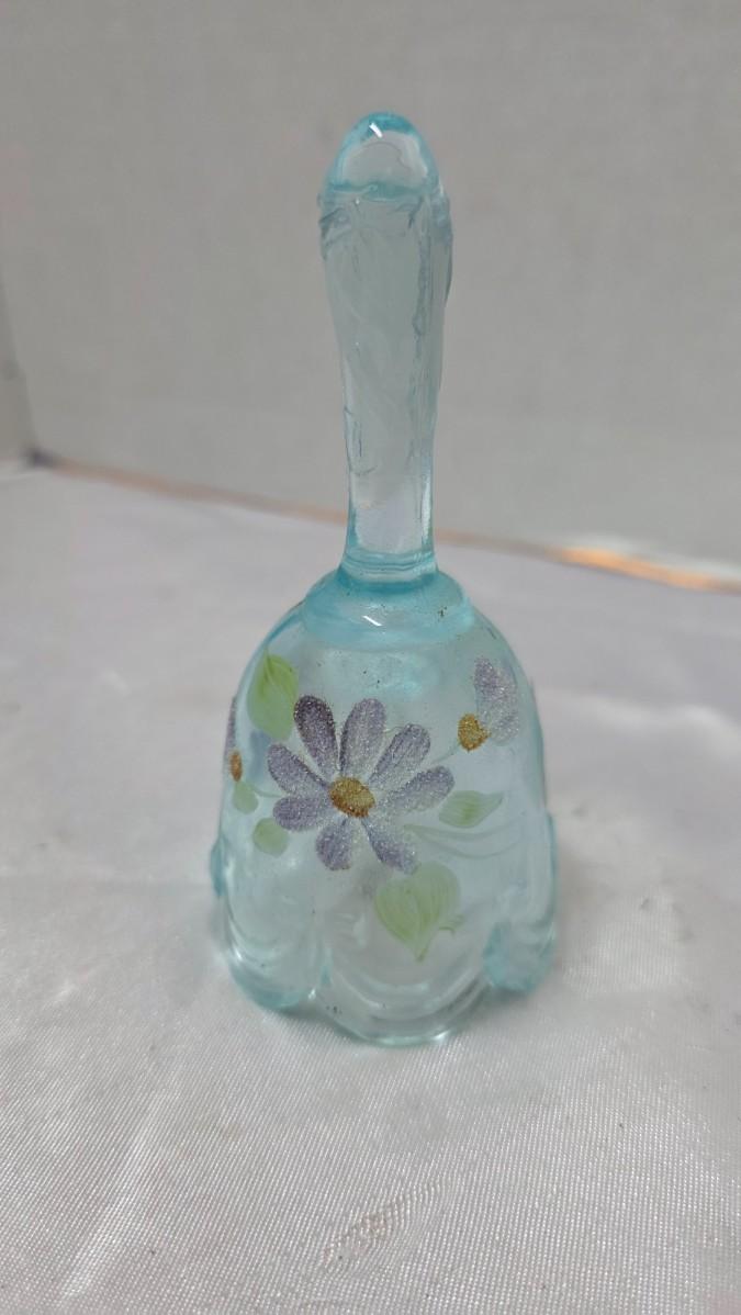 Vintage Fenton Hand-Painted Aqua Blue Opalescent Glass Bell with Floral Design – Made in USA