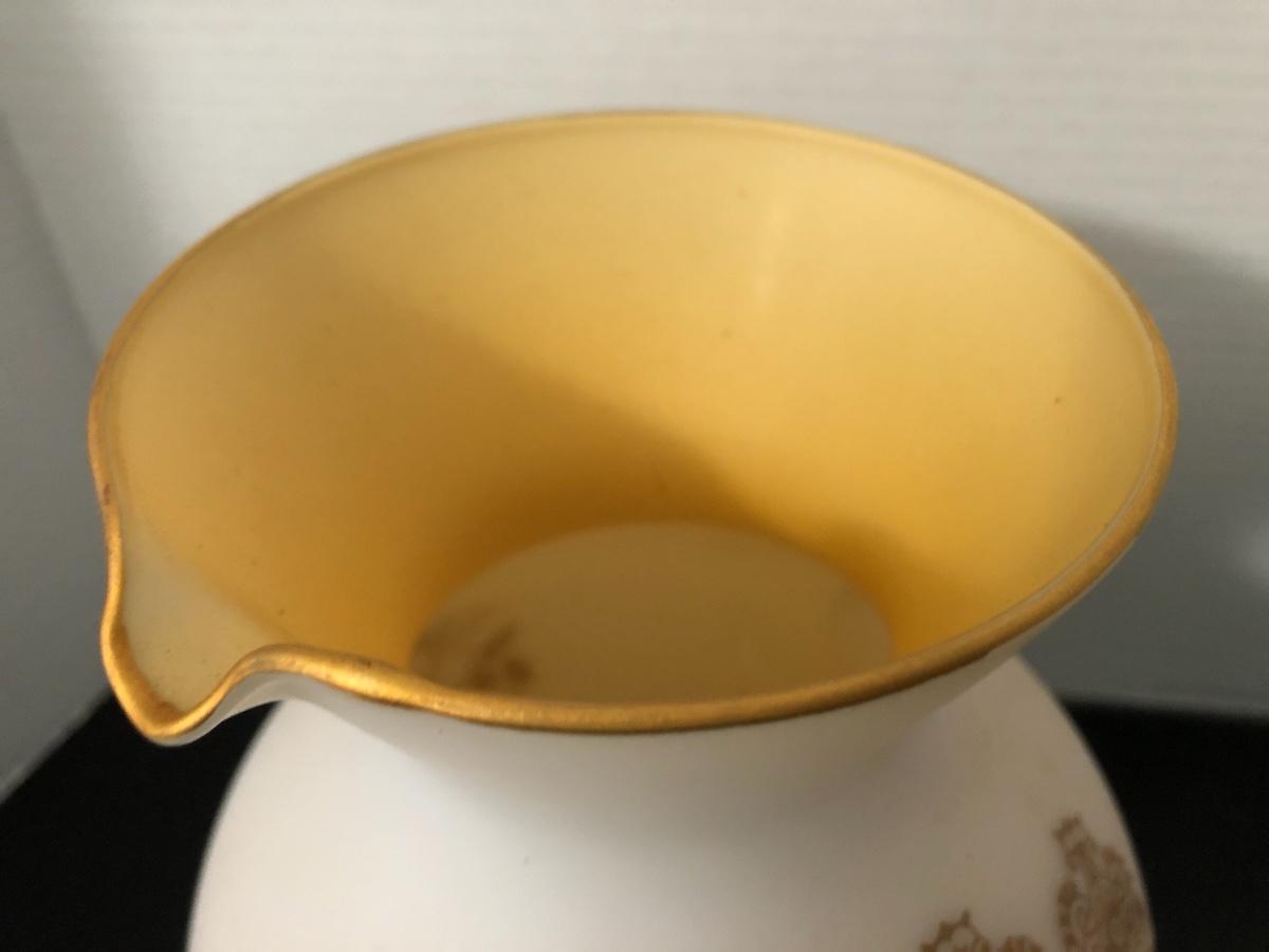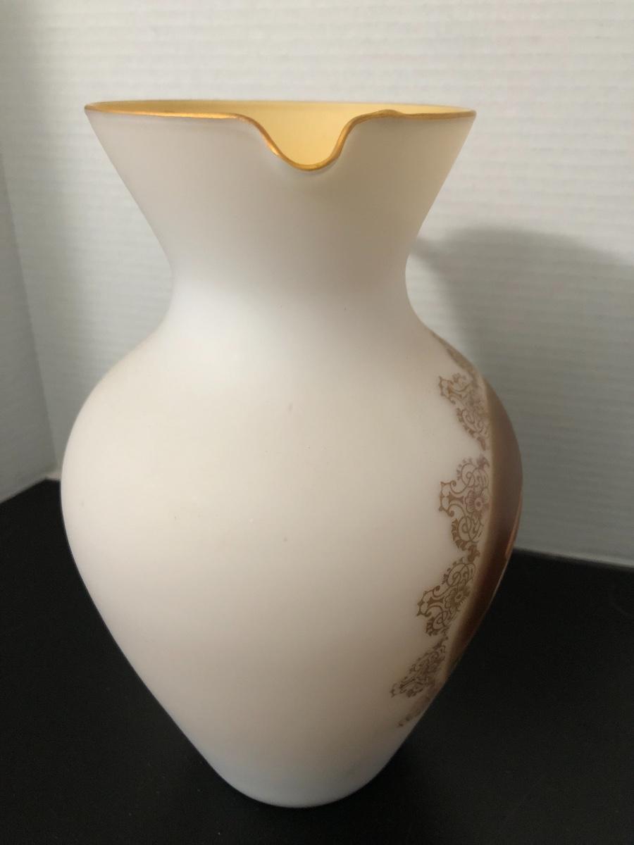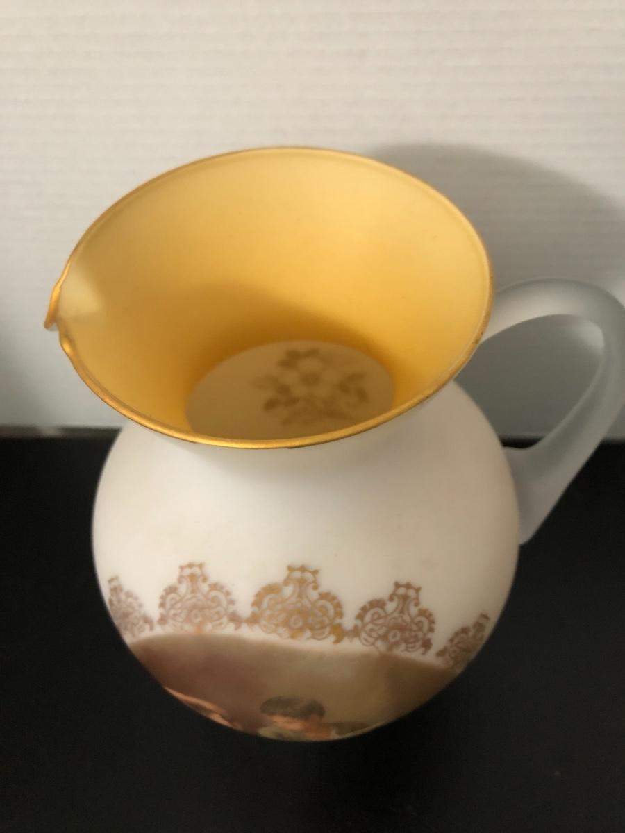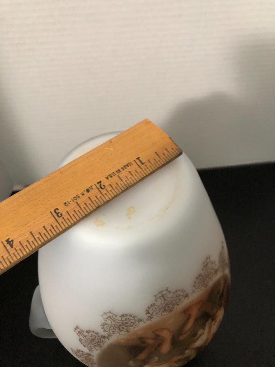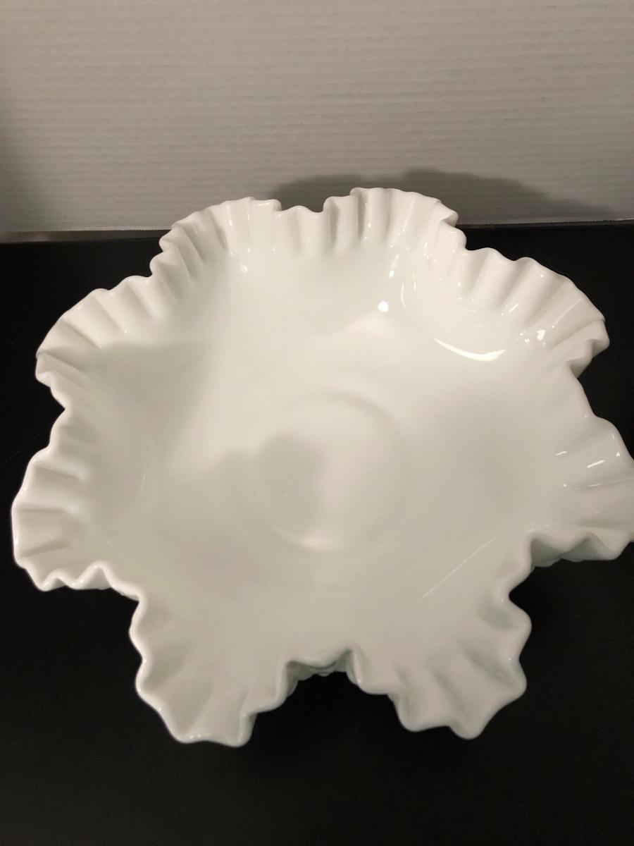All items are sold as is, as found in the estate. Please see all photos for content, measurements and condition. Fenton vase has 8 ruffles, very clean piece. Appears to have no chips or cracks. Antique water jug needs to be washed, does have dust & dirt on it.