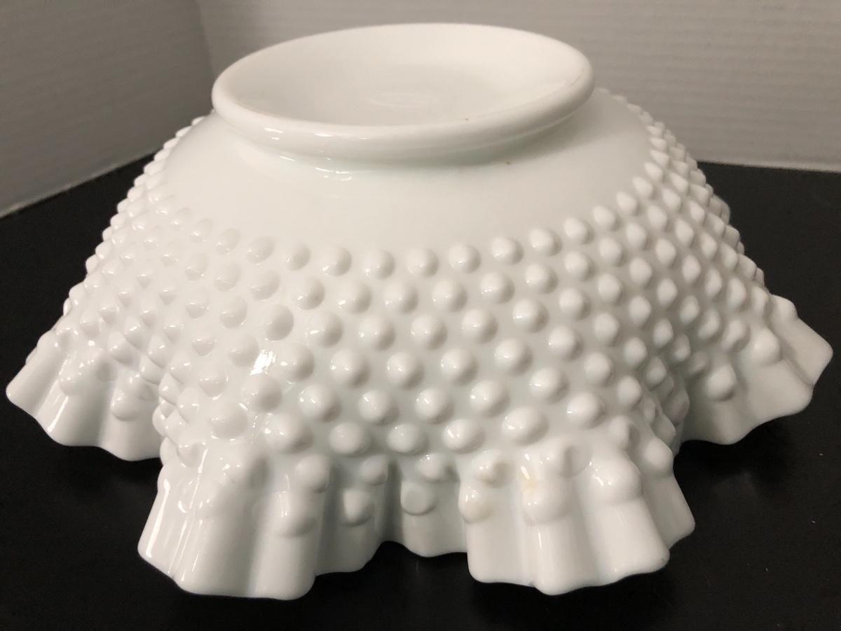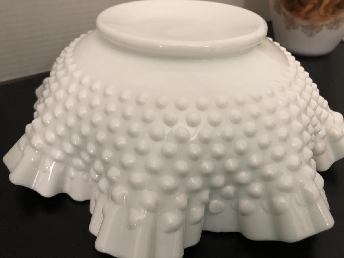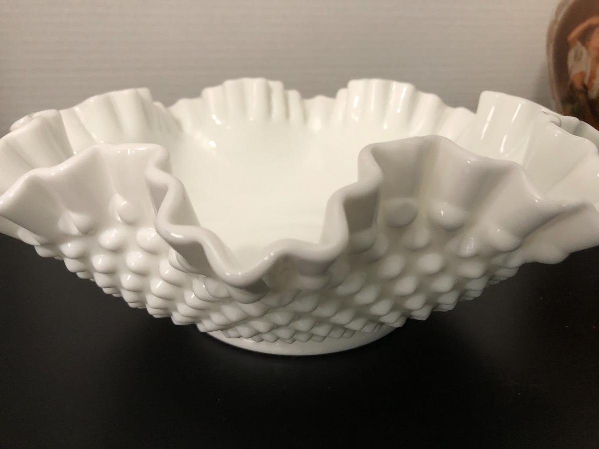 Vintage Fenton Hobnail Ruffle Milk Glass & Antique Water Vase