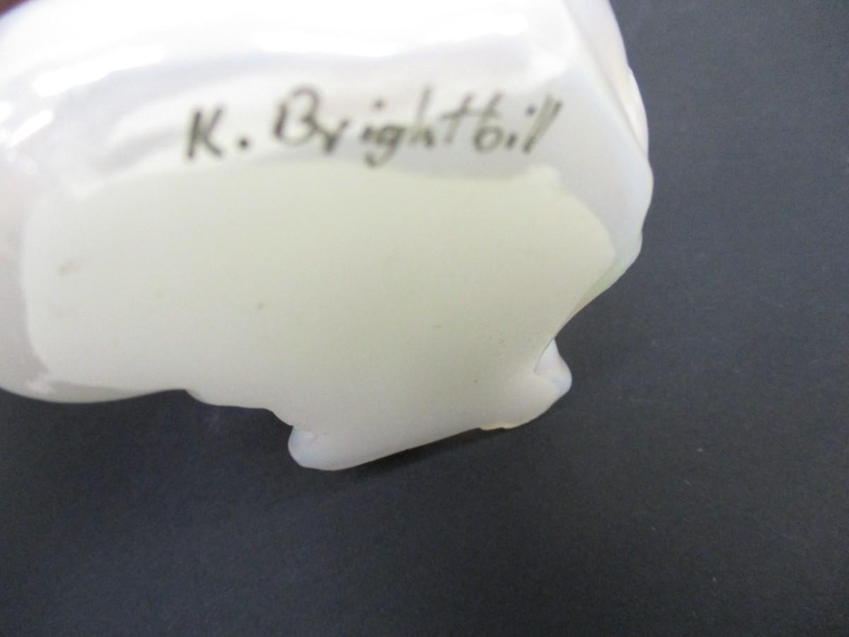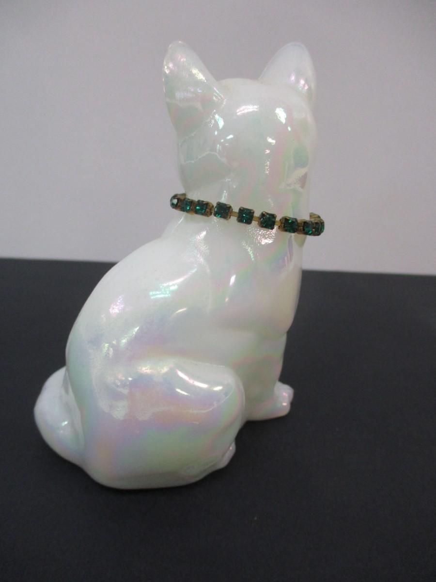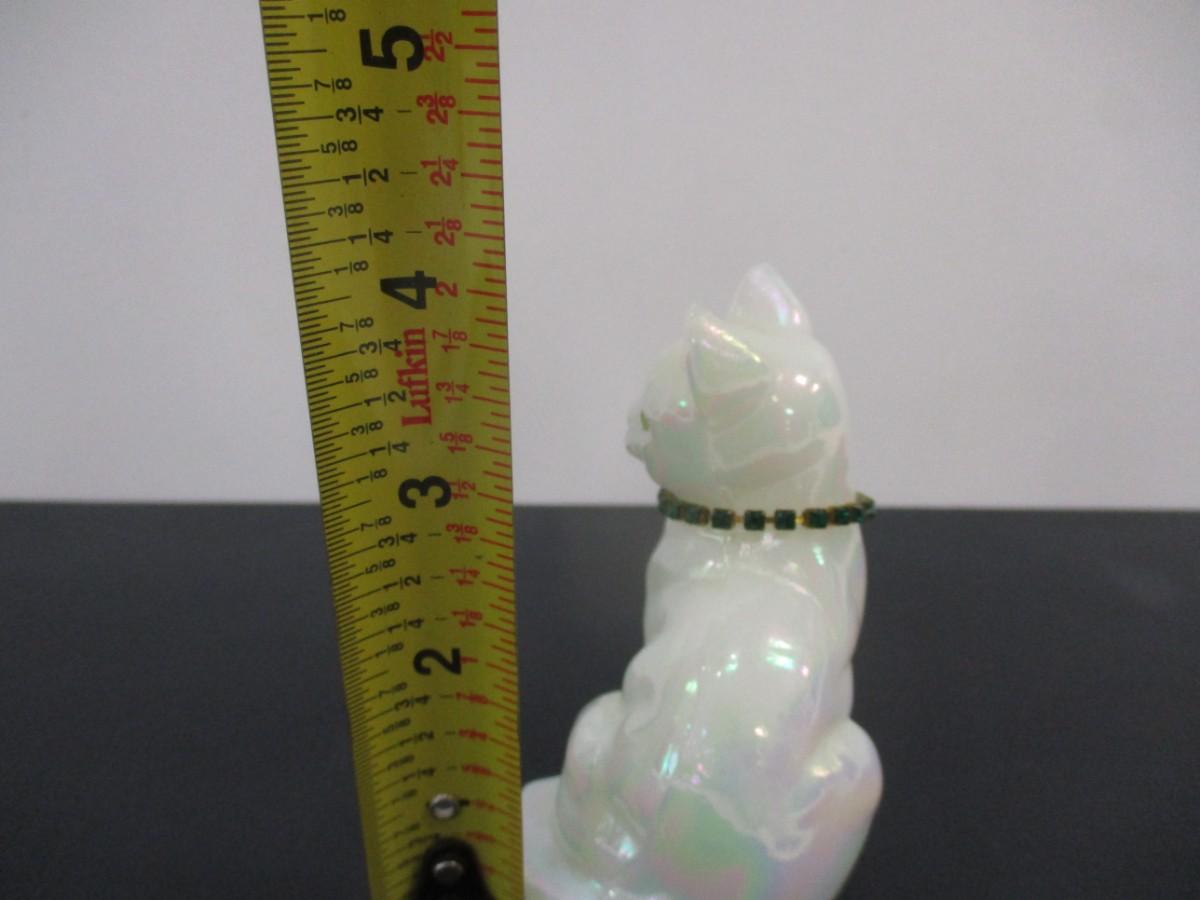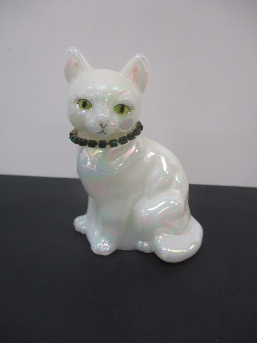 Vintage Fenton Iridescent Glass White Cat Signed K. Brightbill