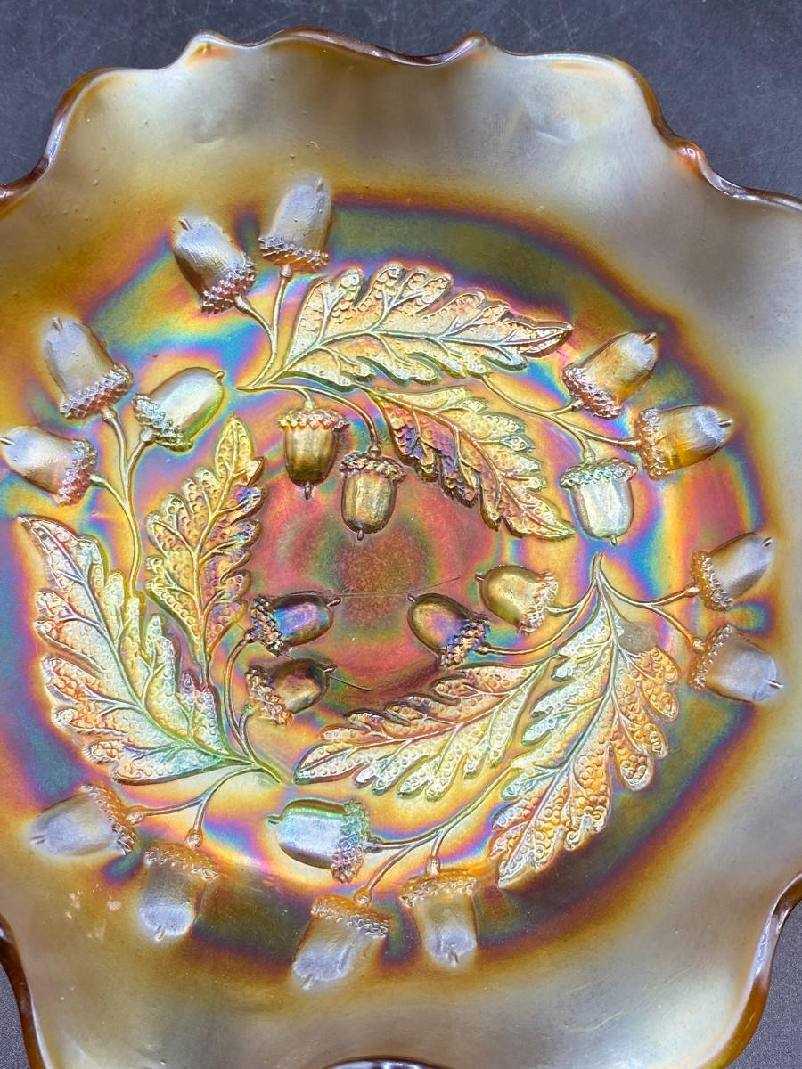 Vintage Fenton Marigold Carnival Glass Bowl Acorn Pattern