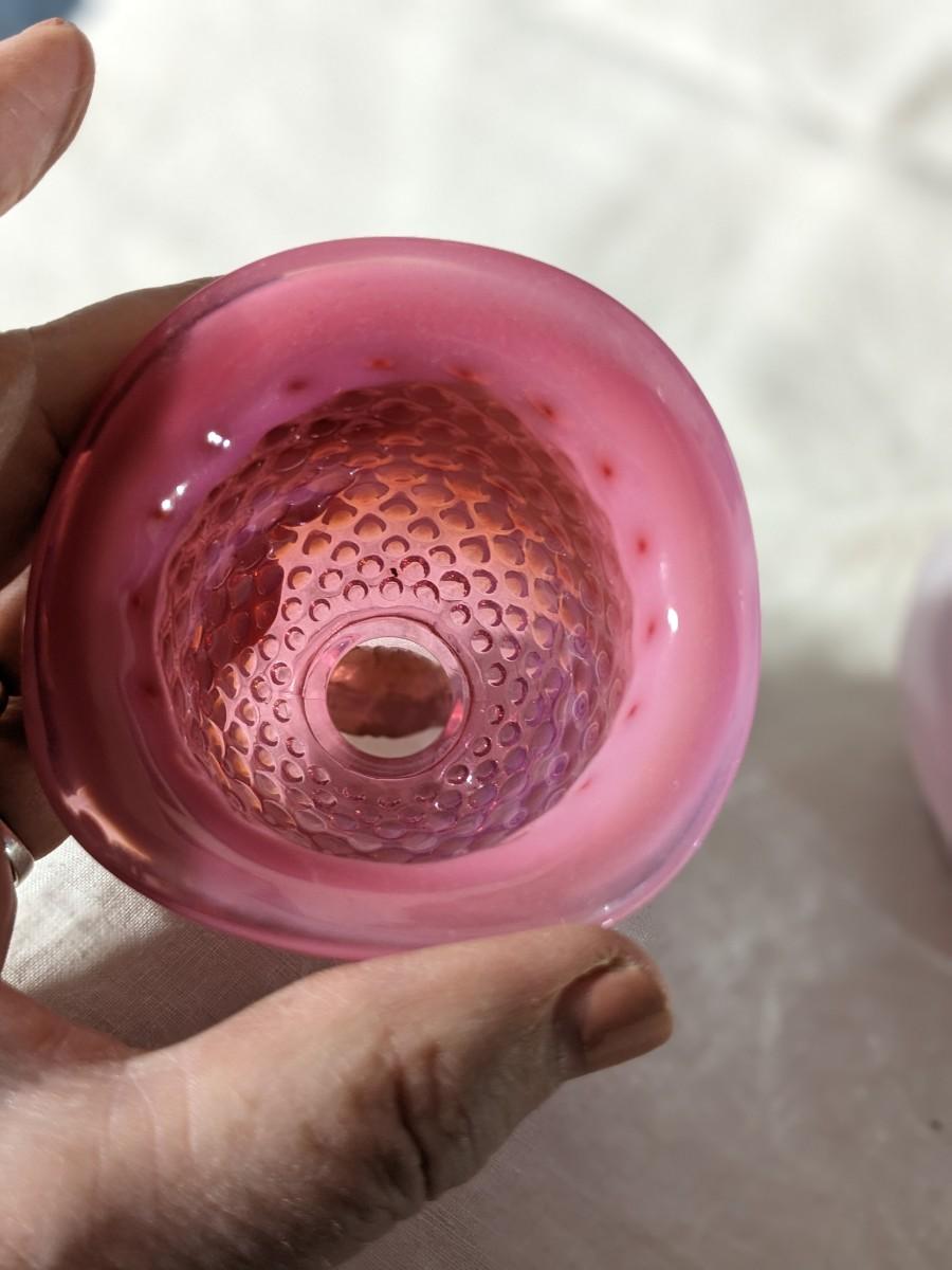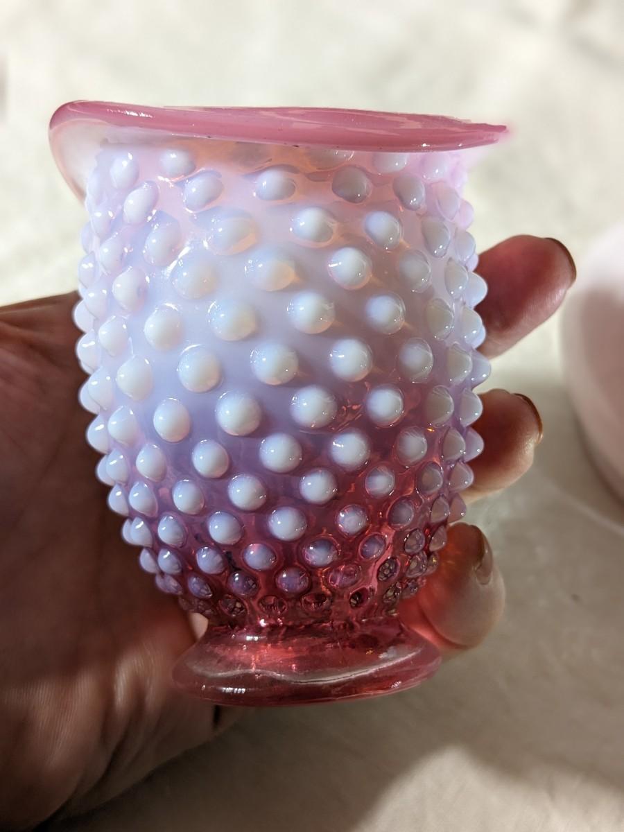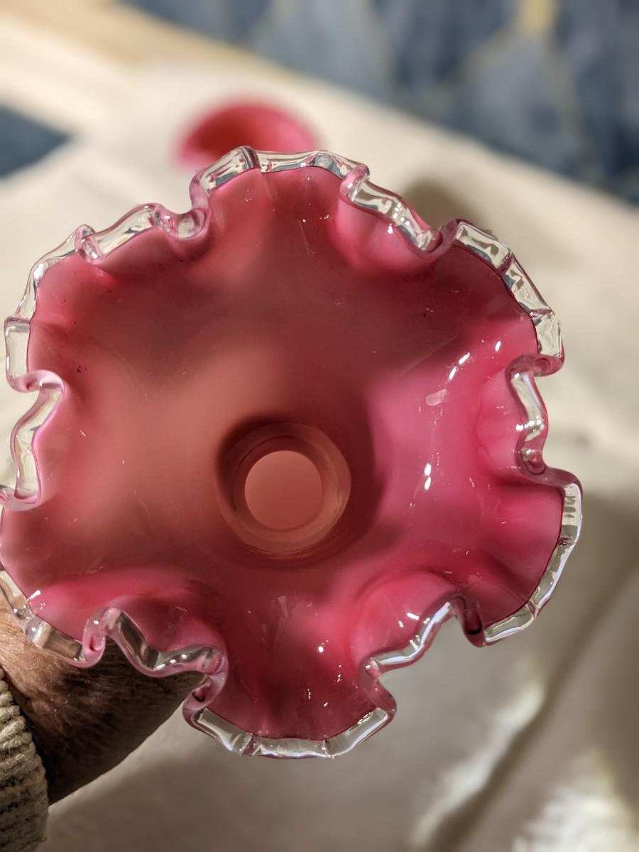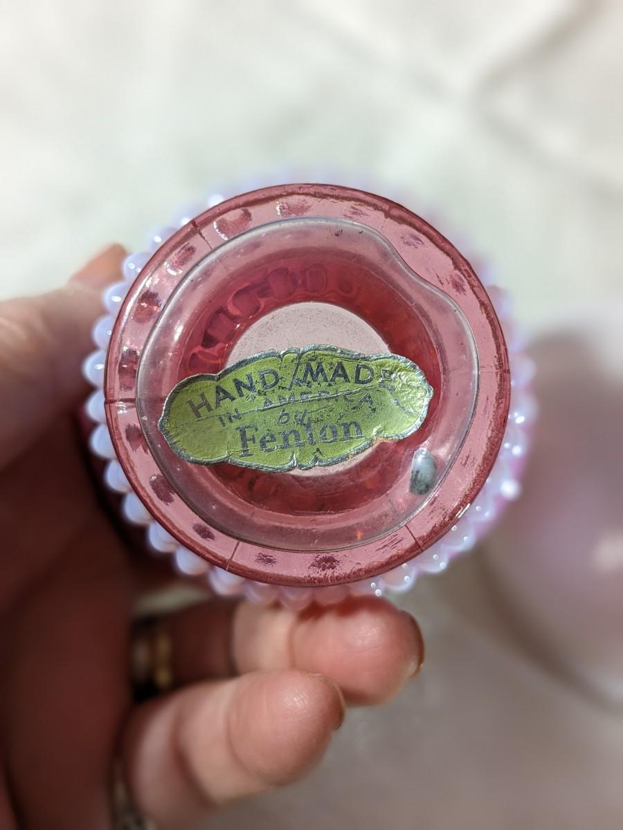 Vintage Fenton Peach Crest Vase, Cranberry Opalescent Hobnail Bud Vase