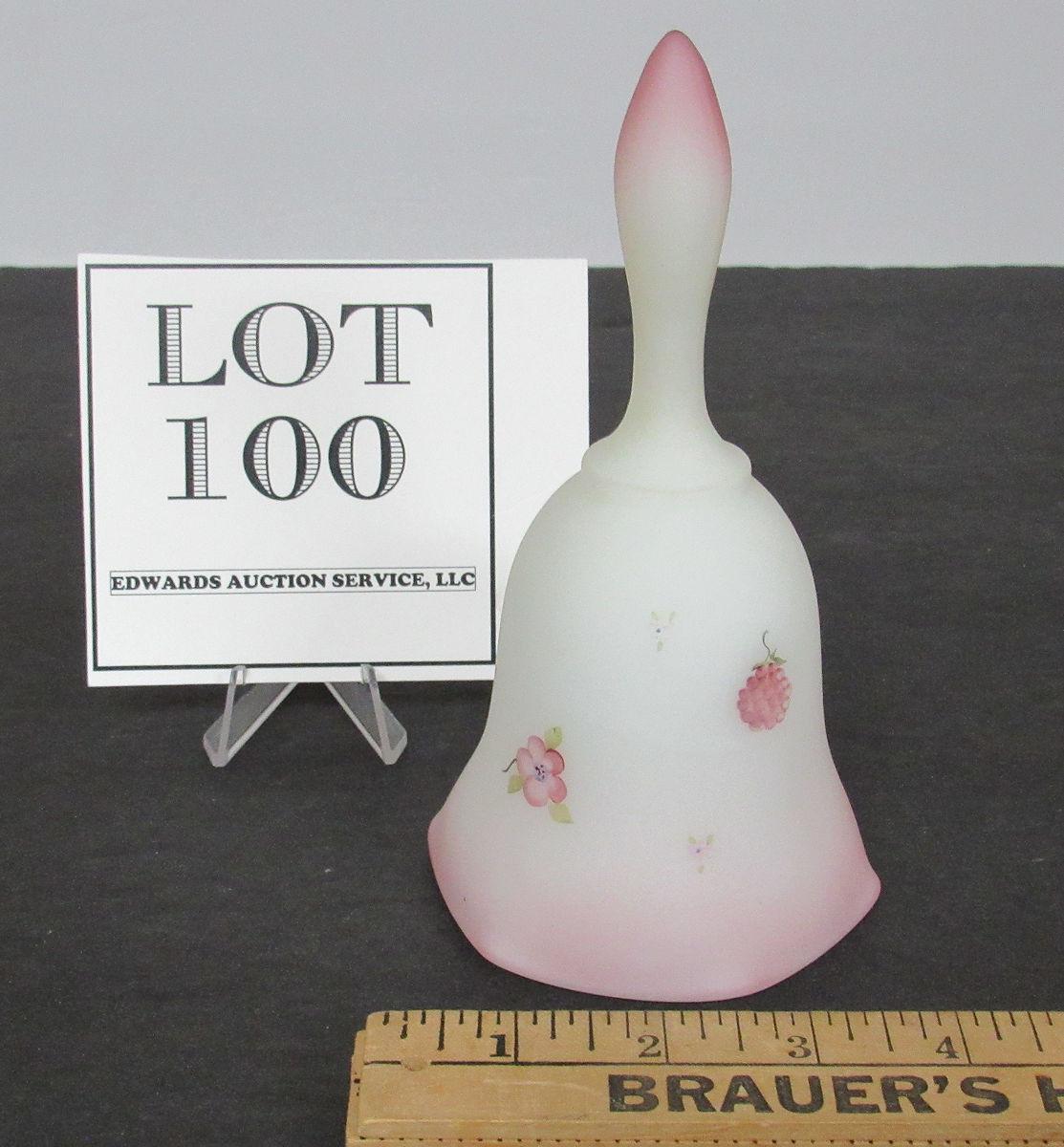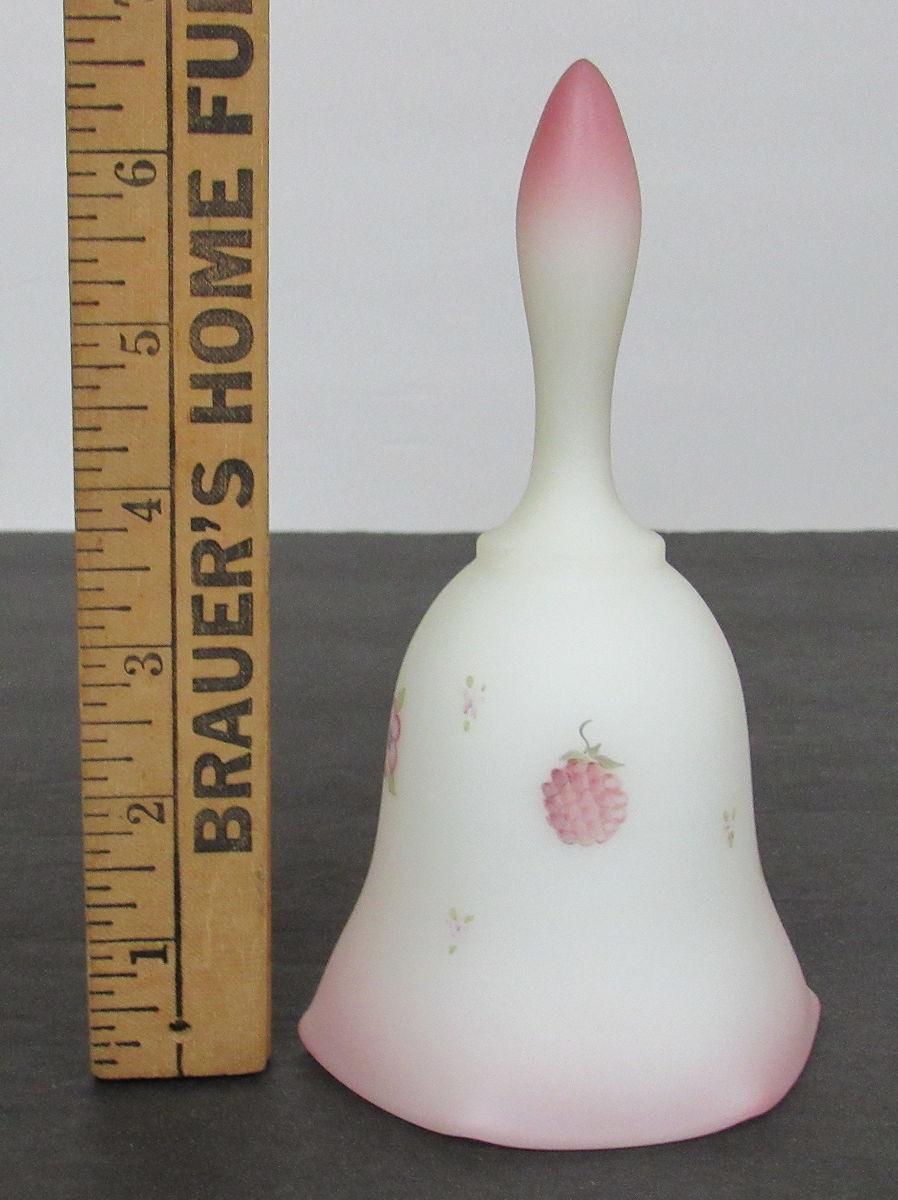Vintage Fenton Rosaline Hand Painted Satin Glass Bell, Artist Signed