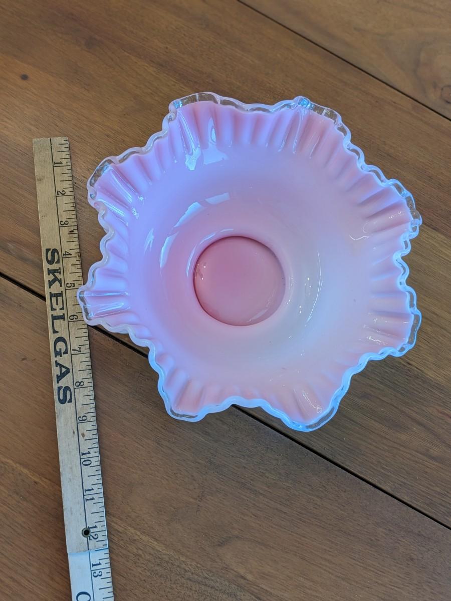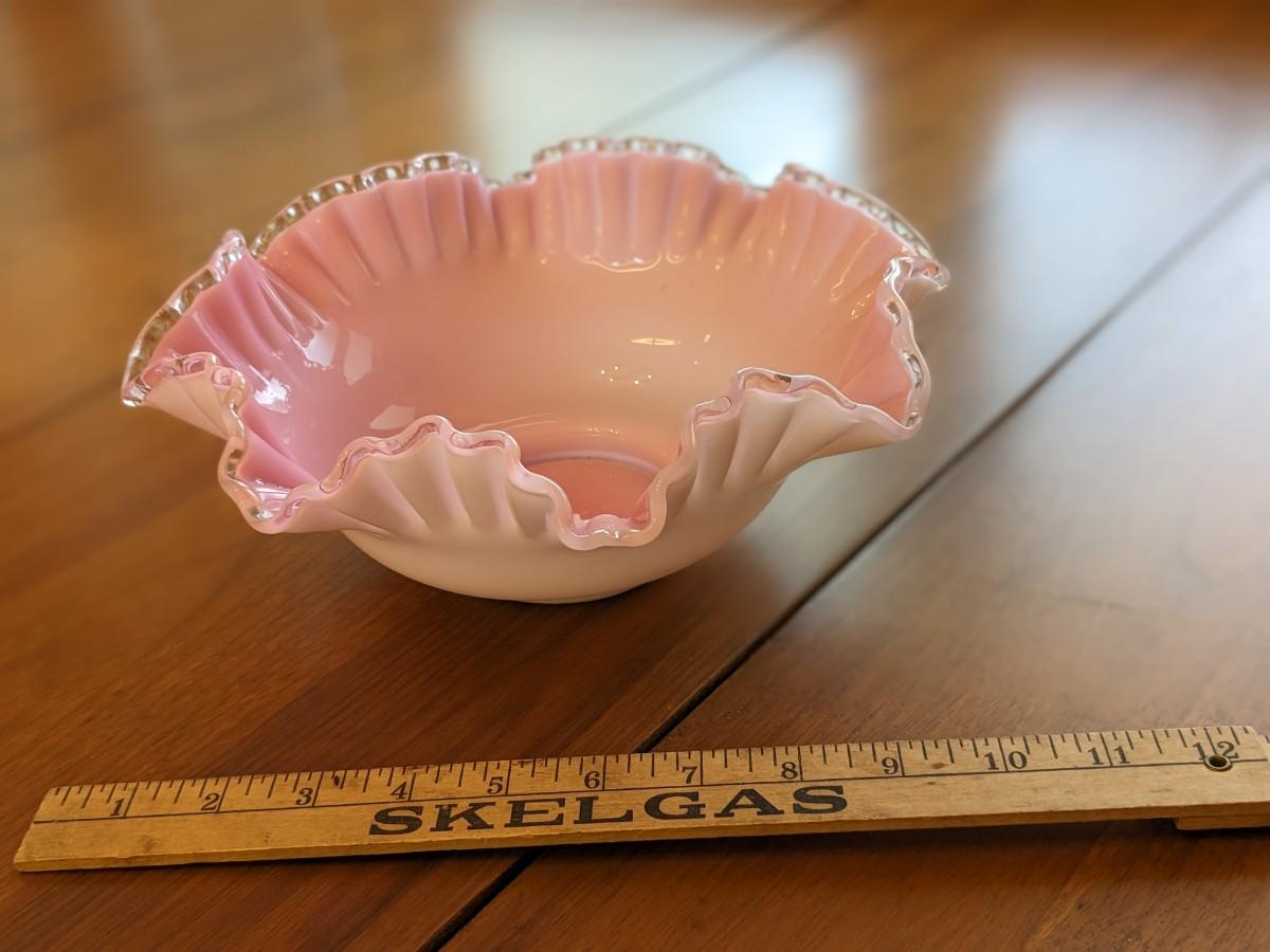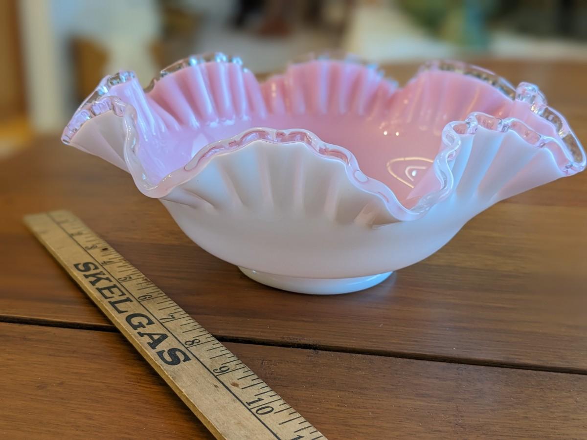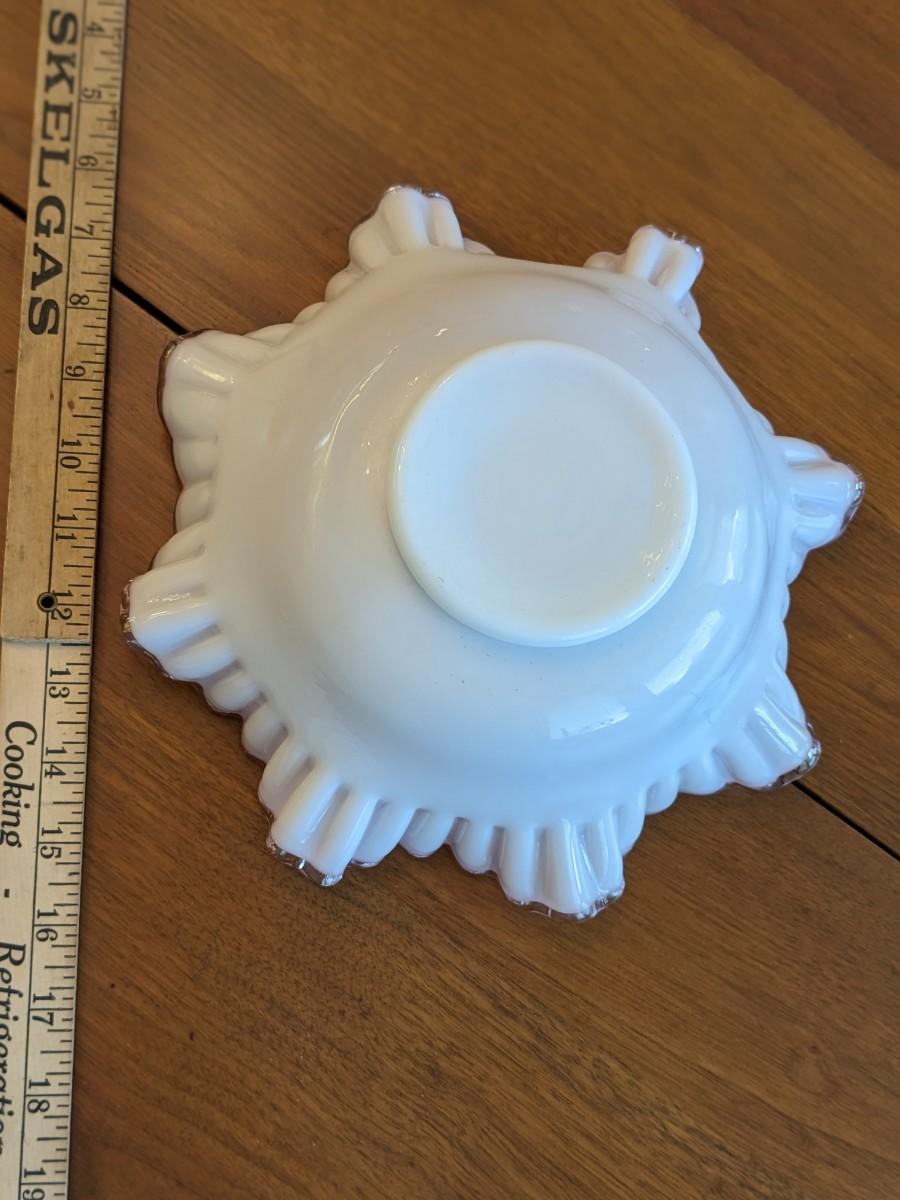 Vintage Fenton Ruffled Candy Dish Bowl White Milk Glass