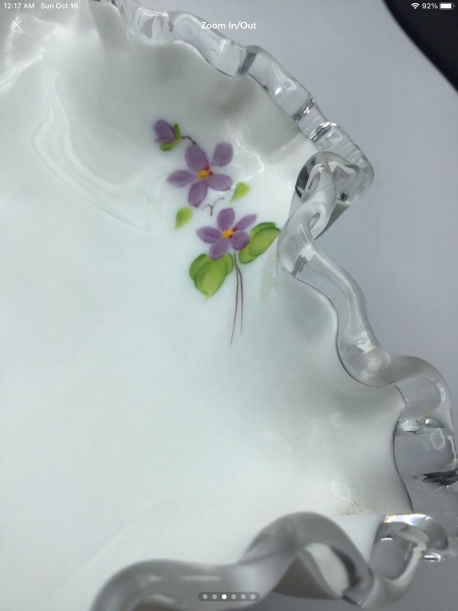 Vintage Fenton Silver Crest Bell Violets In The Snow