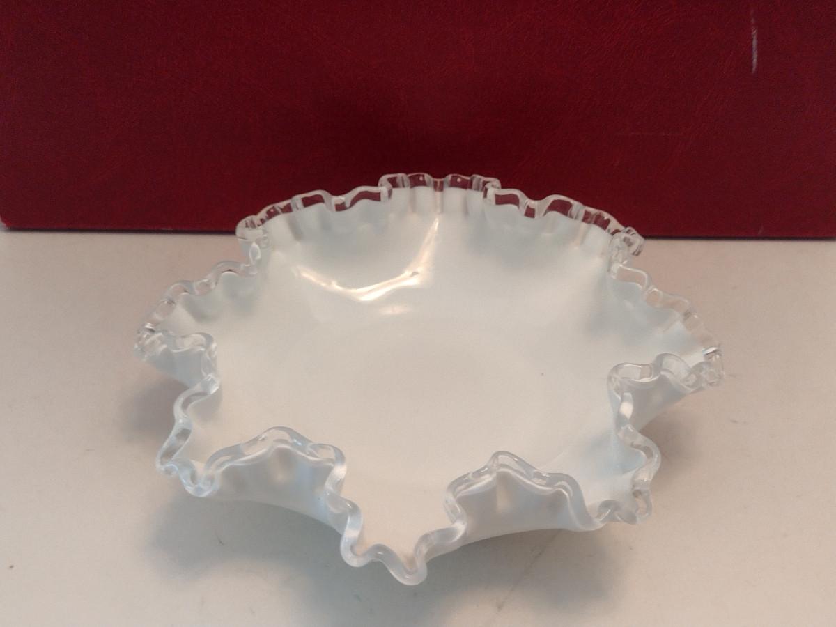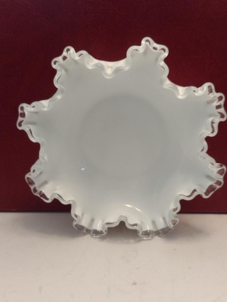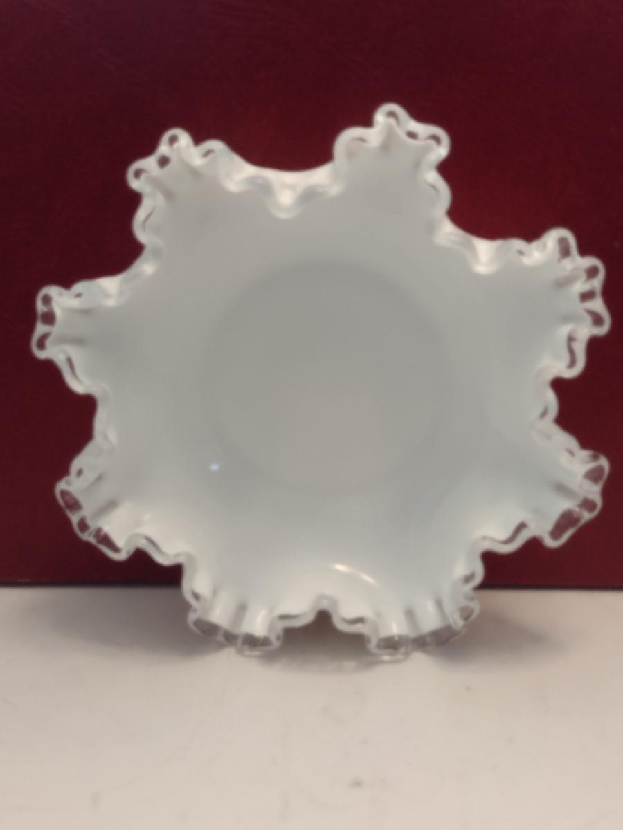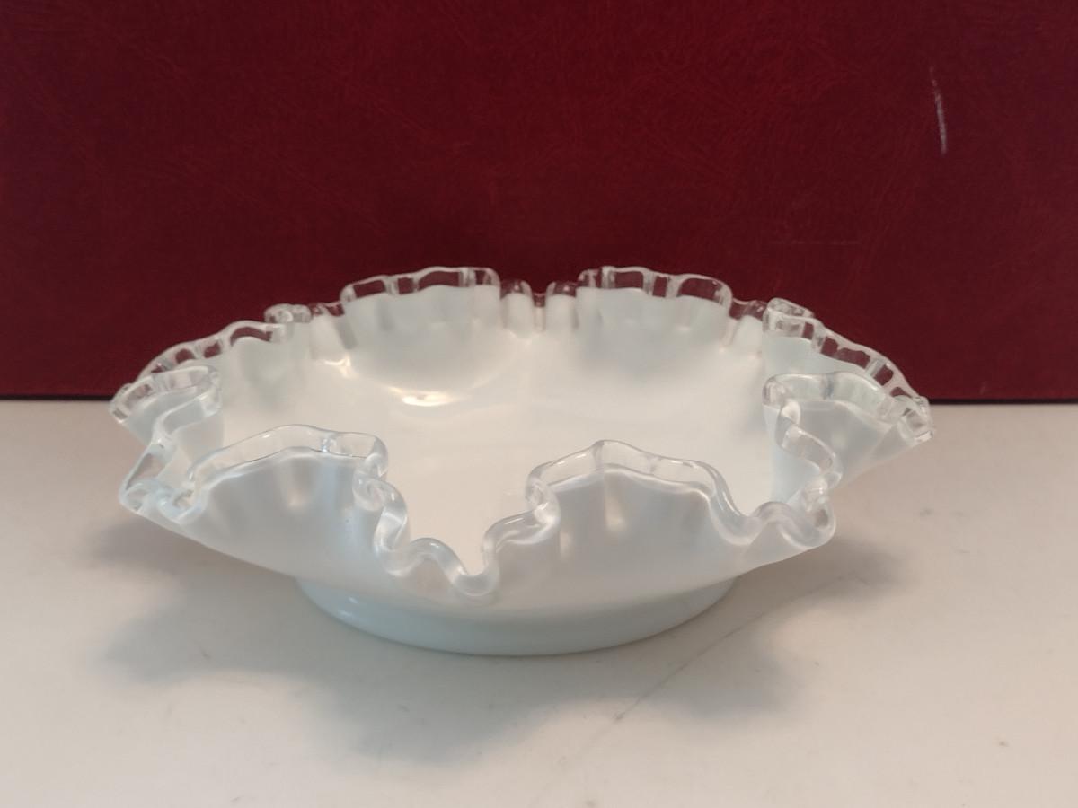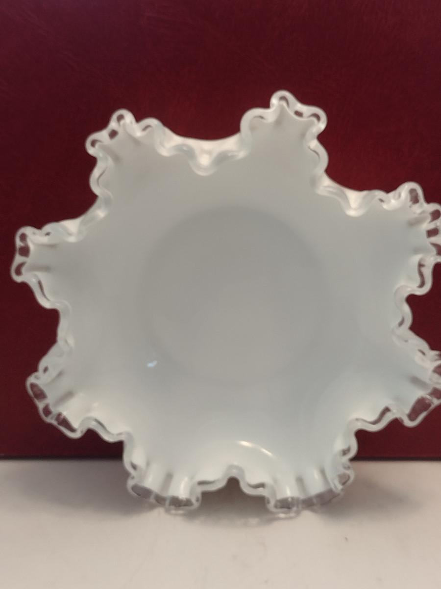 Vintage Fenton Silver Crest Ruffled Edge Milk Glass Bowl- Approx 7 3/4" in Diameter