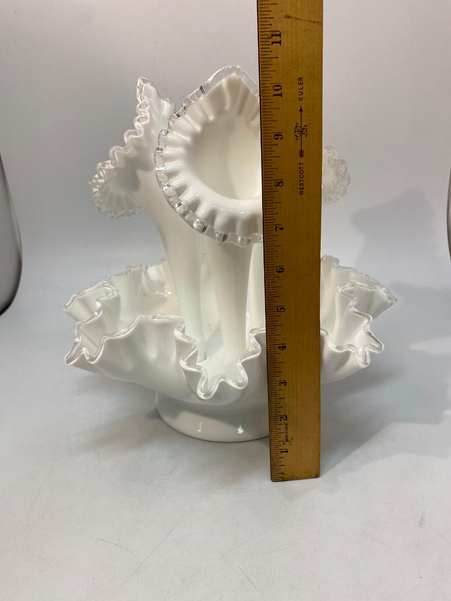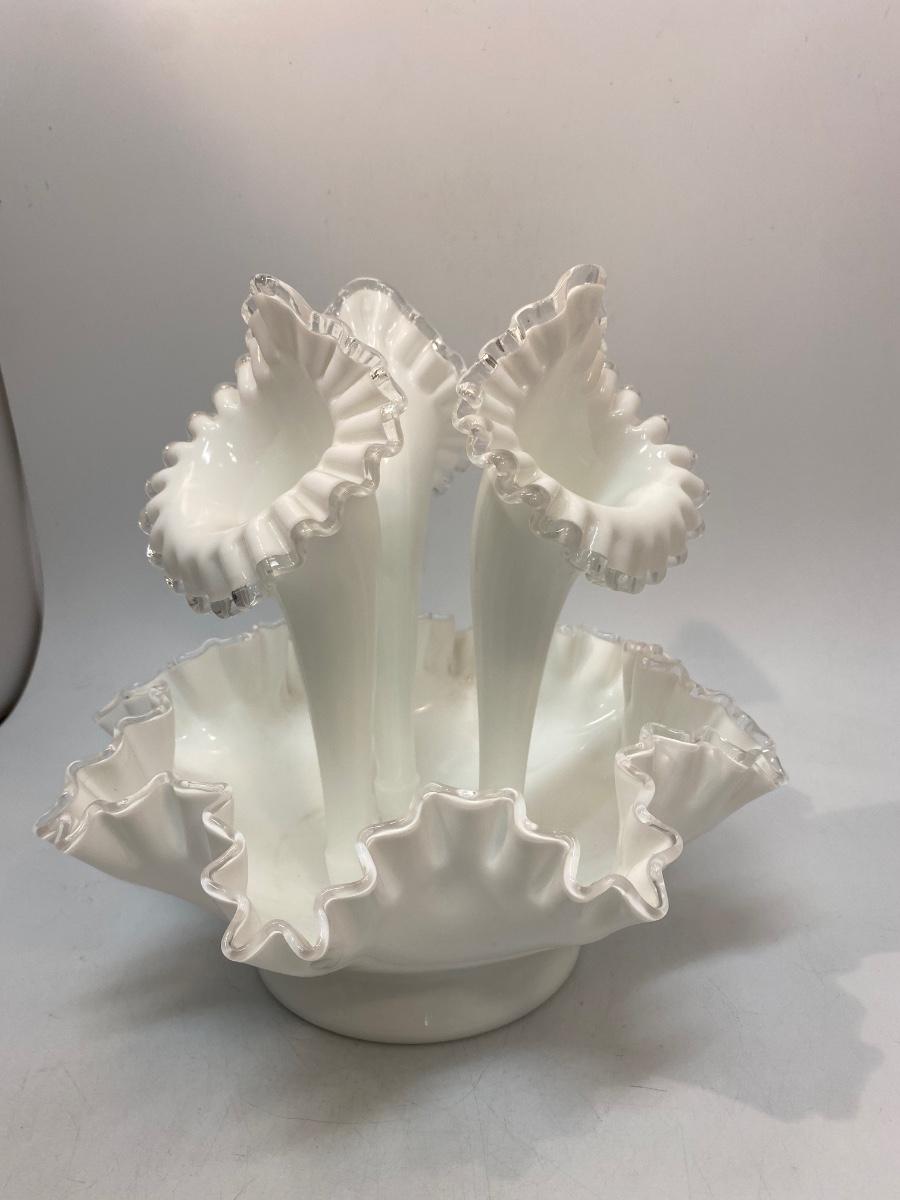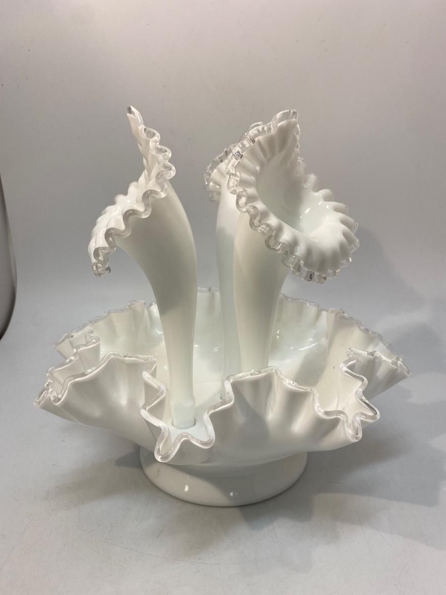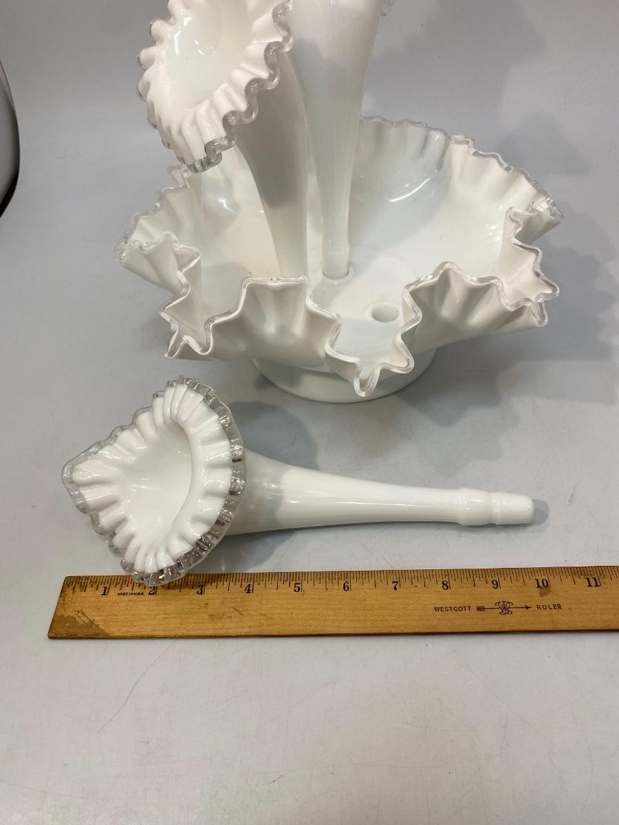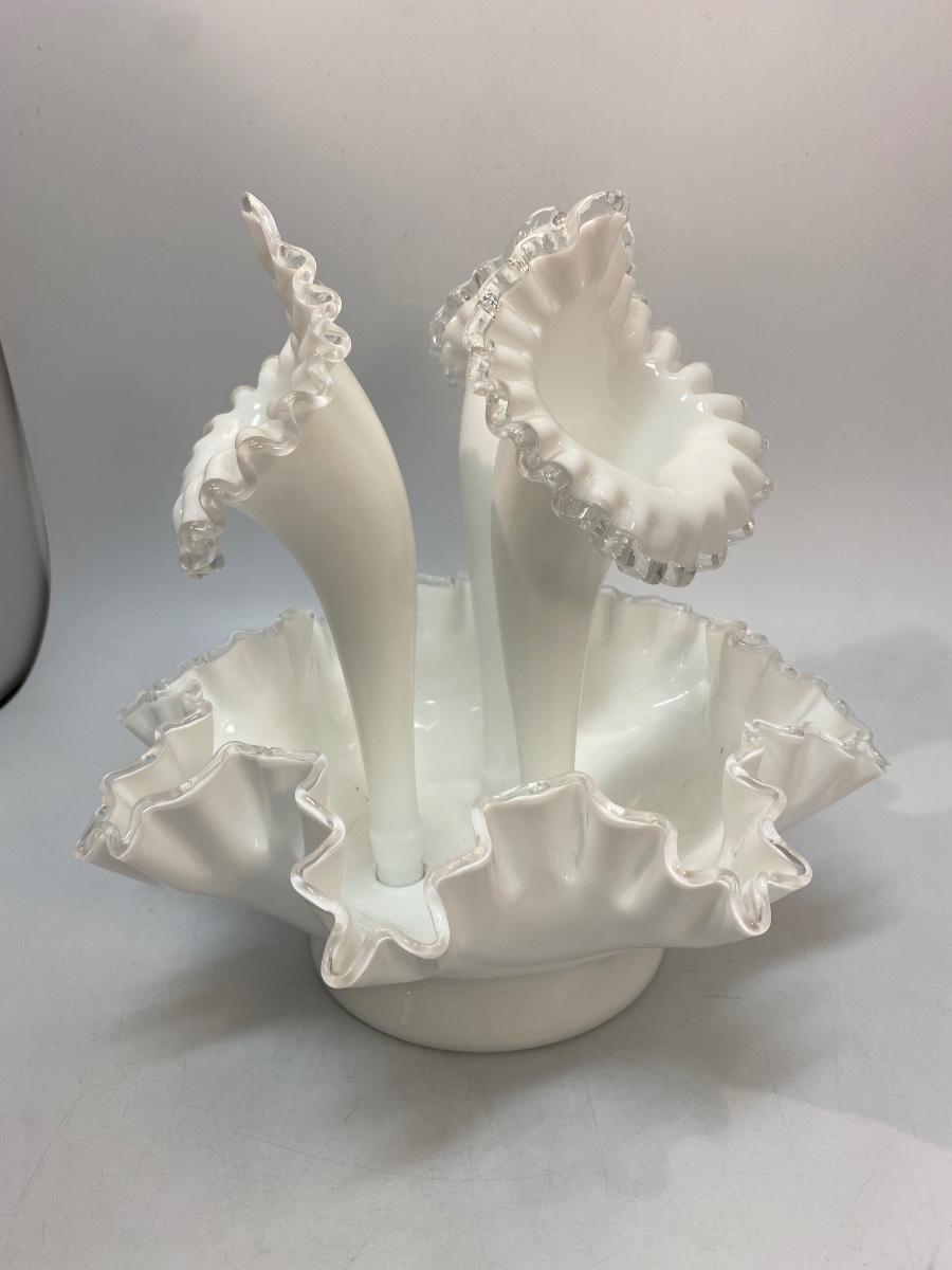 Vintage Fenton Silvercrest Milk Art Glass 3 Horn Epergne Centerpiece