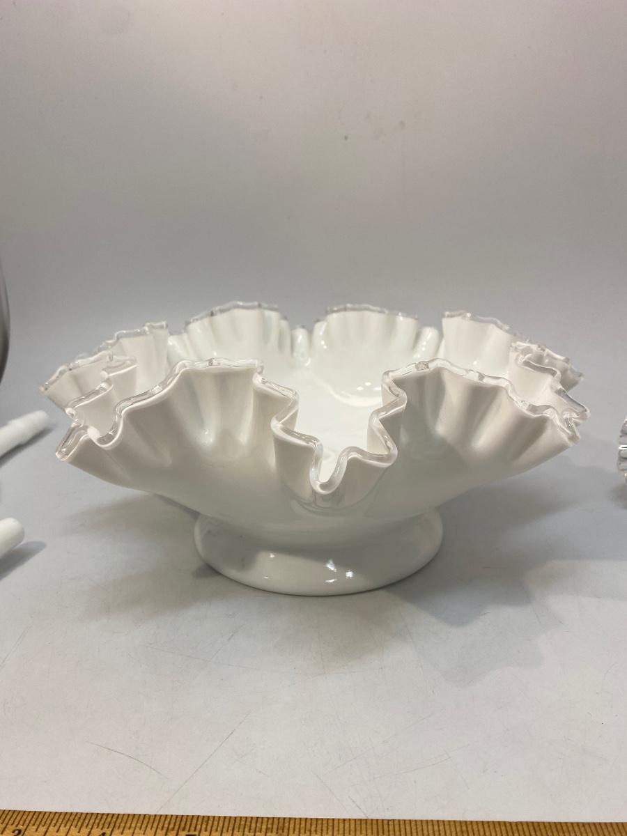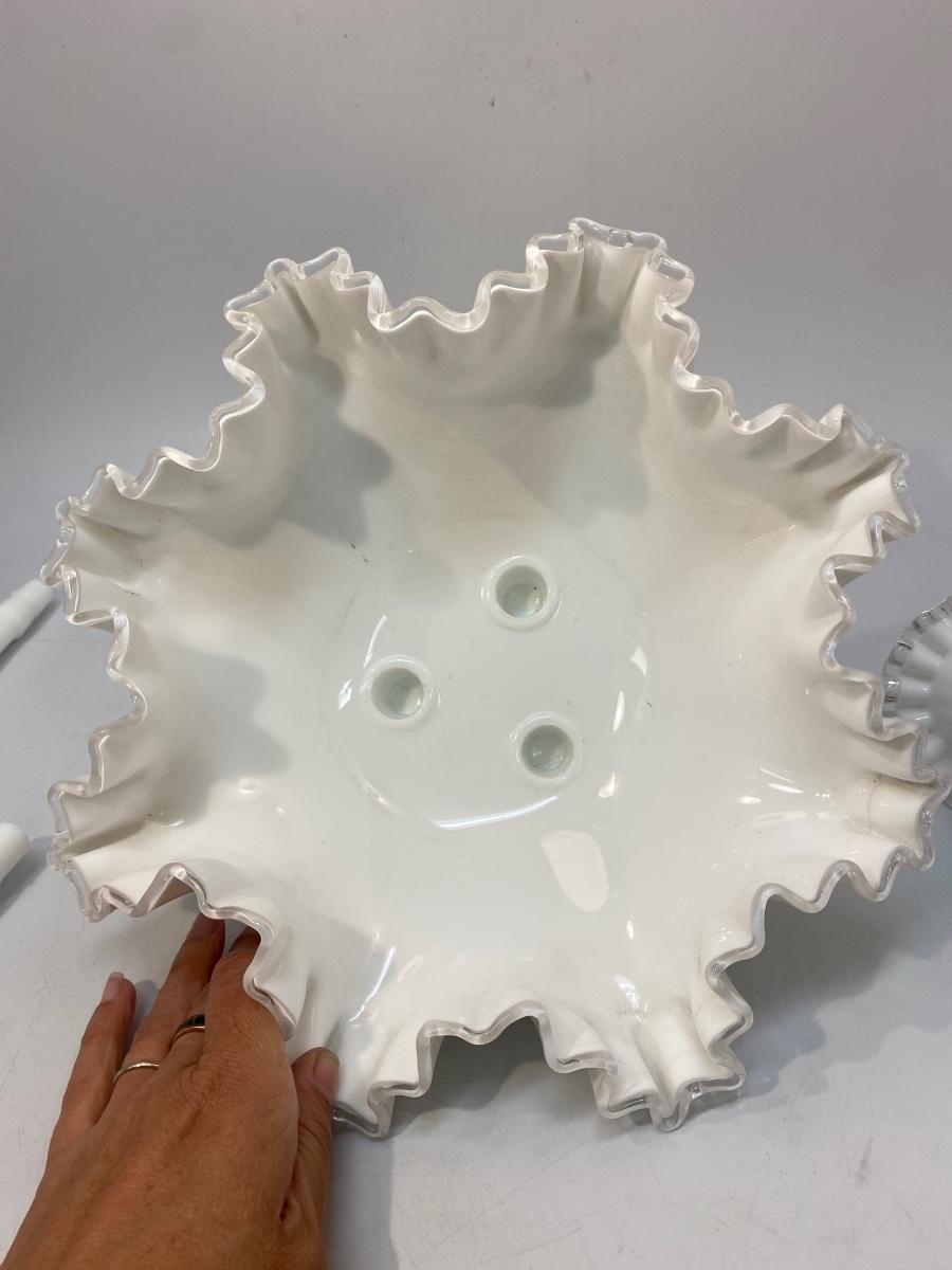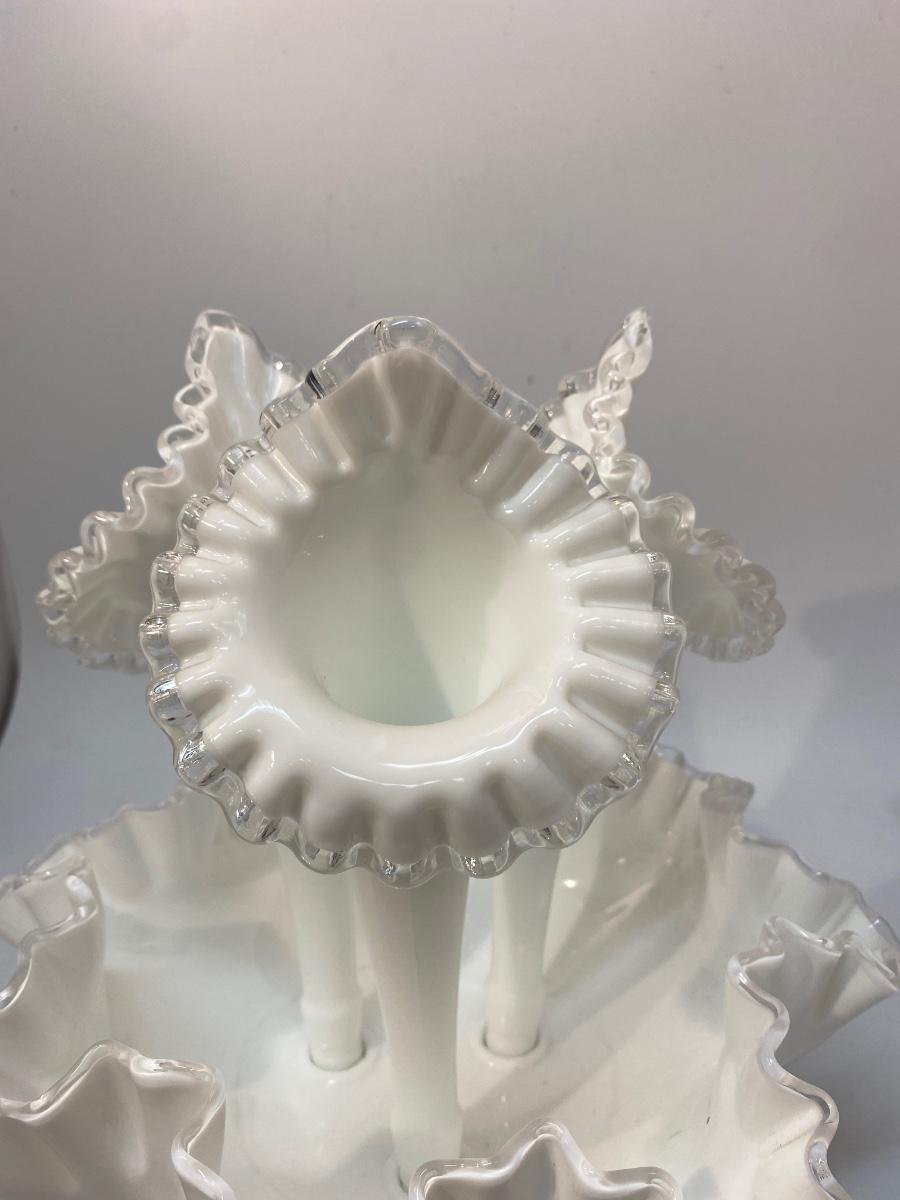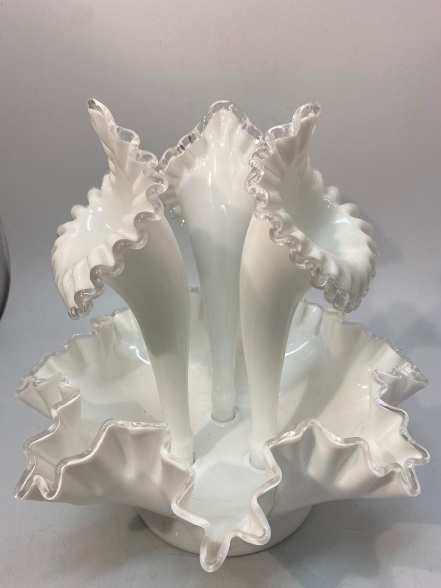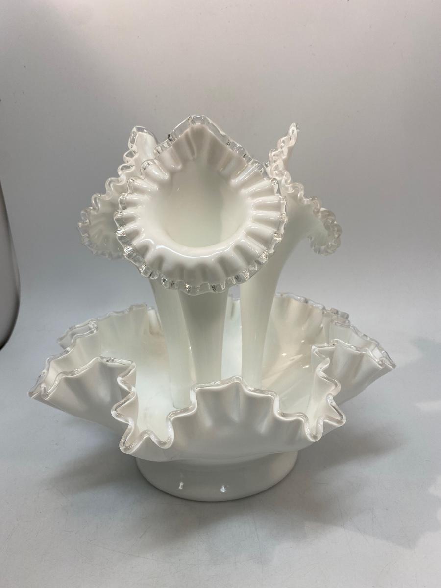 Vintage Fenton Silvercrest Milk Art Glass 3 Horn Epergne Centerpiece
