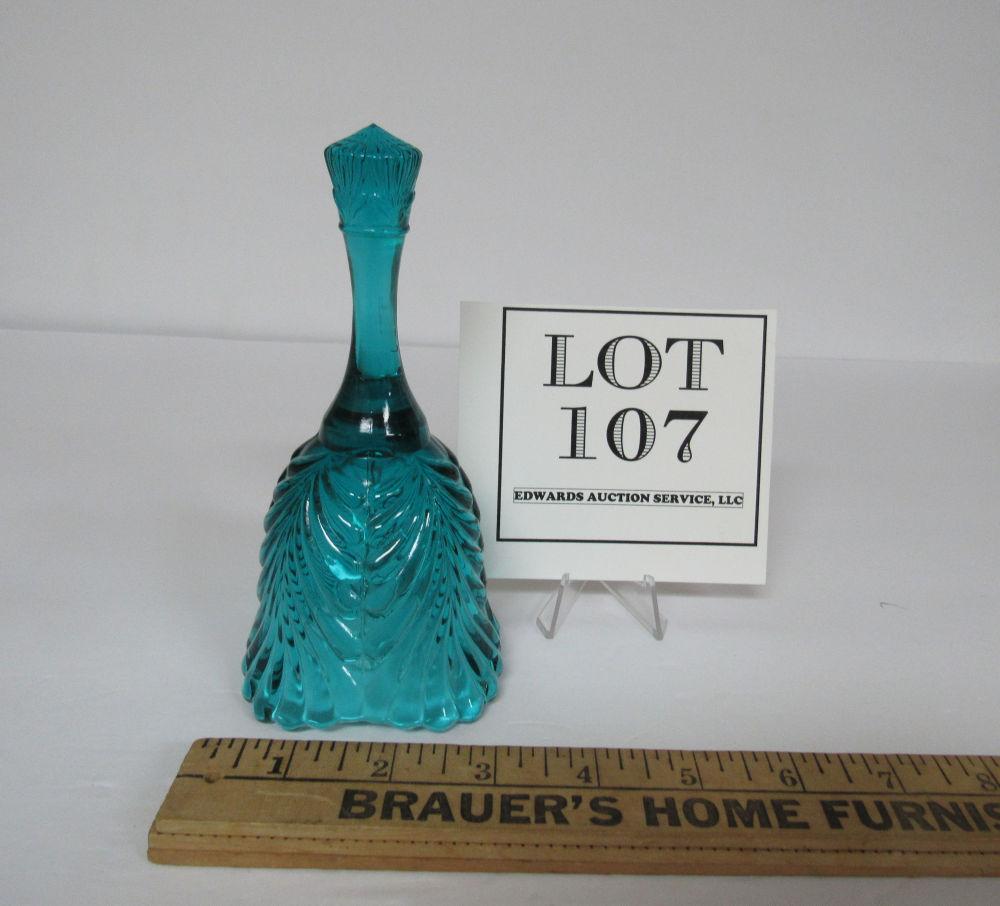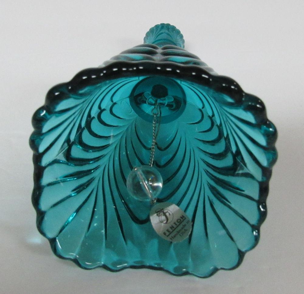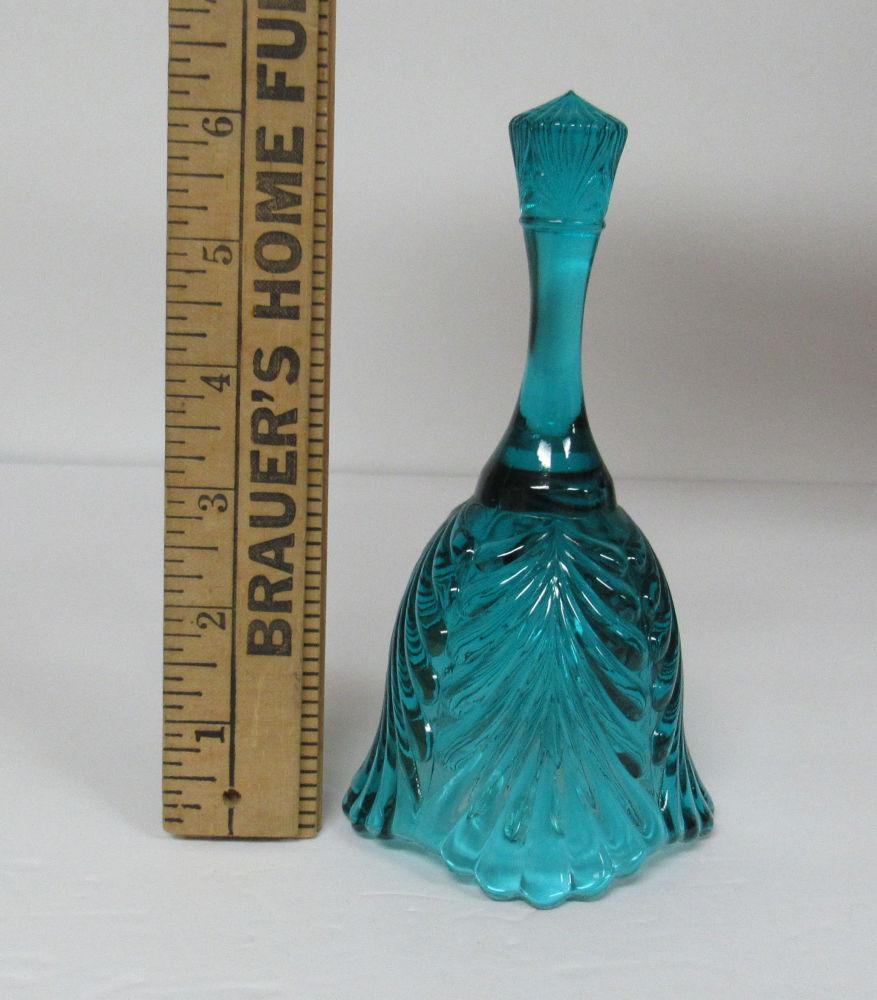 Vintage Fenton Teal Glass Bell, Drapery Patter, Label Inside