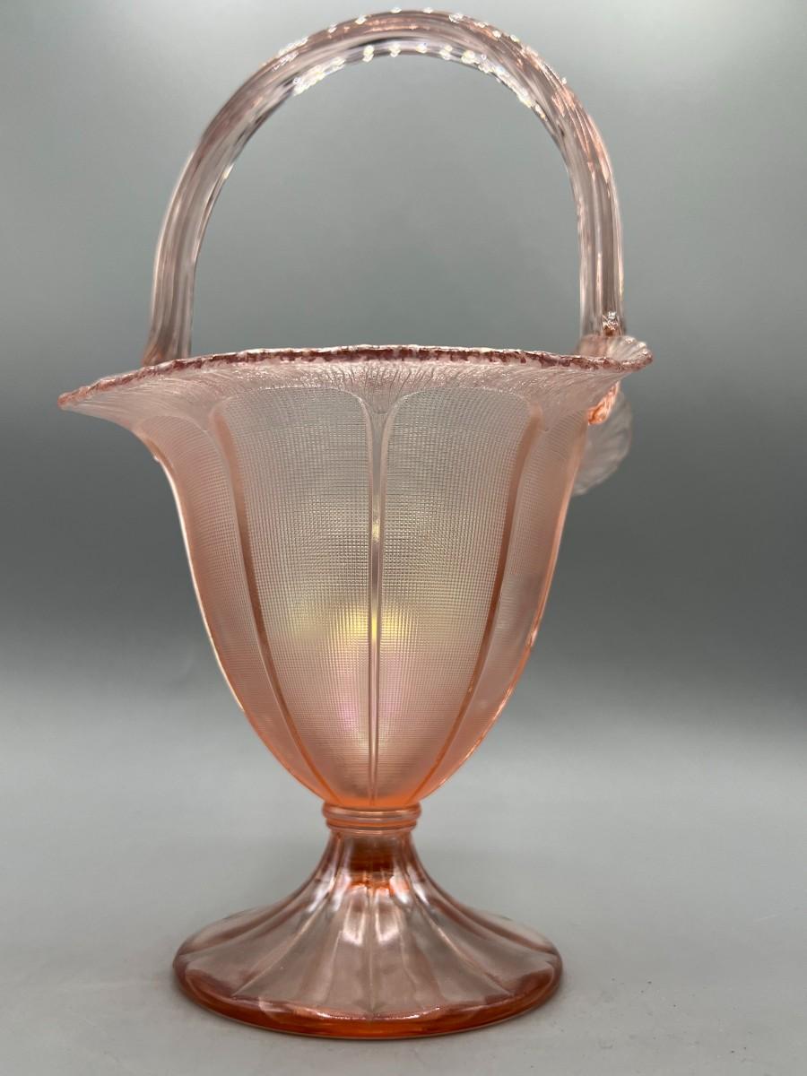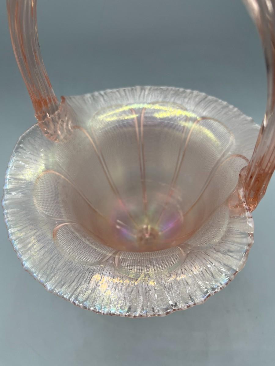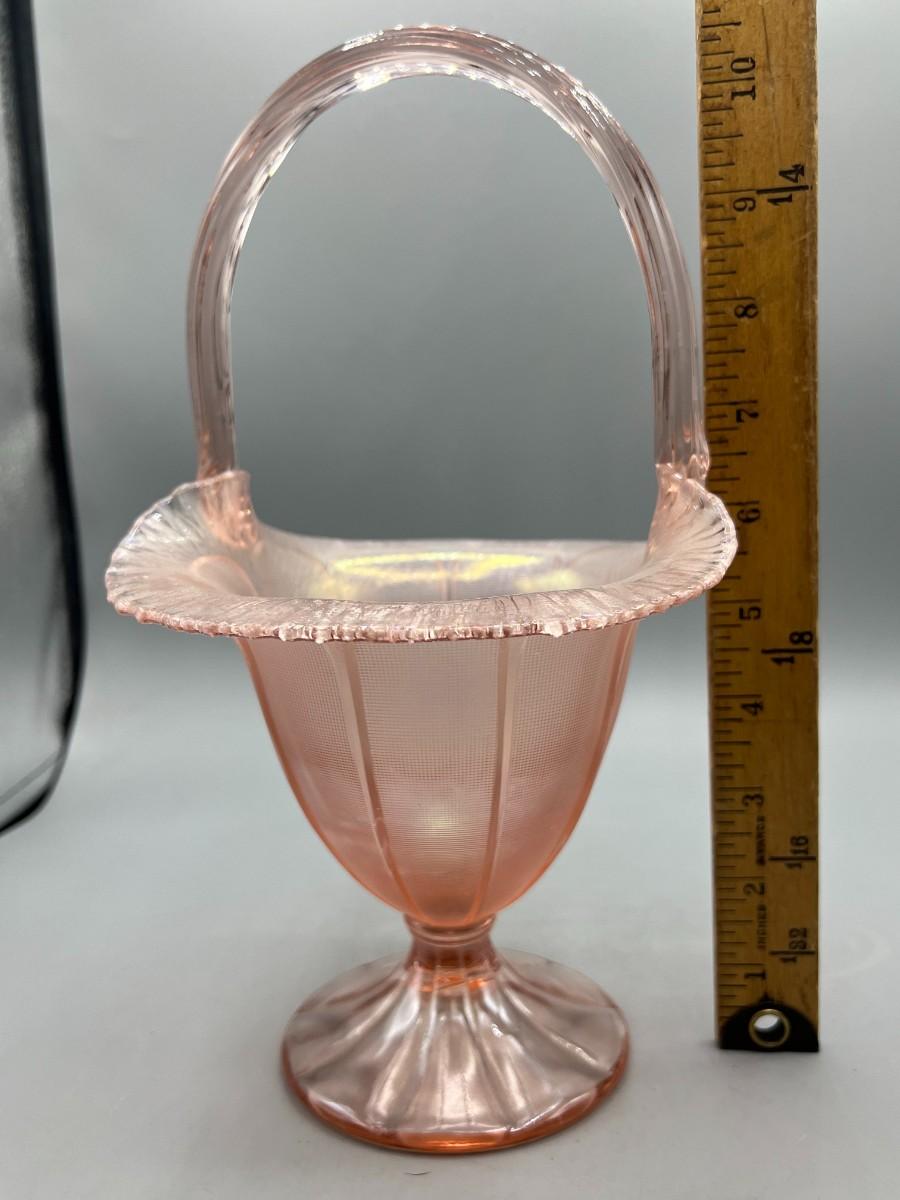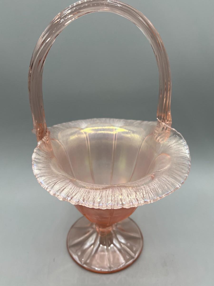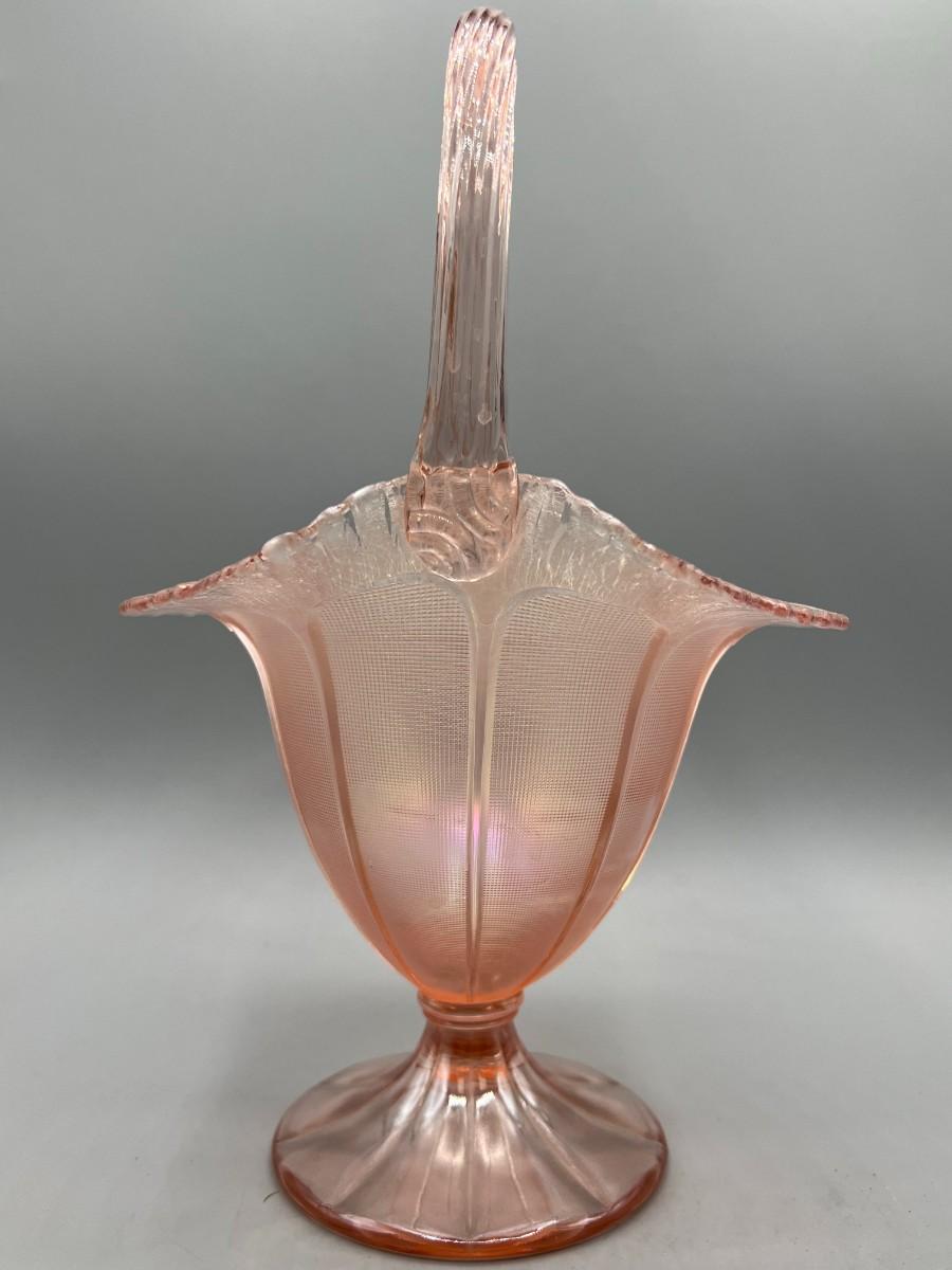 Vintage Fenton Velva Rose Stretch Art Glass Handled Flower Basket