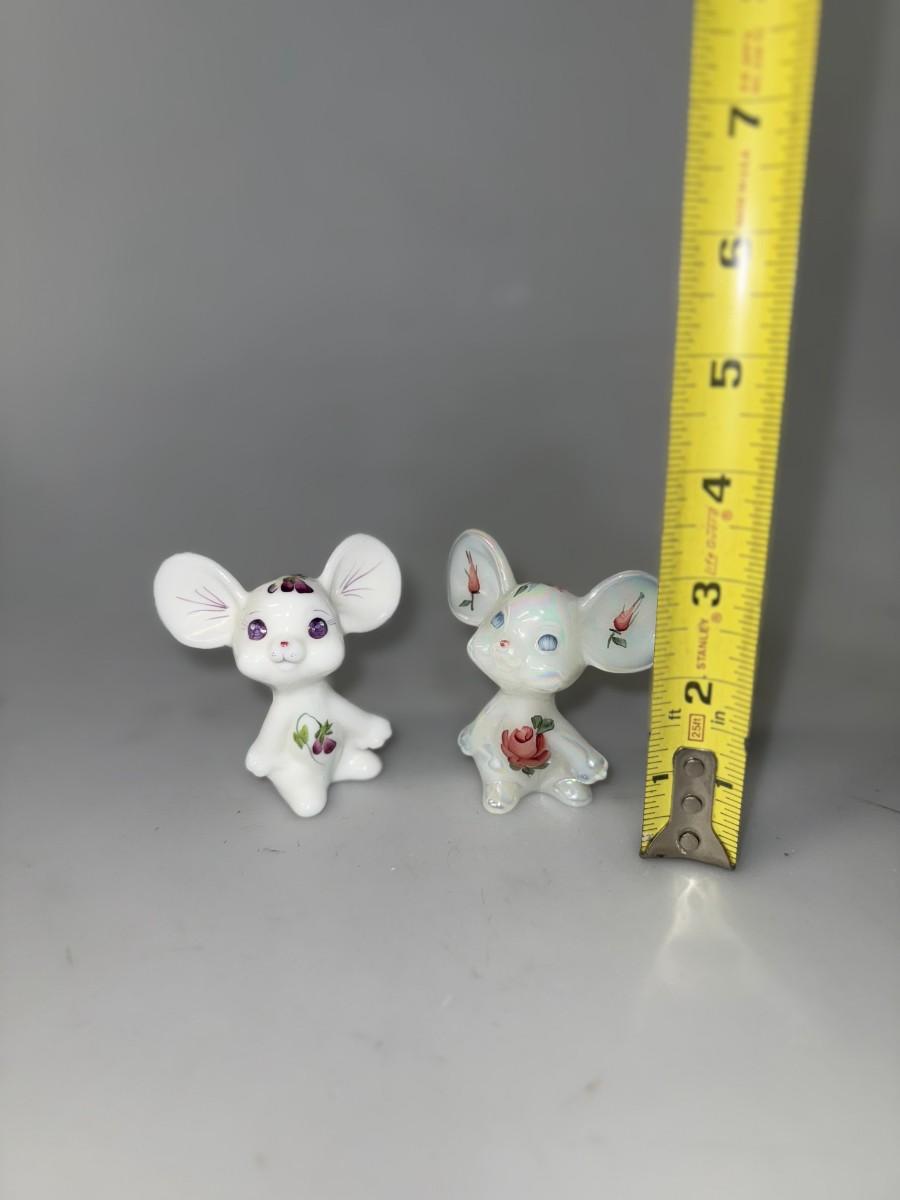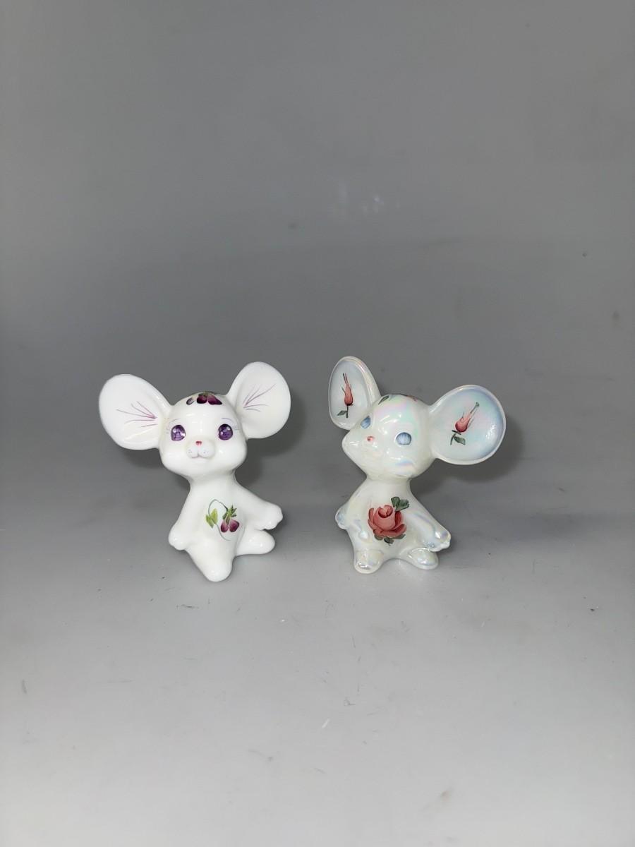 Vintage Fenton Violets In The Snow Mouse Figurine and Rose Mouse Figurine