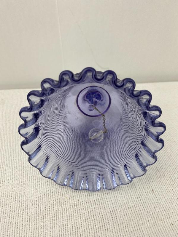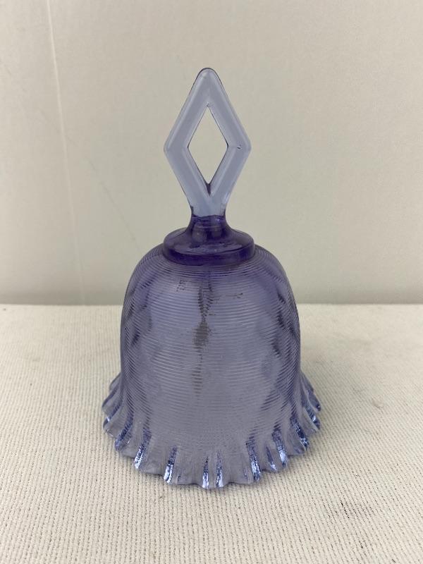 Lot# 16 S Vintage Fenton Wisteria Violet Purple Bell Threaded Diamond Optic Ruffled Rim