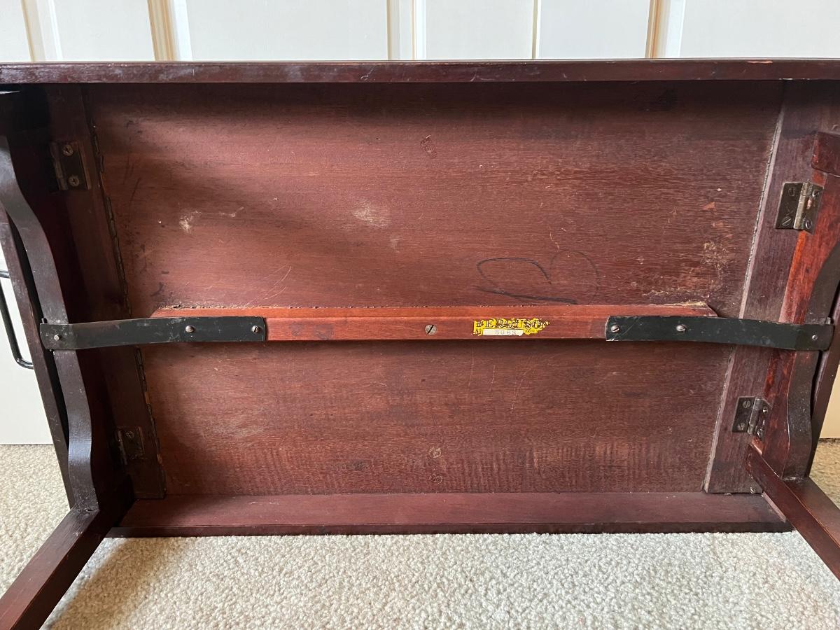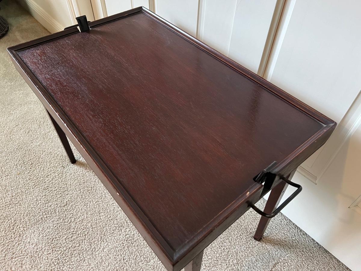 Ferguson Bros folding table. Great condition. All hinges and folding mechanisms work as they should. Measures 26” x 16” x 19”T