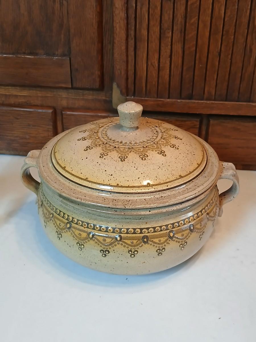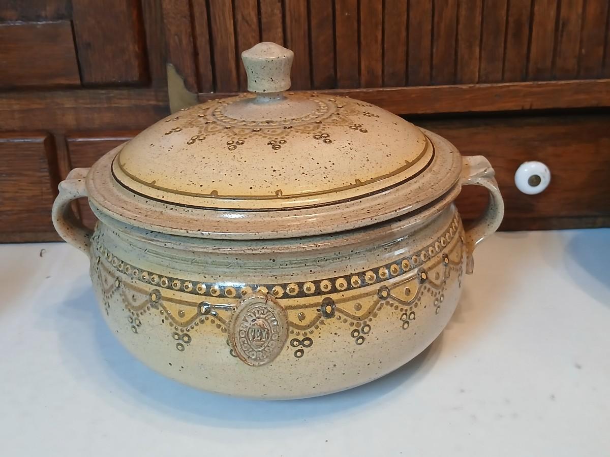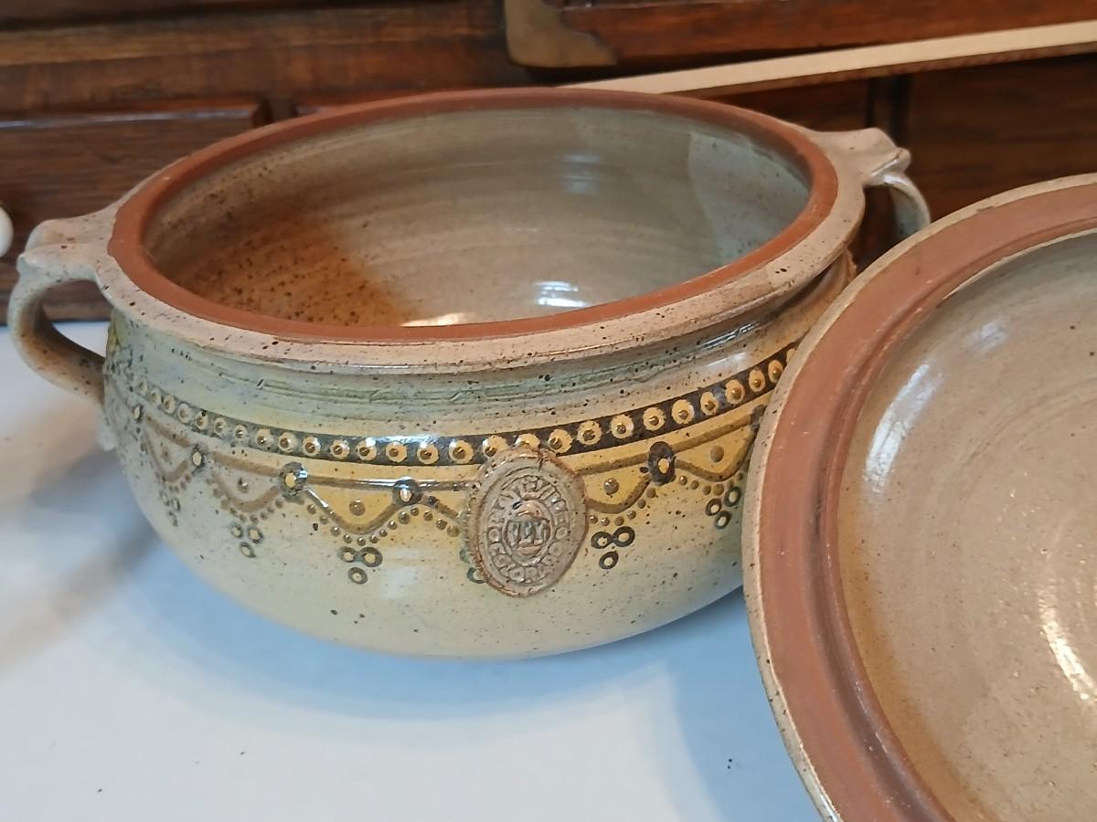Vintage FEY Studio Art Pottery lidded casserole dish - Out of Platteville, Colorado comes with a Soups, stews, and casseroles book