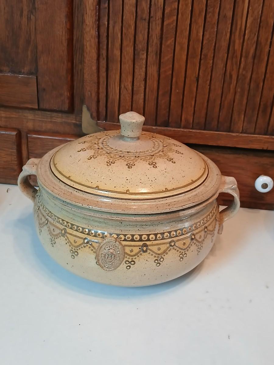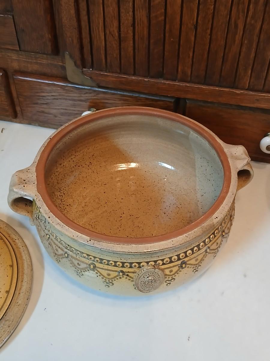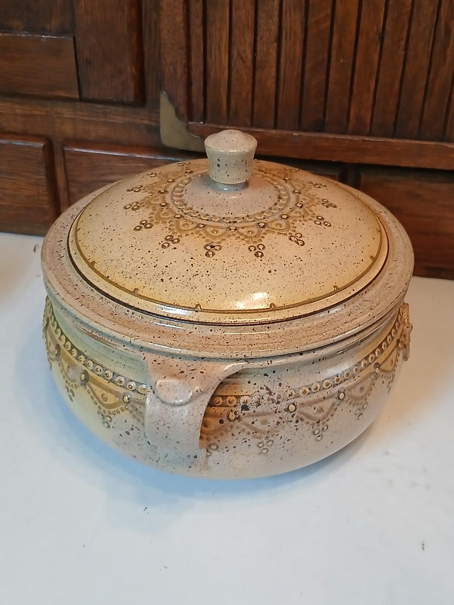 Vintage FEY Studio Art Pottery lidded casserole dish - Out of Platteville, Colorado comes with a Soups, stews, and casseroles book