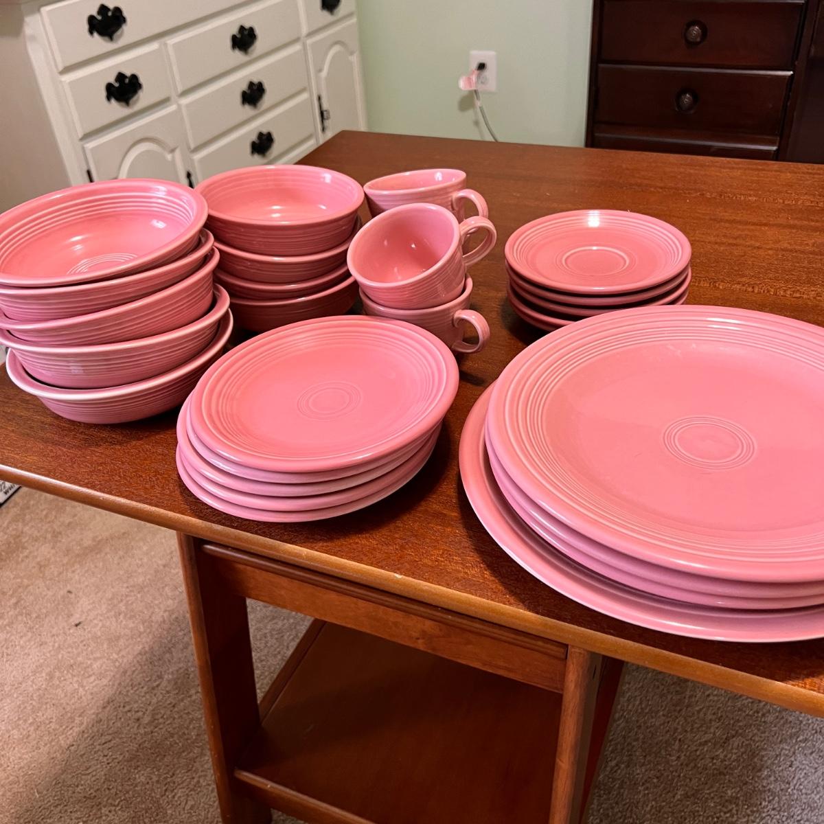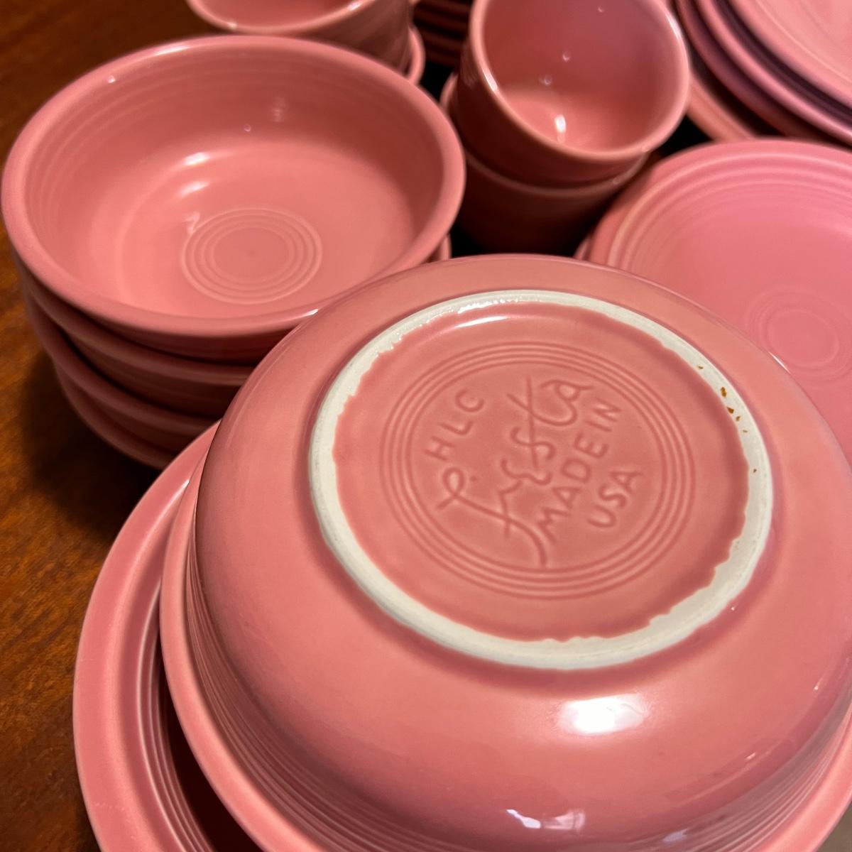 Pink Fiestaware - 27 pieces. Only found 1 small knick on a mug rim.