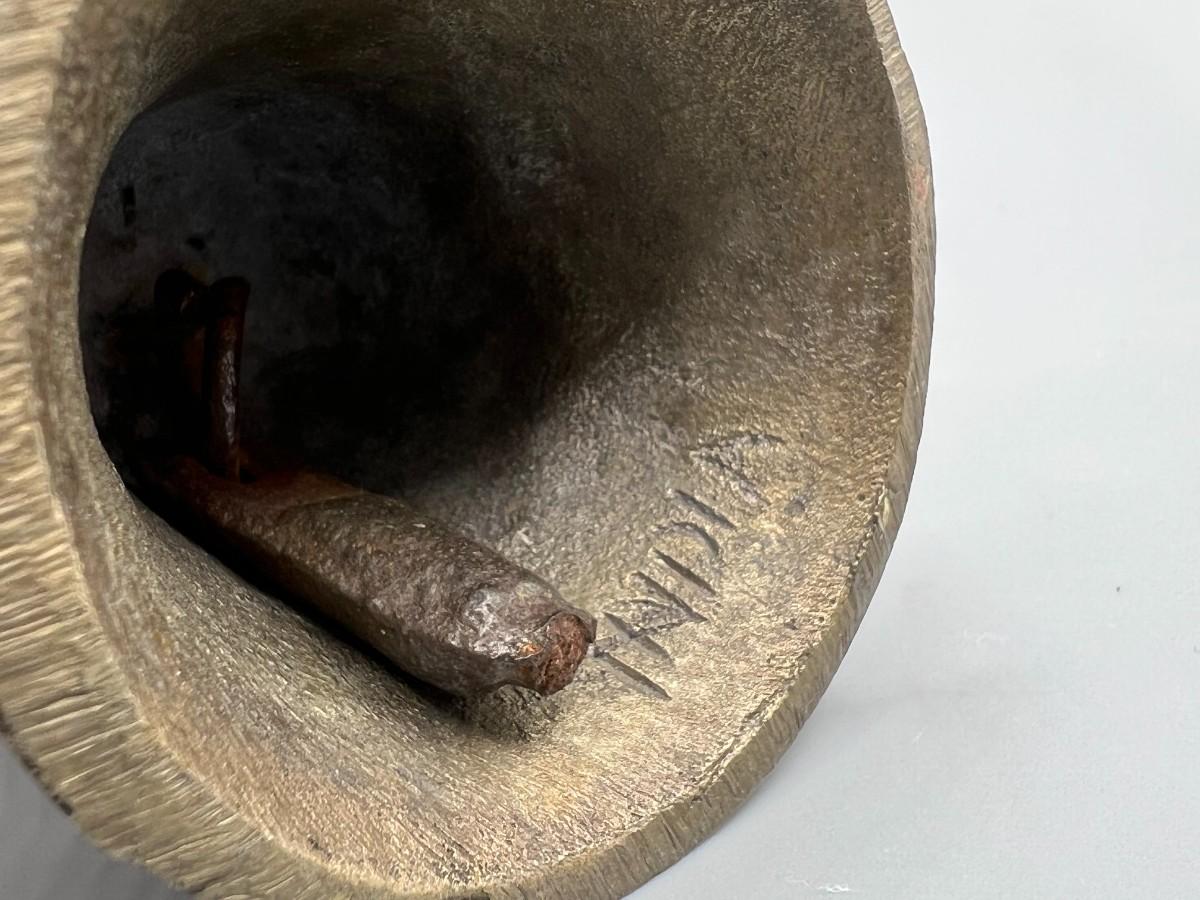 Vintage Figural Handle Brass Bell. Vintage condition. Made in India. About 4.5" size.